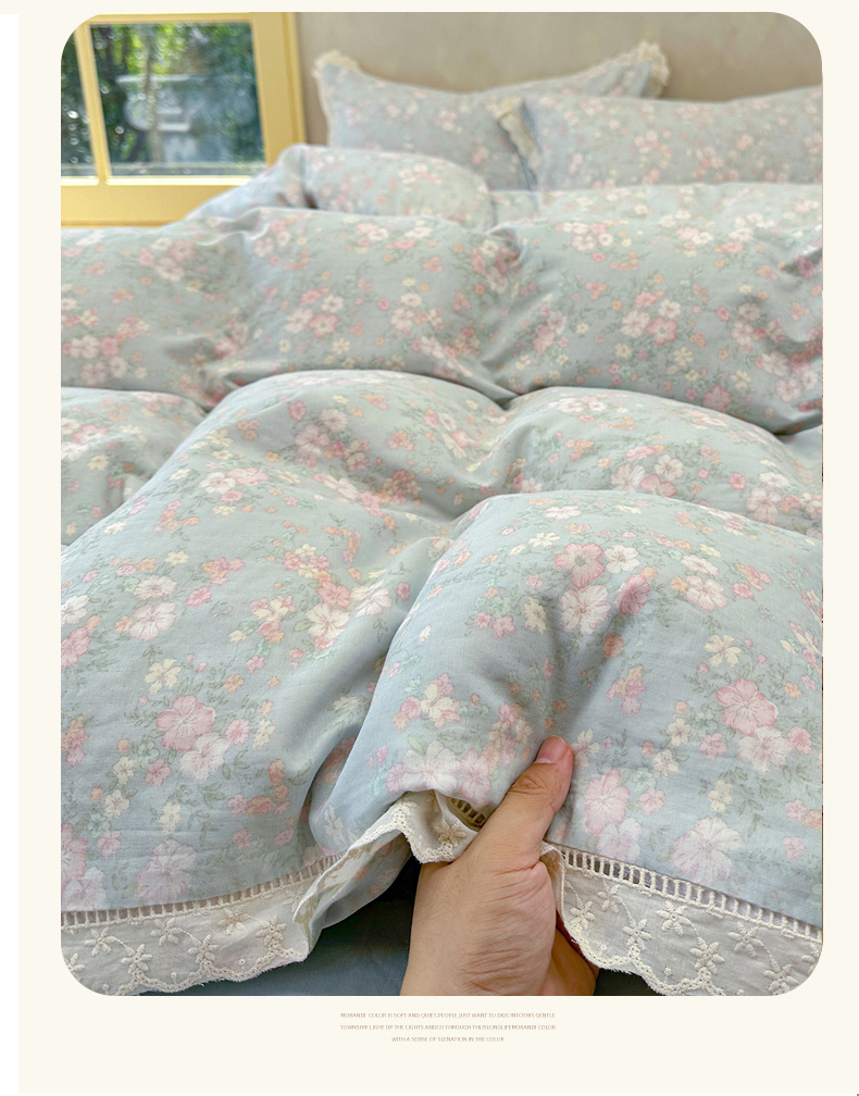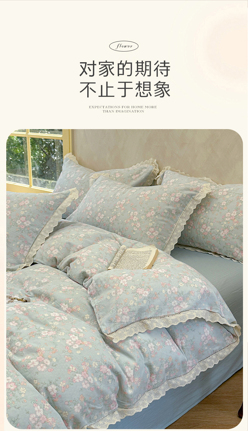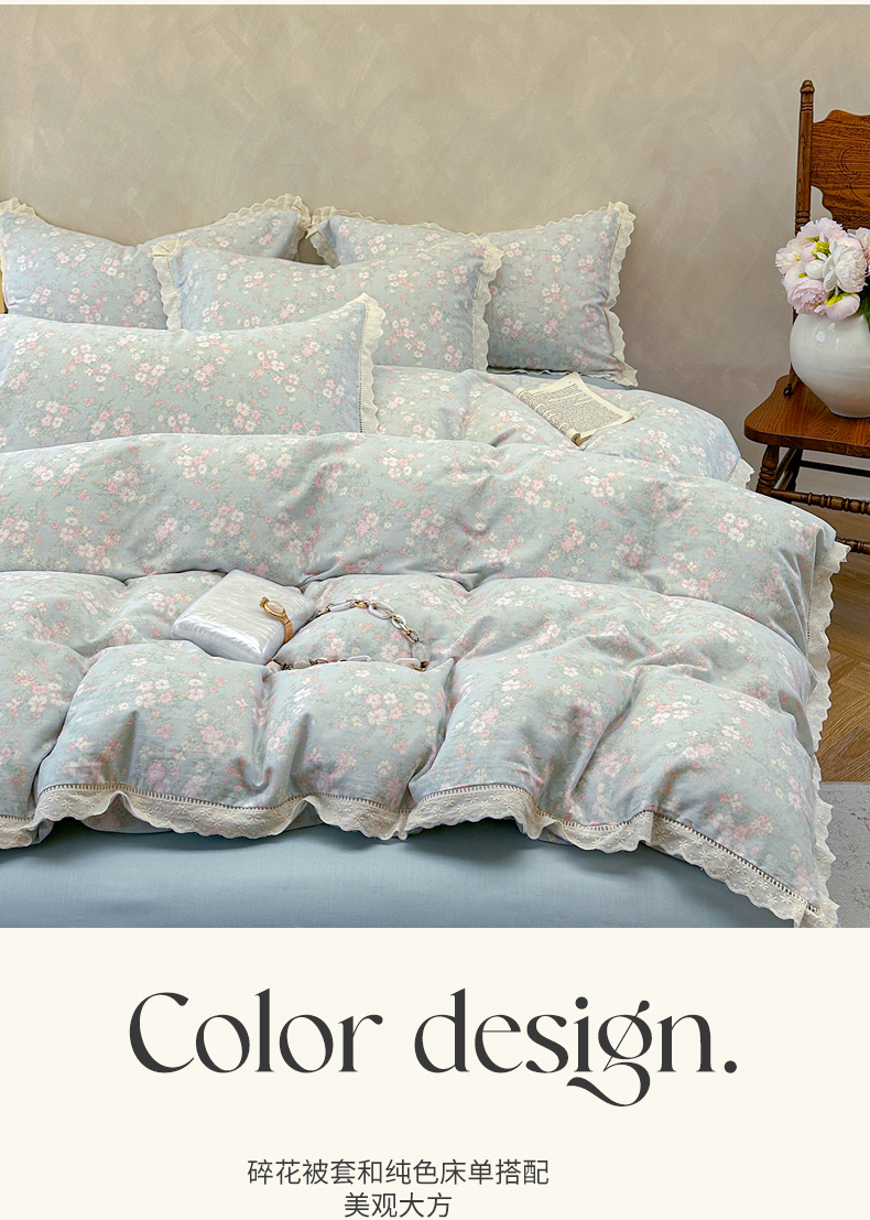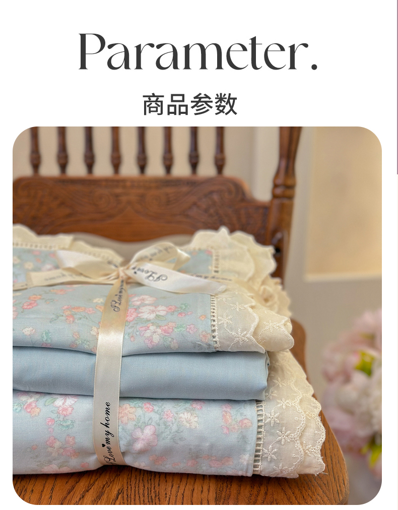 当前位置: 91家纺网 > 商品网购 > 床品套件 > 四件套 > 双层纱四件套 > 麦伦家居 2025新款A类全棉有氧双层纱印花系列四件套-镂空系列 苍兰