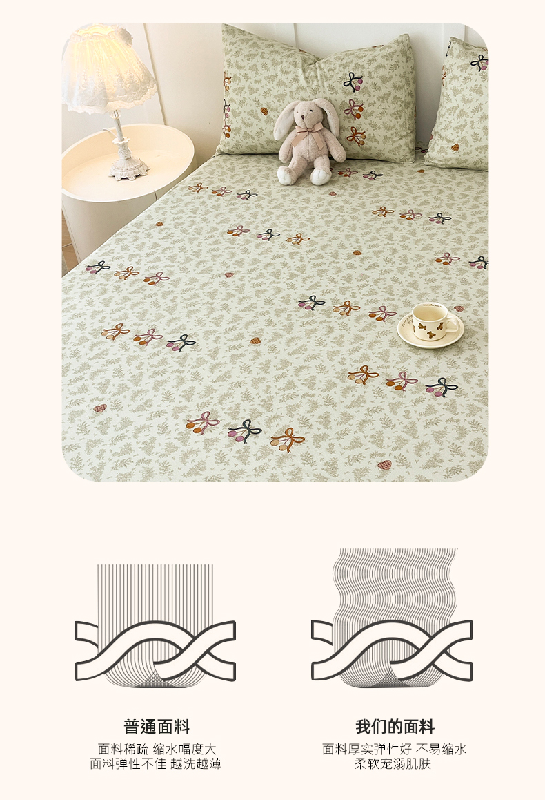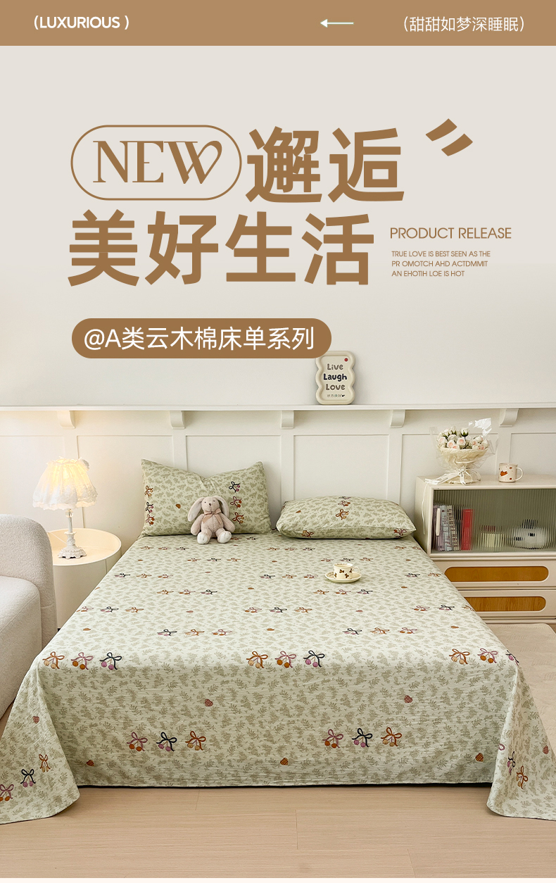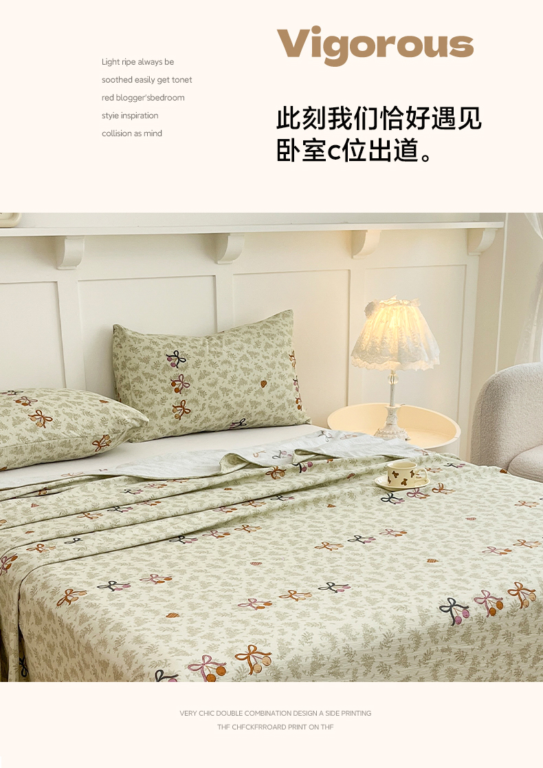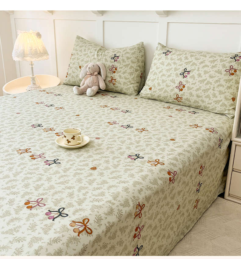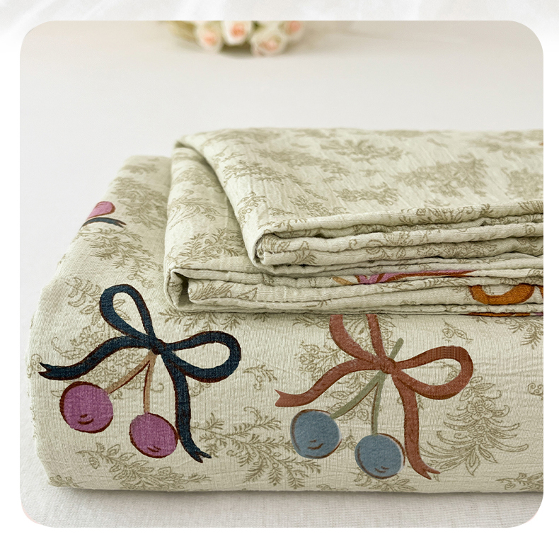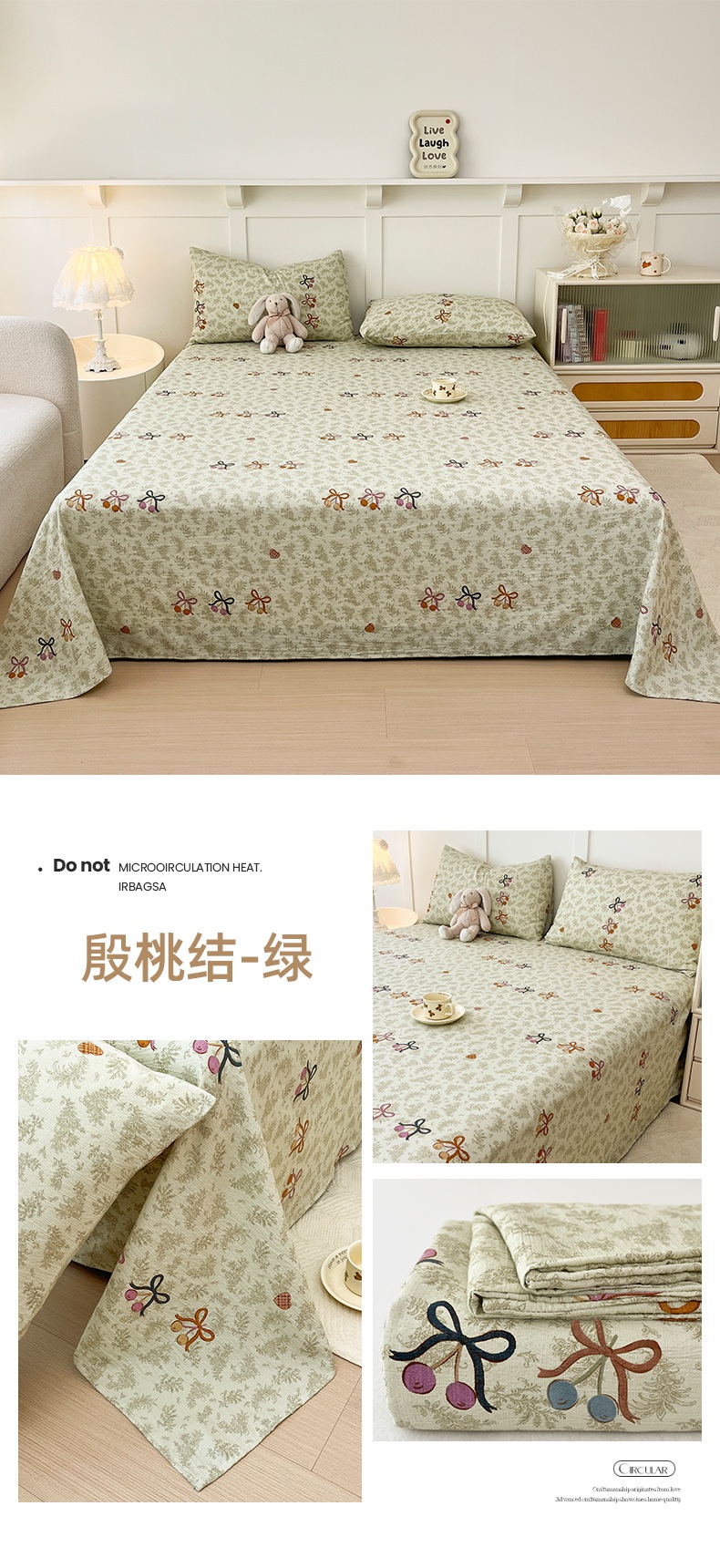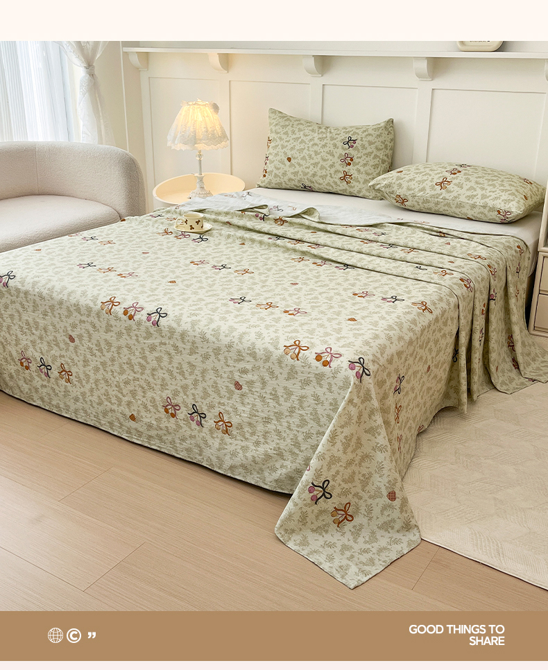 麦乐迪 2025新款A类云感双层纱印花床单 殷桃结-绿