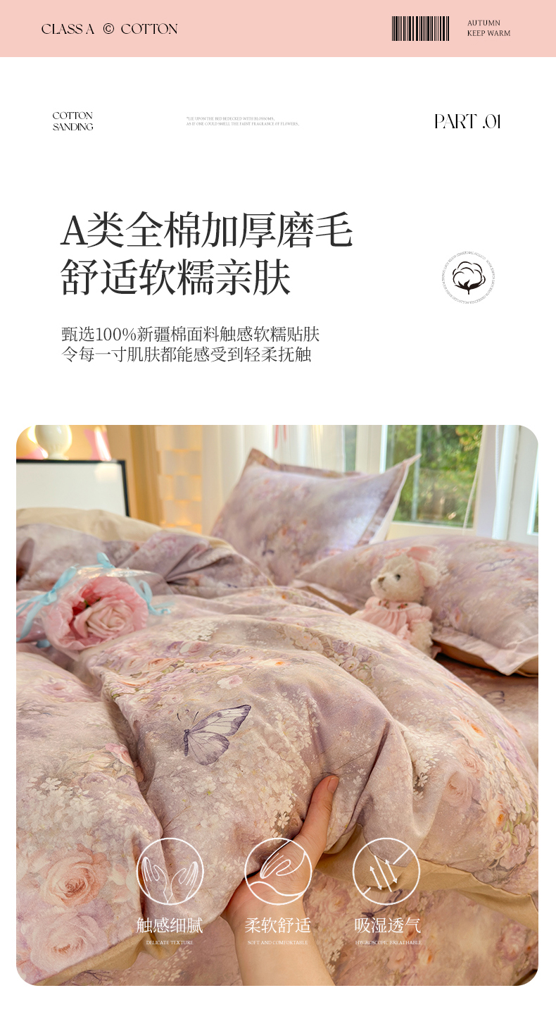 当前位置: 91家纺网 > 商品网购 > 床品套件 > 四件套 > 全棉普通四件套 > 拾物记 2025新款A类全棉纯棉加厚超柔磨毛四件套(提供 买家秀 质检报告和实验视频) 雾野花蝶
