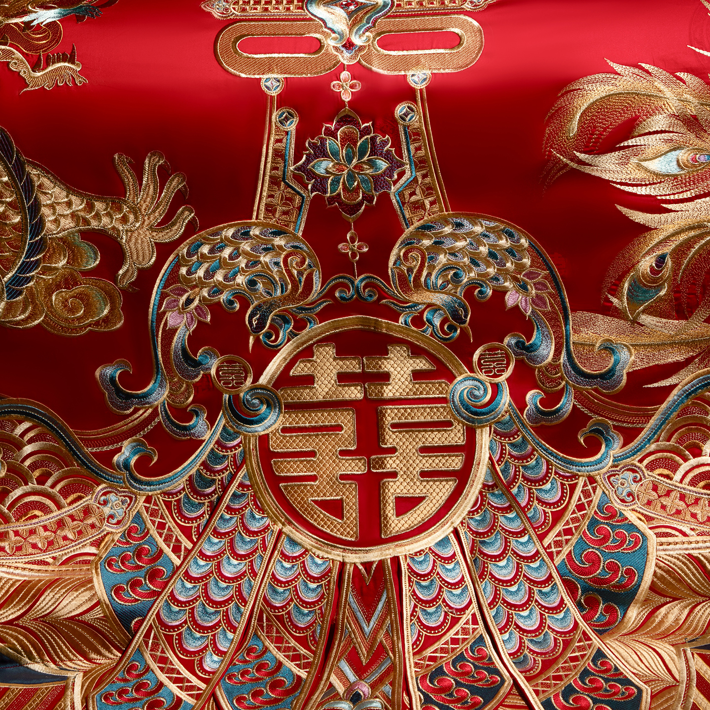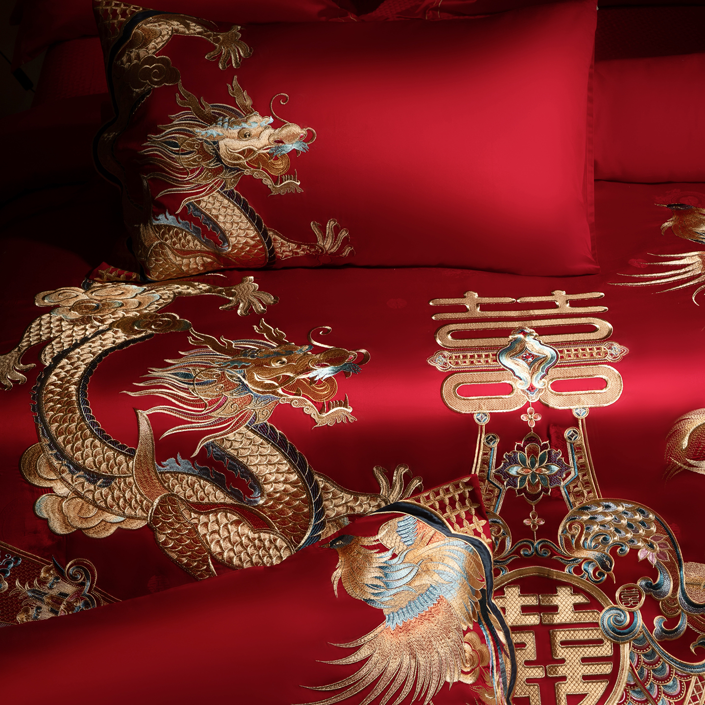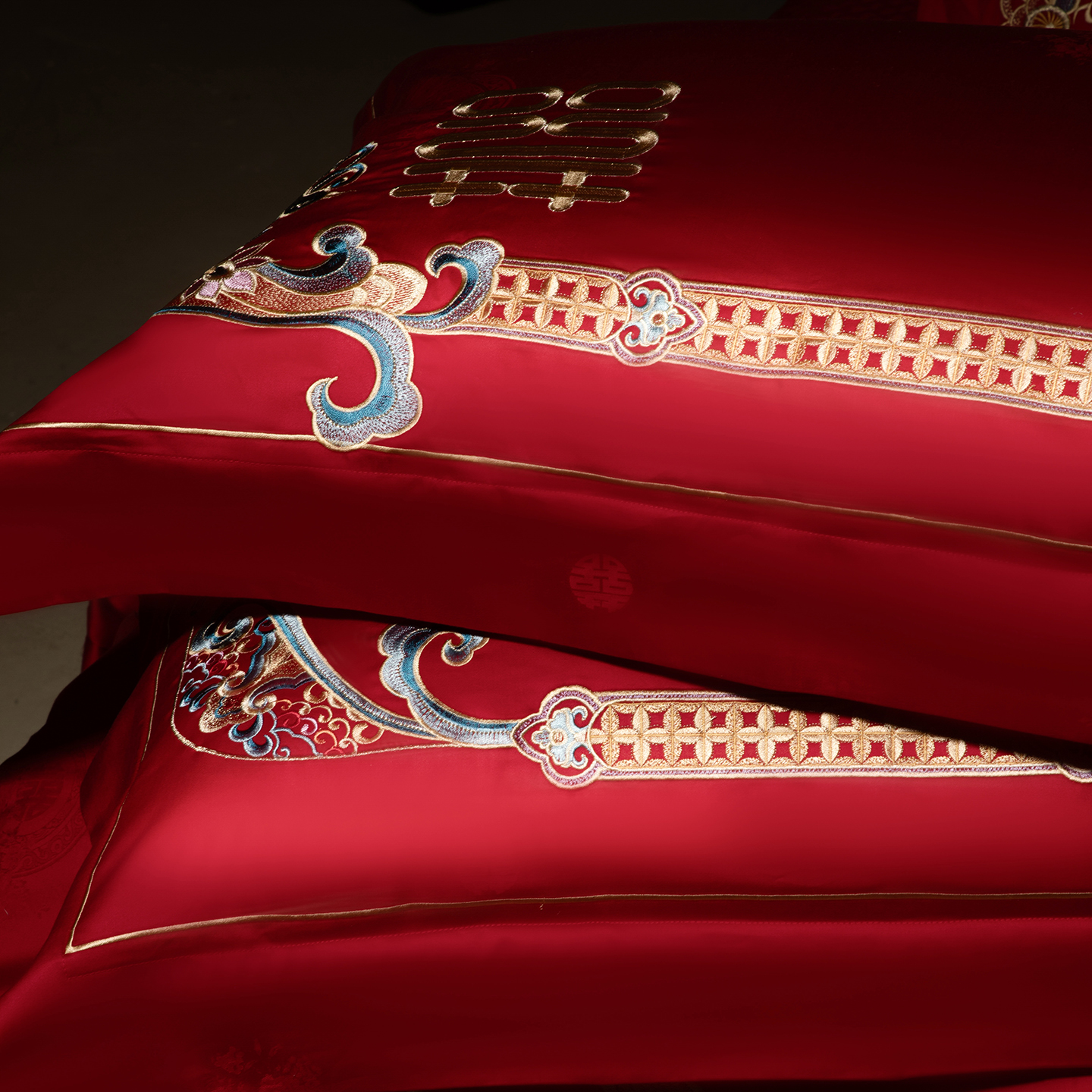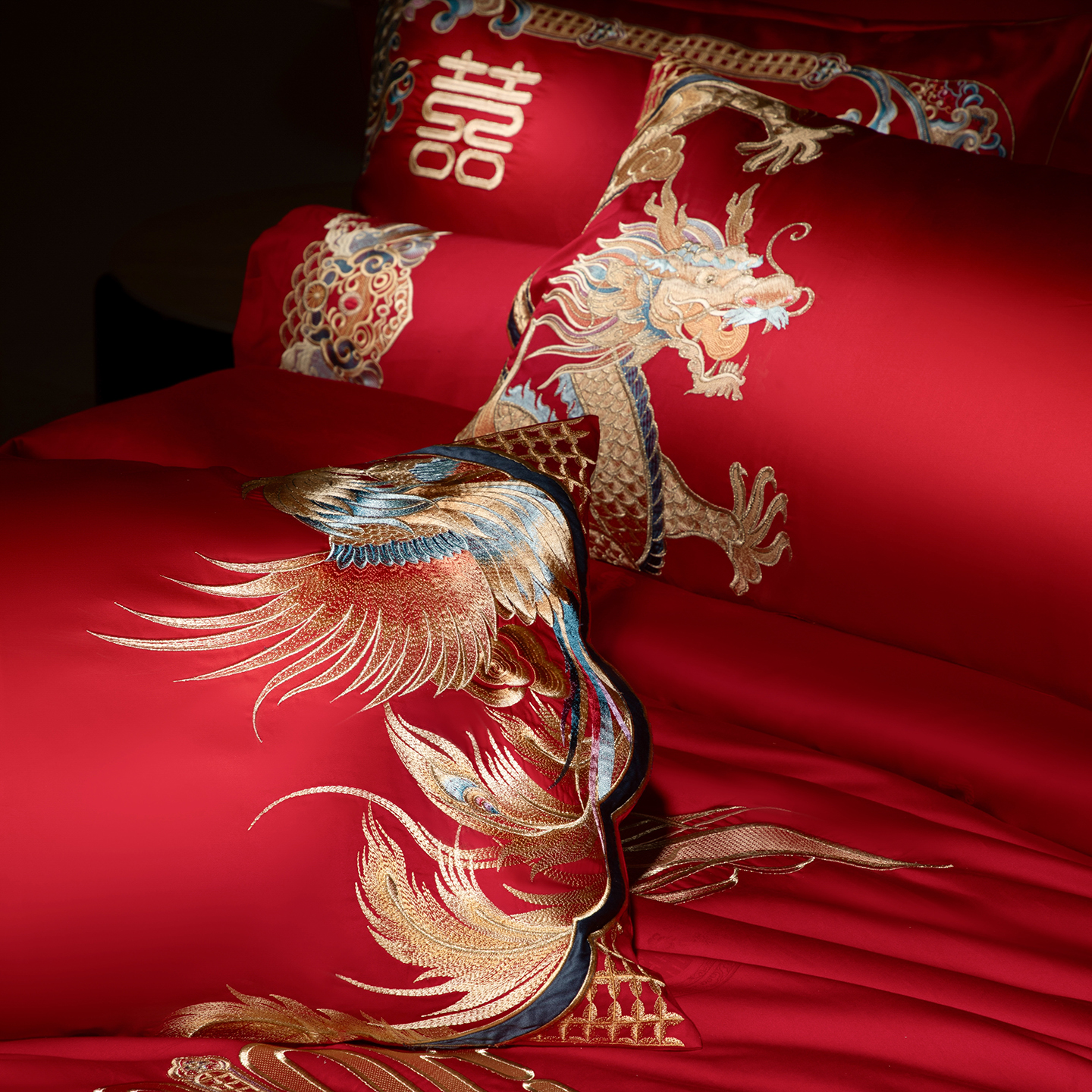 当前位置: 91家纺网 > 商品网购 > 床品套件 > 四件套 > 婚庆四件套 > (总)佳汐蓝家纺 2025新款100支贡缎提花全棉刺绣婚庆四件套-龙威凤彩