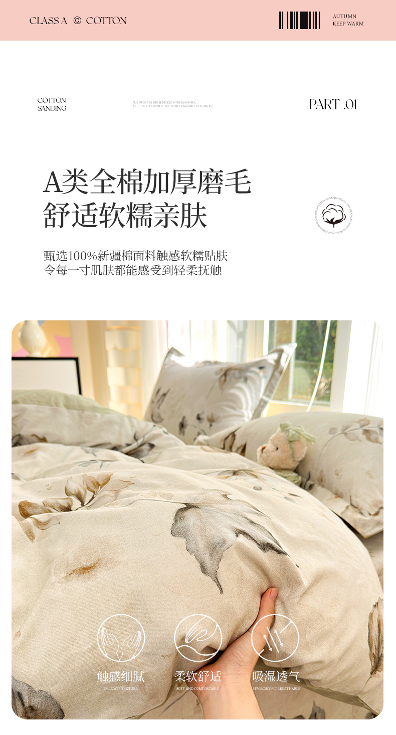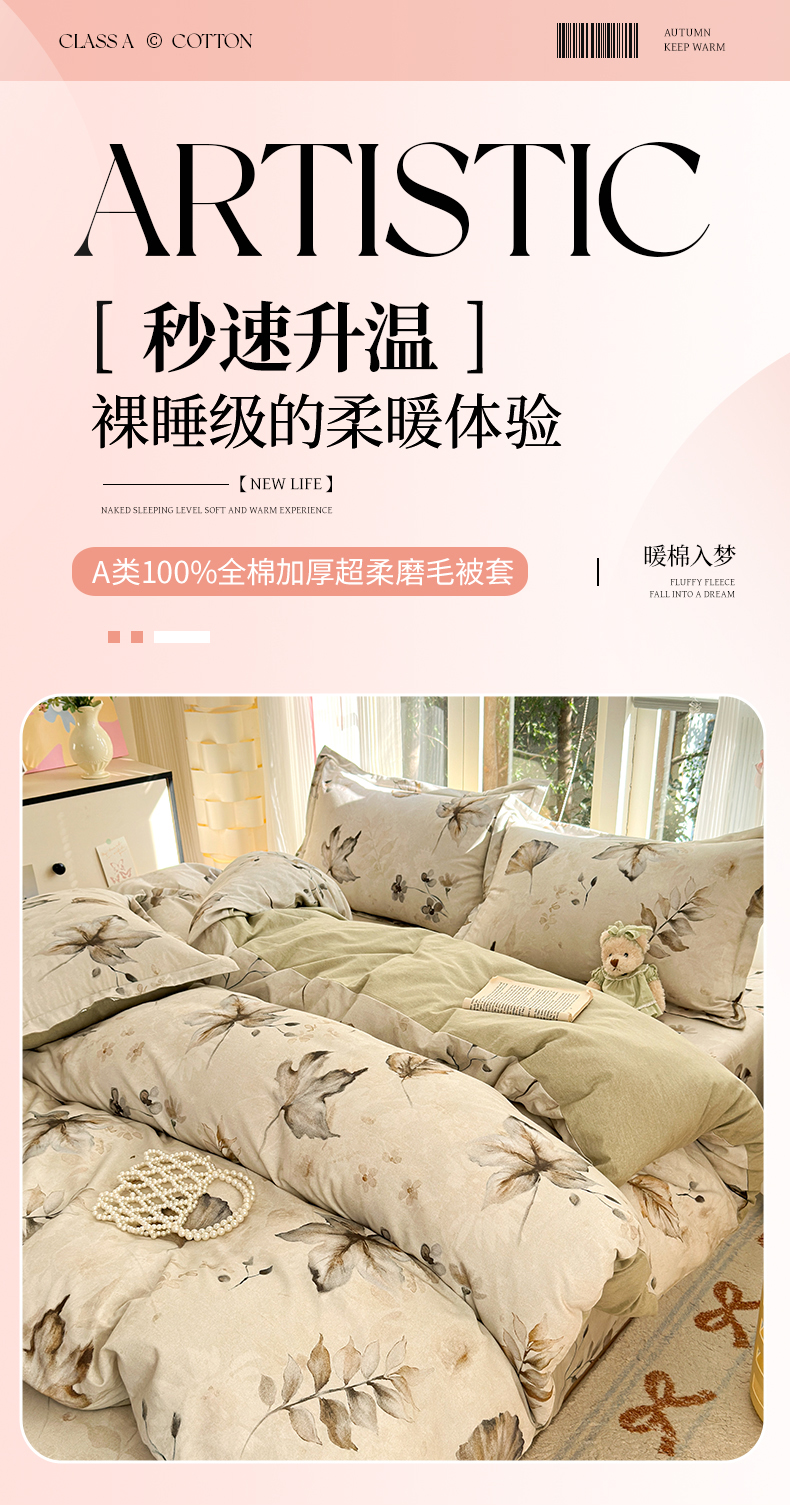 • 91家纺网 家纺一手货源 找家纺 拾物记 2025新款A类全棉纯棉加厚超柔磨毛单被套(提供买家秀质检报告和实验视频) 衫叶