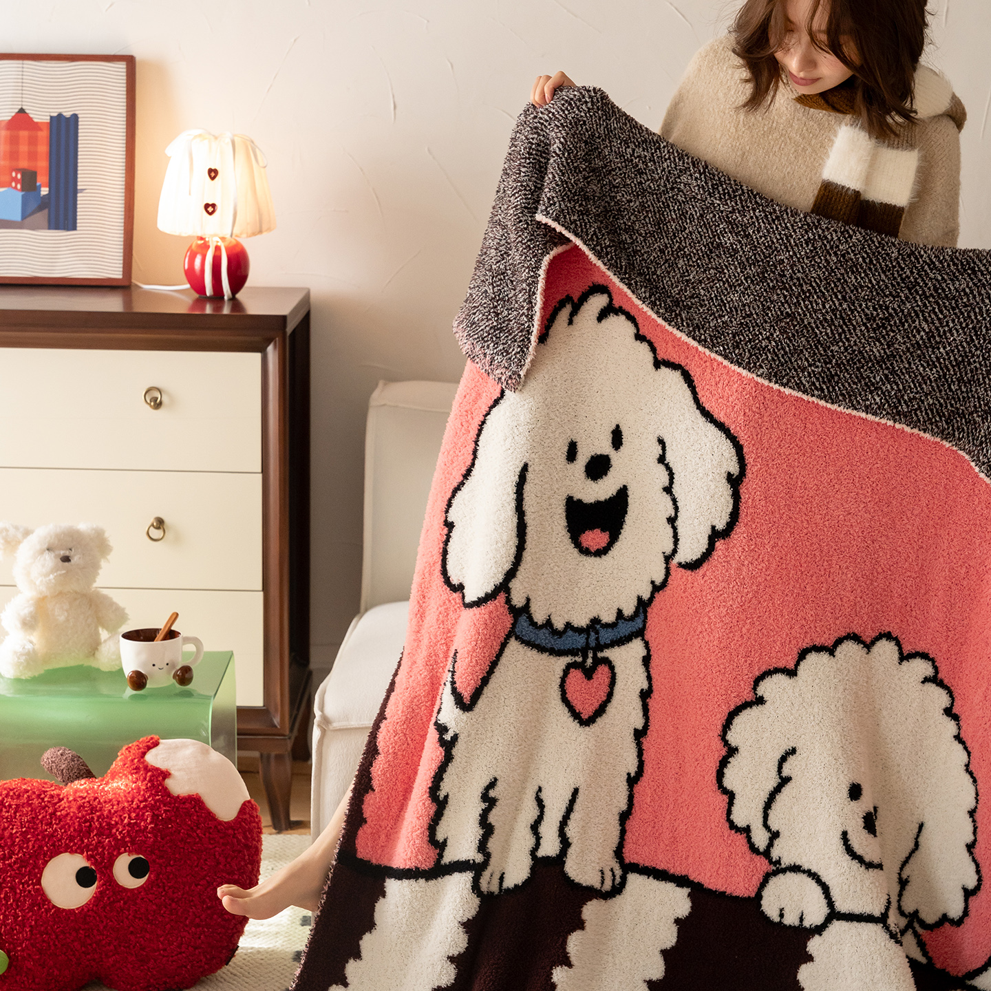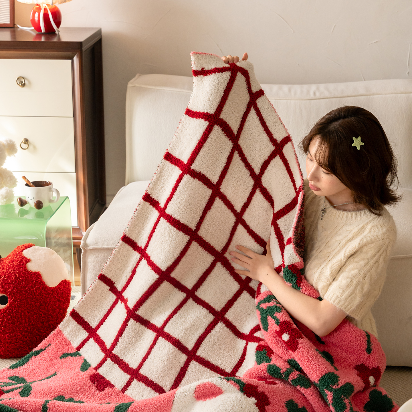 商品名称:多乐娜 2025新款原创设计半边绒毛毯盖毯沙发毯毯子 浆果蝴蝶结