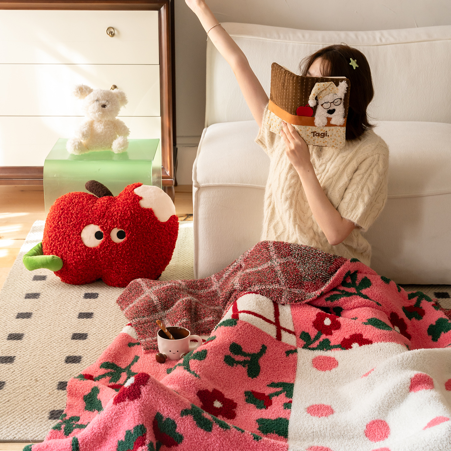 多乐娜 2025新款原创设计半边绒毛毯盖毯沙发毯毯子 浆果蝴蝶结