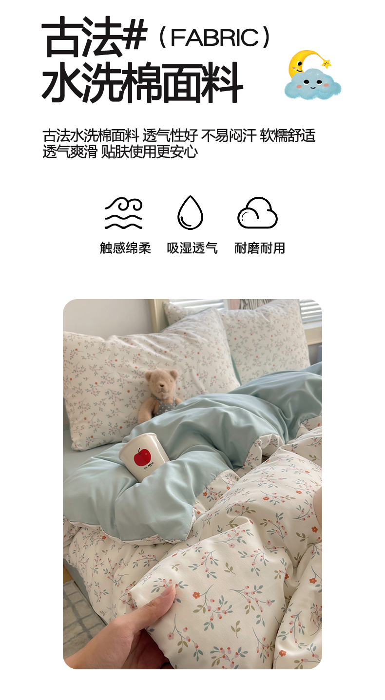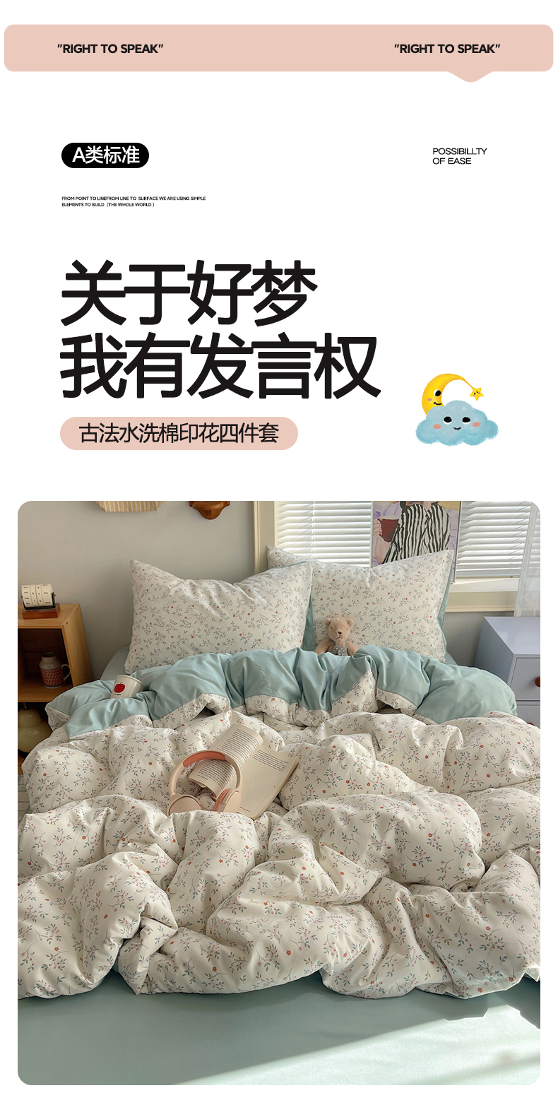 当前位置: 91家纺网 > 商品网购 > 床品套件 > 四件套 > 水洗棉四件套 > 星禾优选 2025新款A类仿棉四件套古法水洗棉小清新印花四件套单被套系列(提供买家秀) 粉意盎然