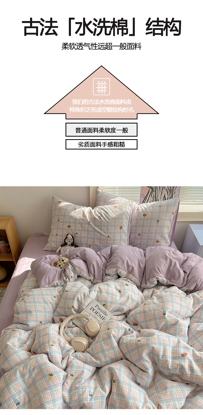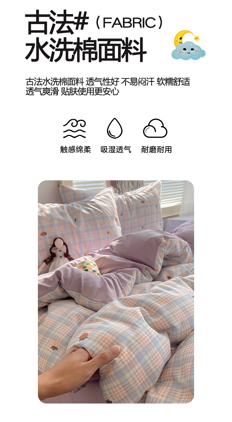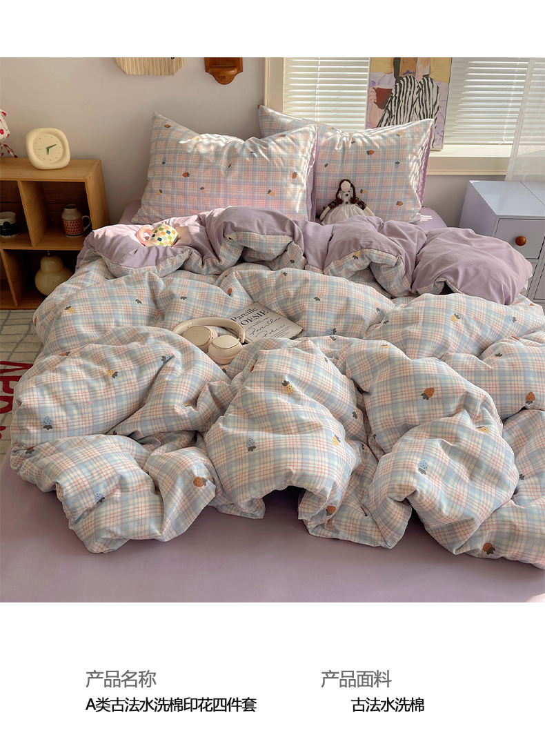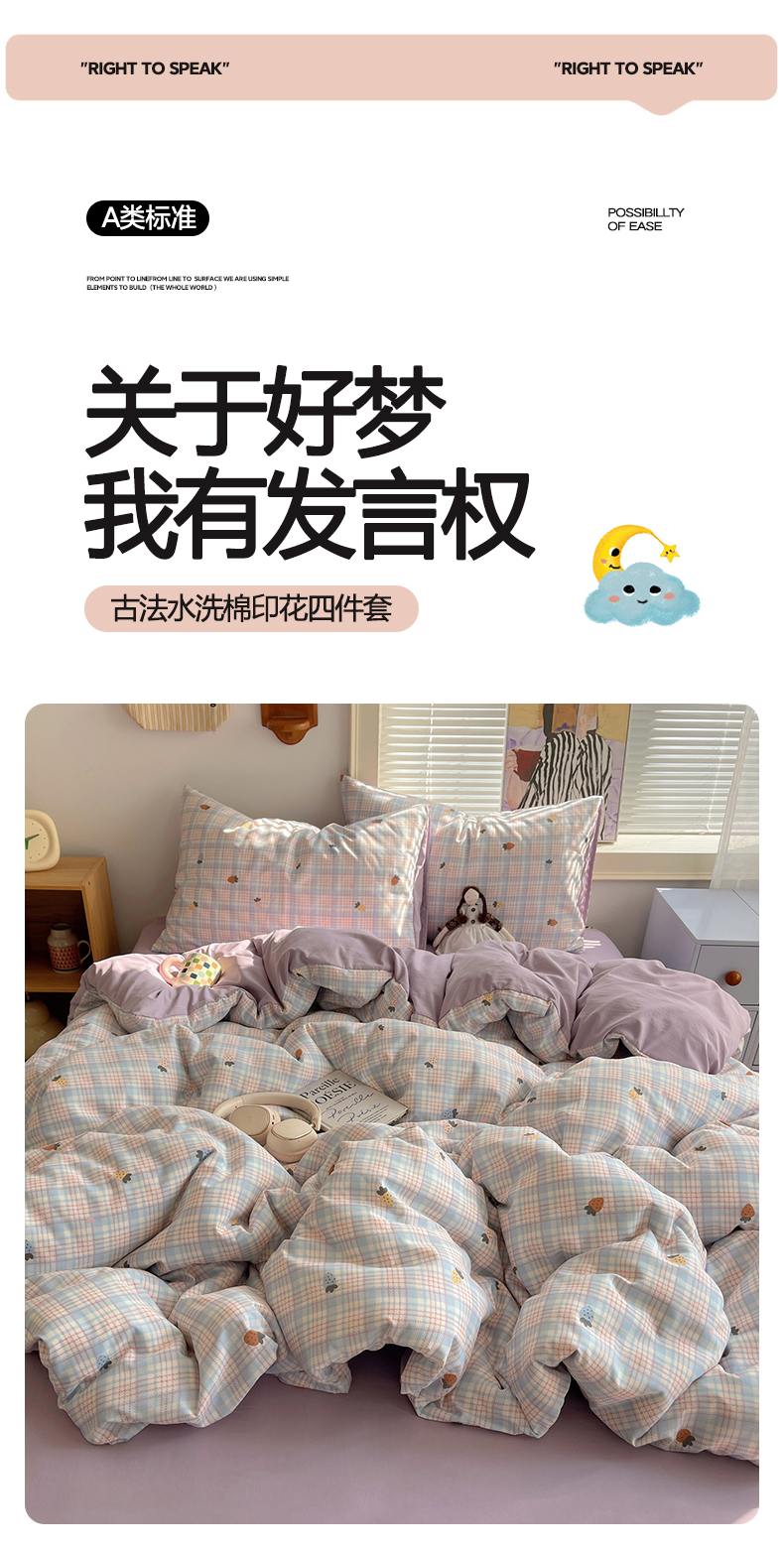 当前位置: 91家纺网 > 商品网购 > 床品套件 > 四件套 > 水洗棉四件套 > 星禾优选 2025新款A类仿棉四件套古法水洗棉小清新印花四件套单被套系列(提供买家秀) 线条草莓