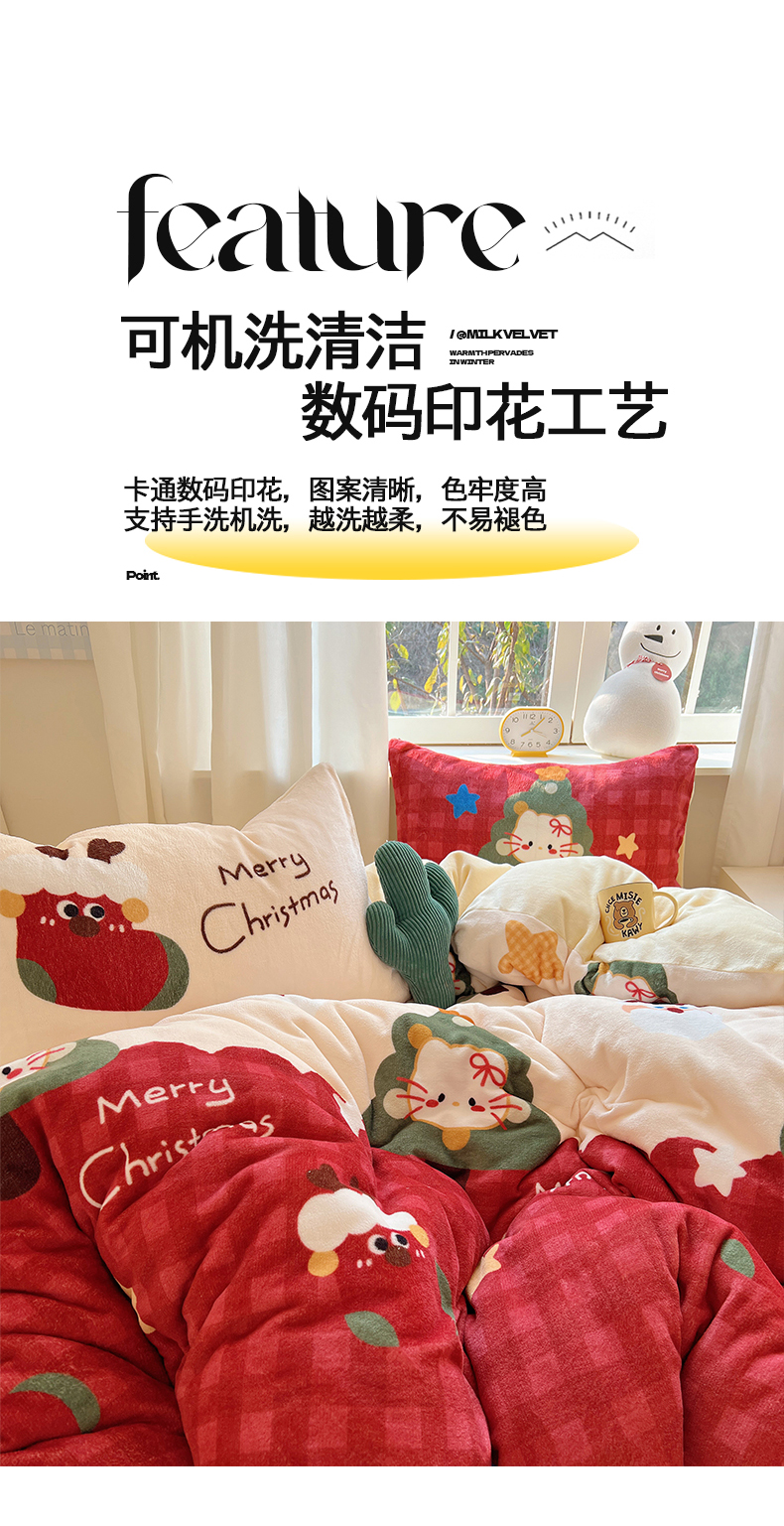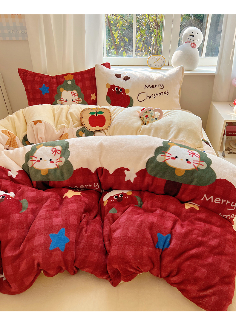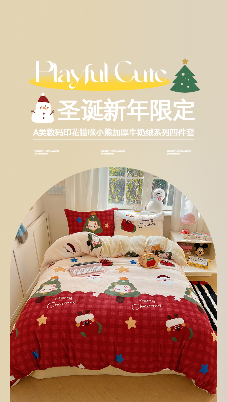 当前位置: 91家纺网 > 商品网购 > 床品套件 > 四件套 > 牛奶绒四件套 > 桃子家居 2025新款A类数码印花圣诞新年限定款猫咪小熊加厚牛奶绒系列四件套详情 绒-圣诞猫咪