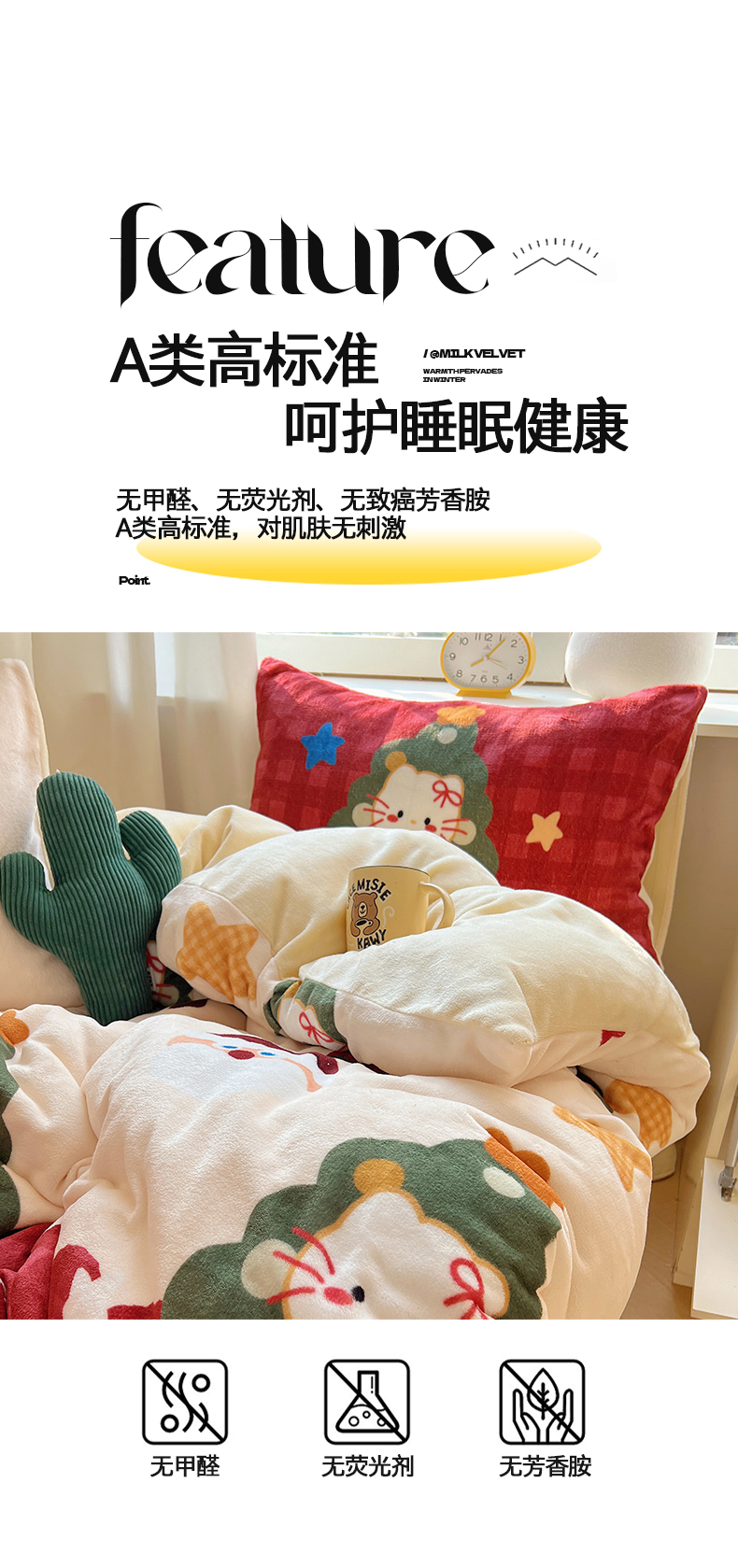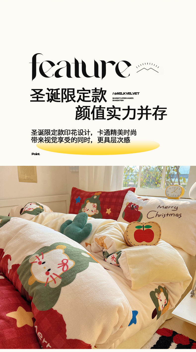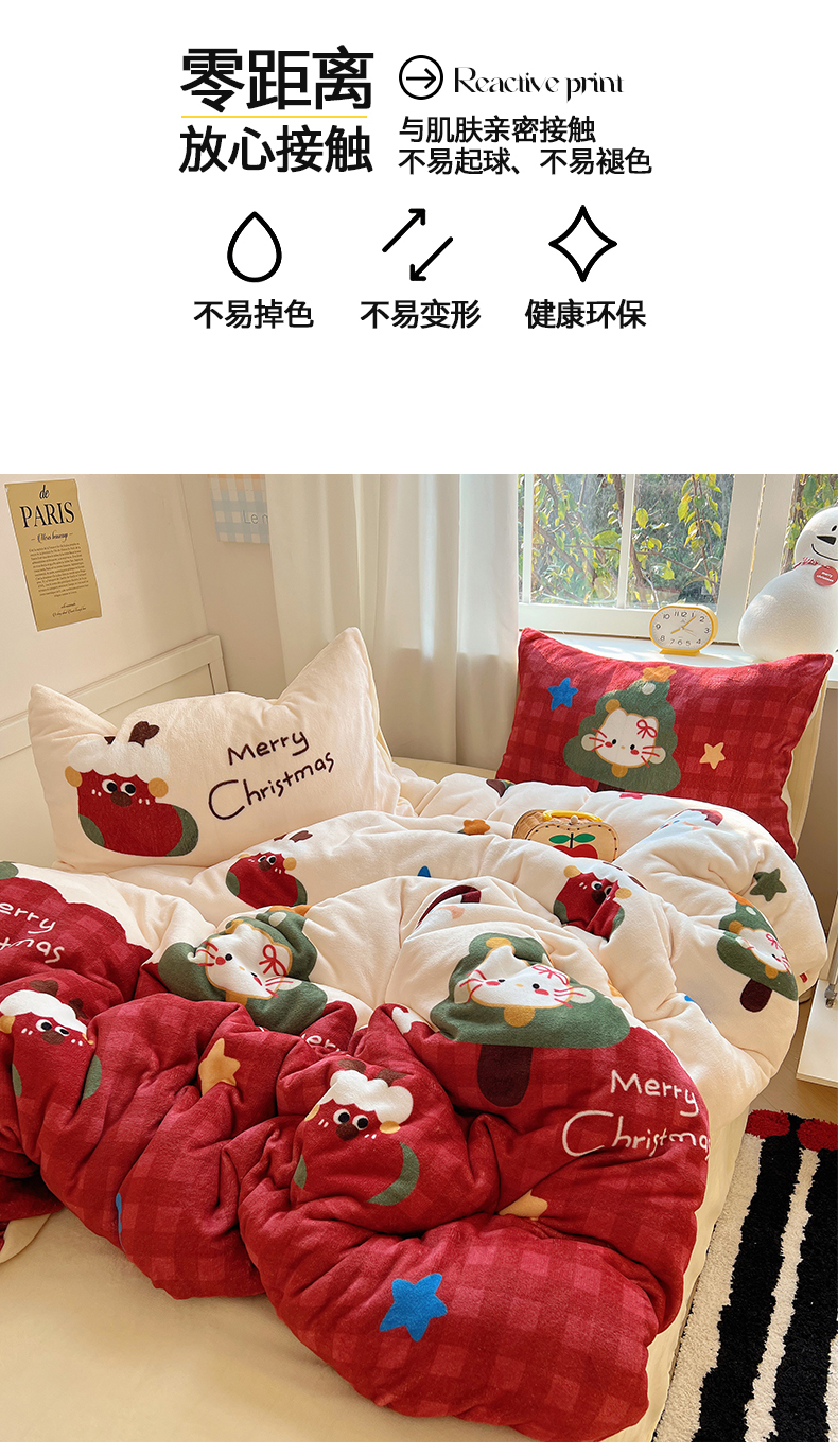 当前位置: 91家纺网 > 商品网购 > 床品套件 > 四件套 > 牛奶绒四件套 > 桃子家居 2025新款A类数码印花圣诞新年限定款猫咪小熊加厚牛奶绒系列四件套详情 绒-圣诞猫咪