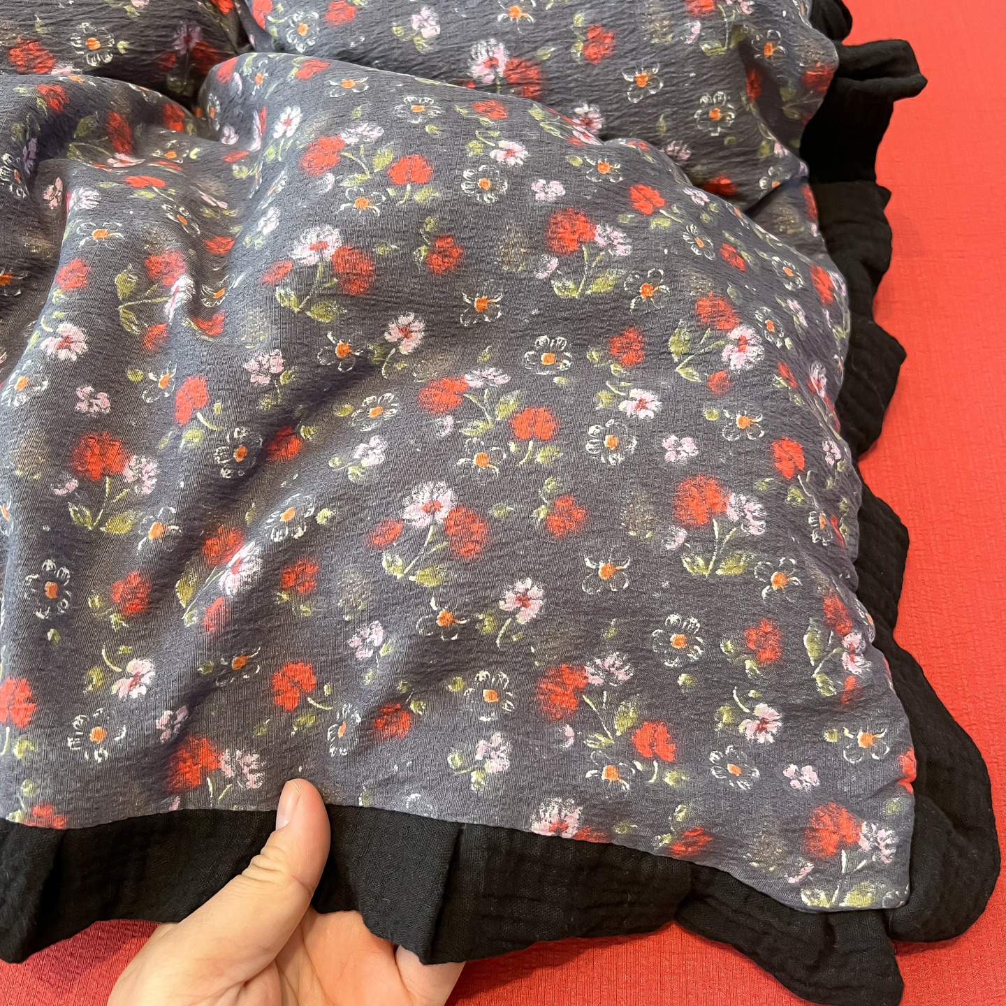 商品名称:(总)繁花家居 2025秋意浓水洗邹邹棉云感木棉多层纱大花边四件套直播外贸爆款