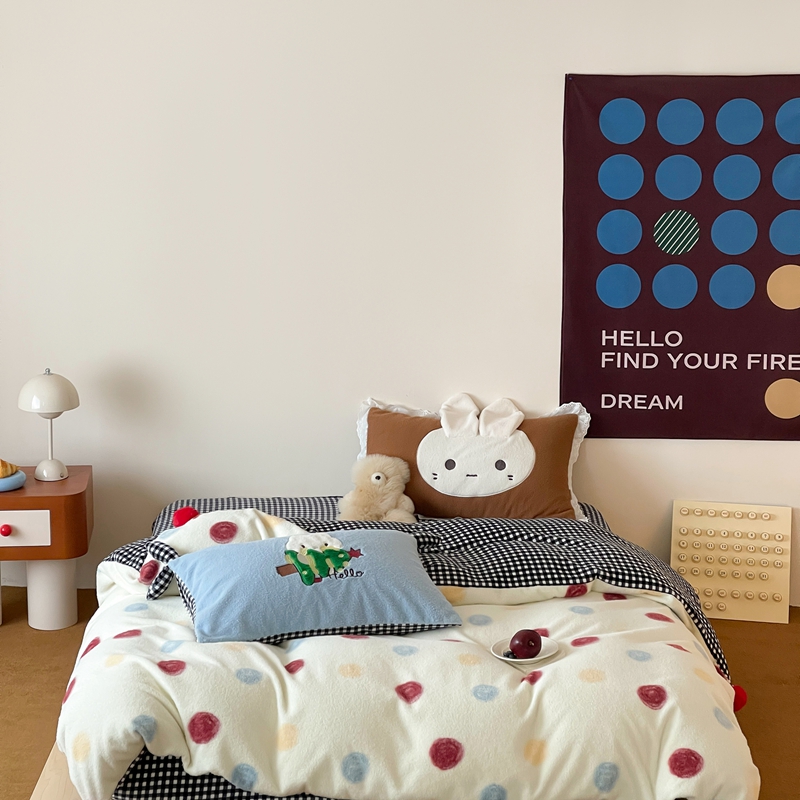 当前位置: 91家纺网 > 商品网购 > 床品套件 > 四件套 > 其它四件套 > 桔子家纺 2025秋冬新款羊毛绒mi兔系列四件套 波点mi兔