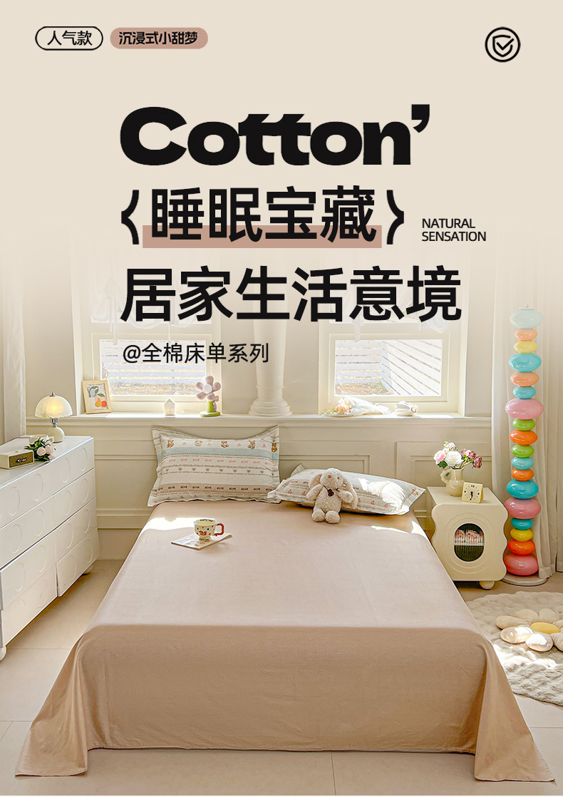 • 91家纺网 家纺一手货源 找家纺 名优家纺 2026新款12868全棉小清新印花四件套单品系列-单床单 西西莉亚