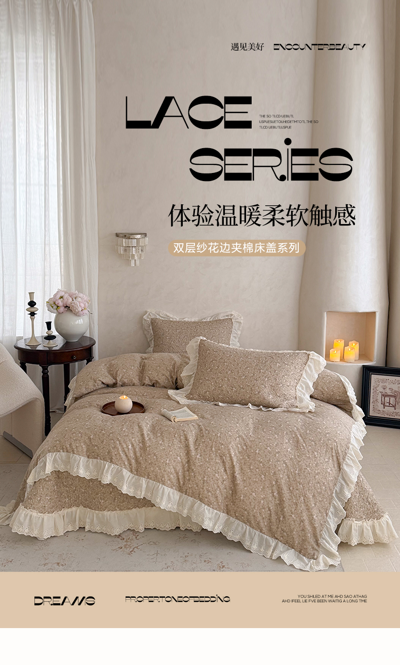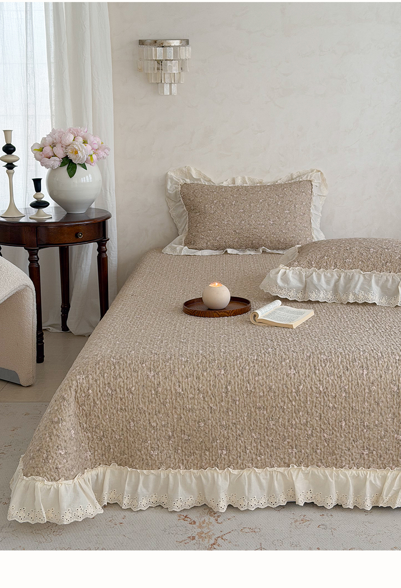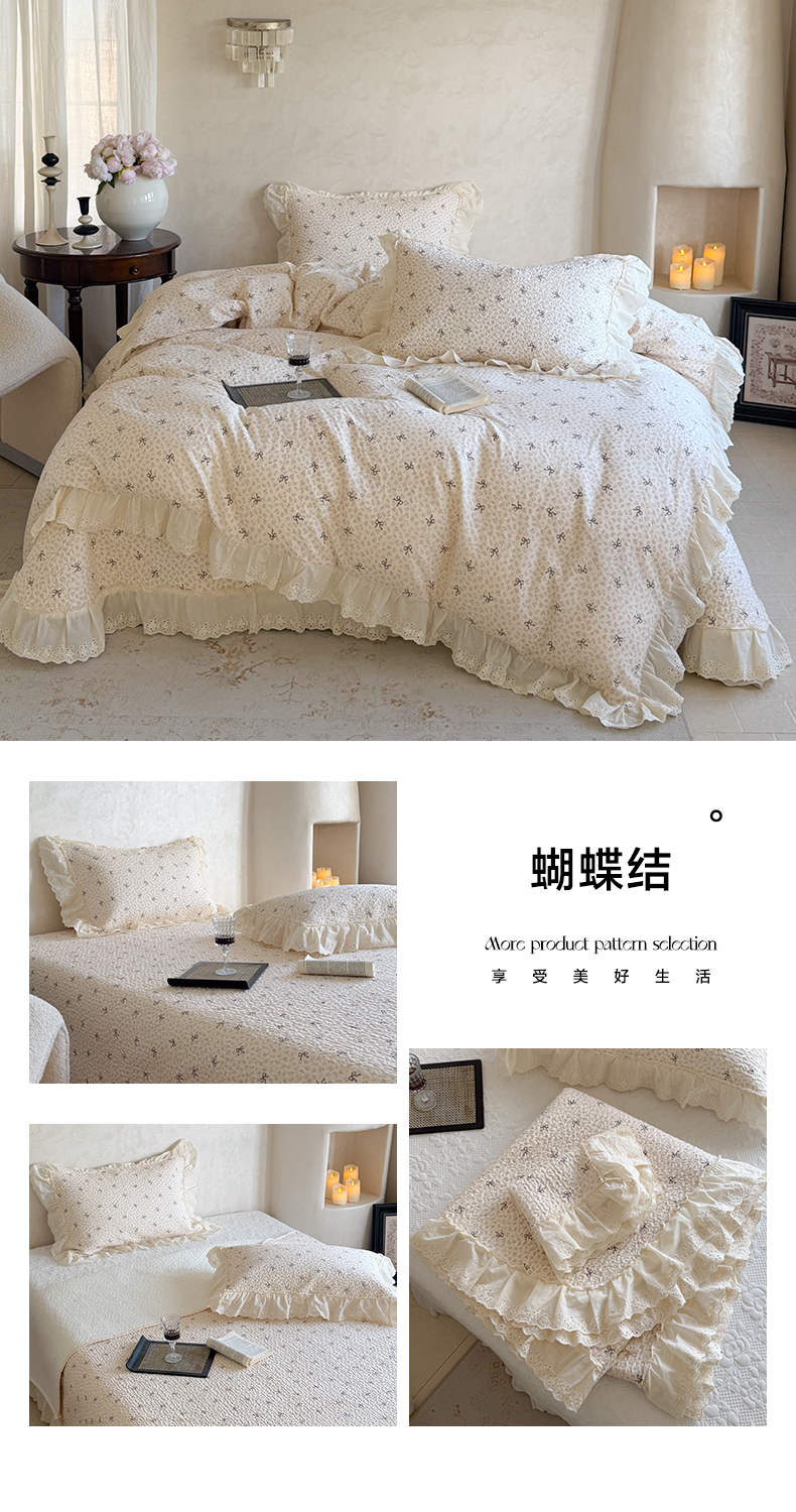 (总)琳可家居 2026新款60S长绒棉花边床盖A类双面全棉高温水洗-蝶恋系列,蝶恋-暖白,蝶恋-卡其,蝶恋-雾粉,组合
