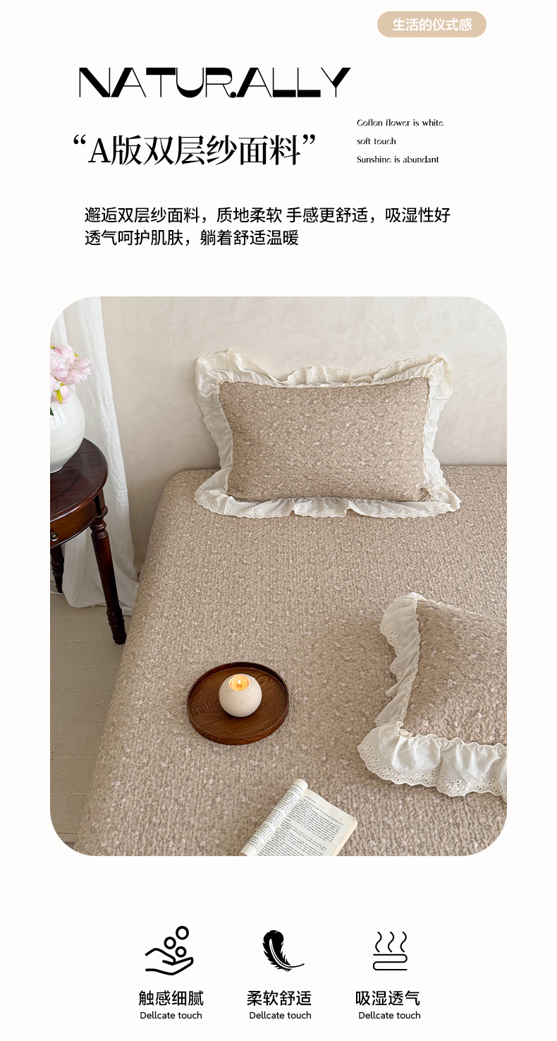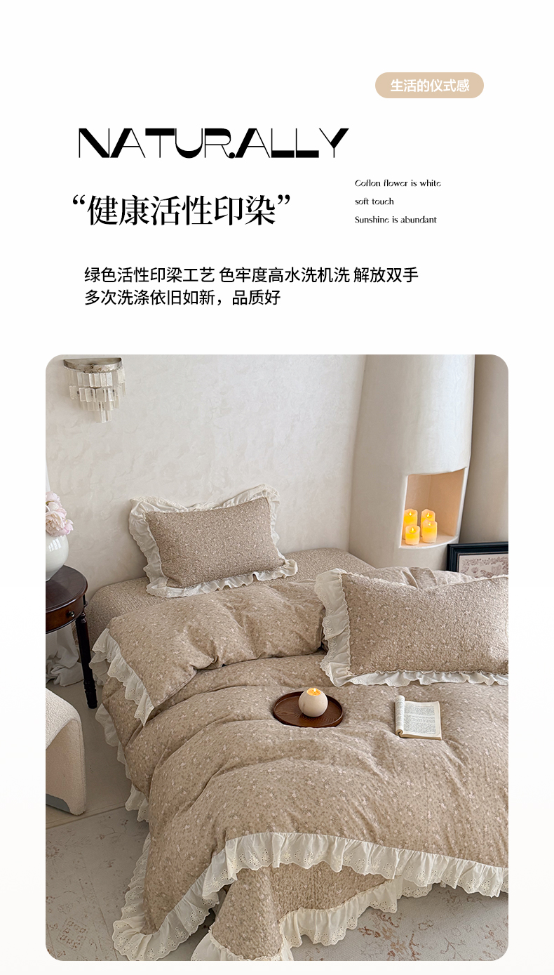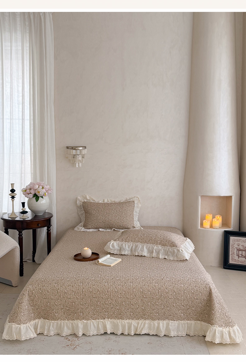(总)琳可家居 2026新款60S长绒棉花边床盖A类双面全棉高温水洗-蝶恋系列,蝶恋-暖白,蝶恋-卡其,蝶恋-雾粉,组合