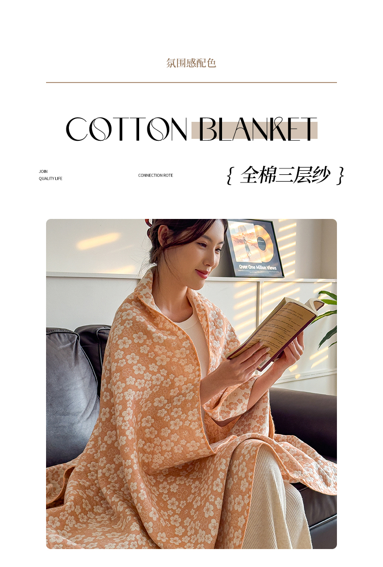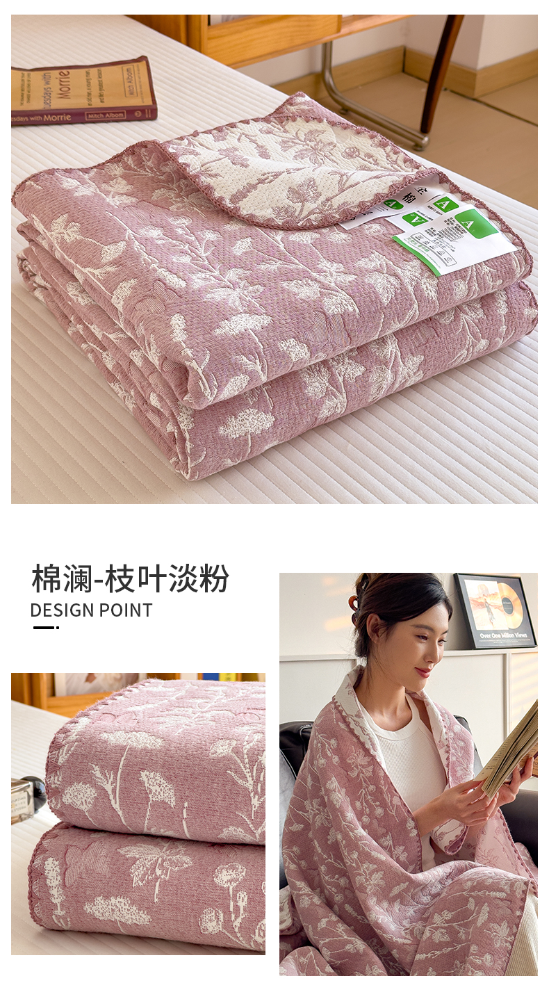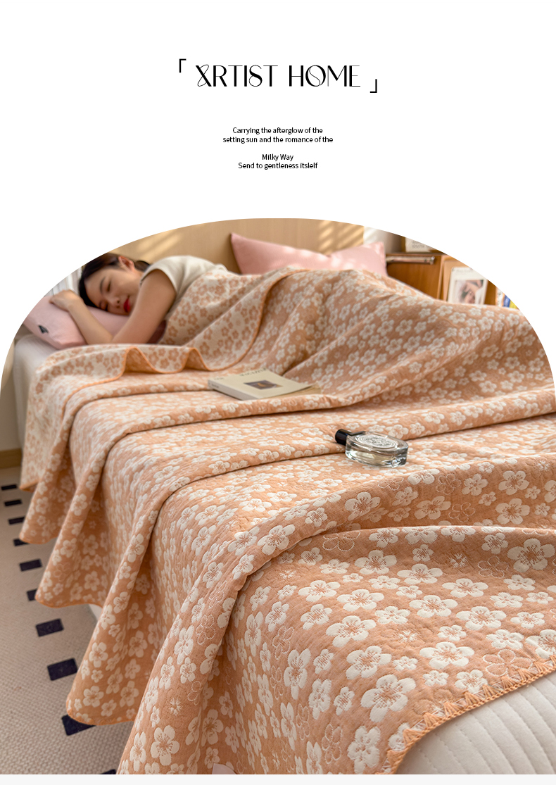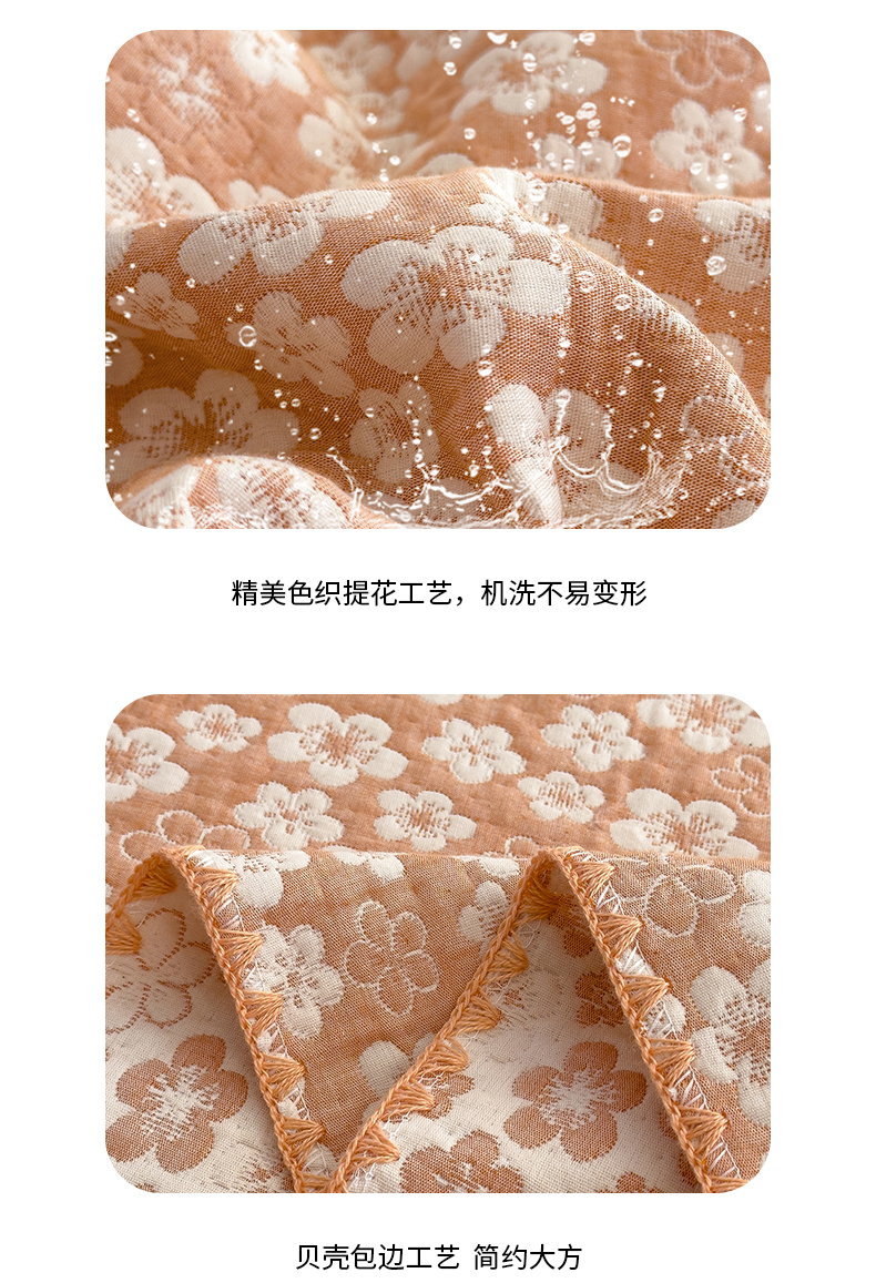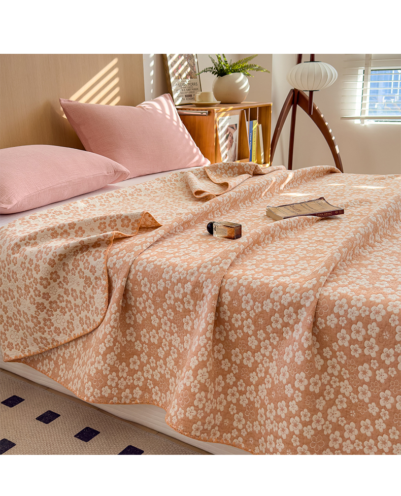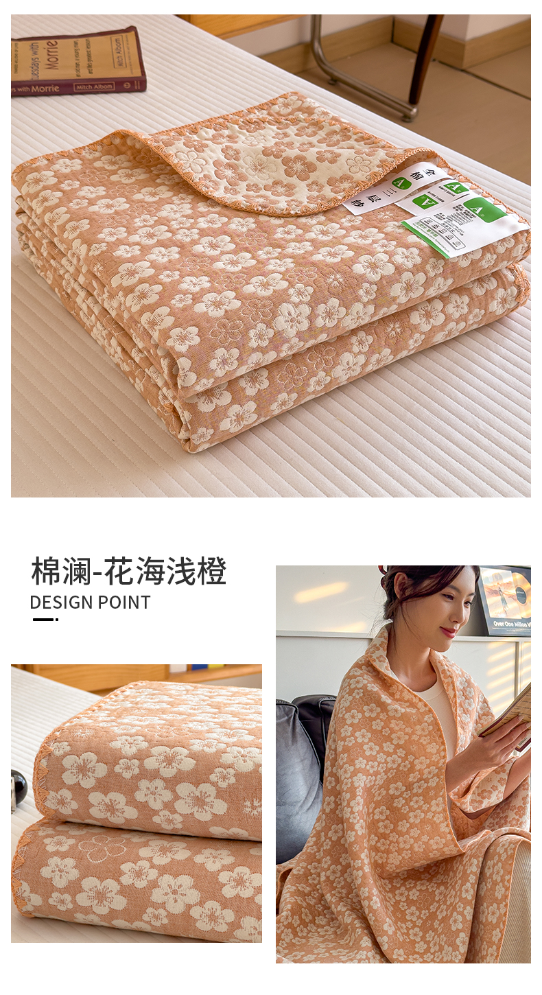 商品名称:兄弟坊 2025新款全棉三层纱多功能毛巾被(盖毯床单夏被)棉澜 棉澜-花海浅橙