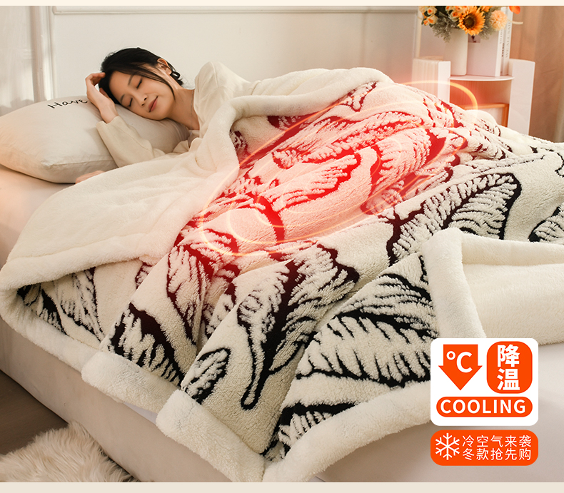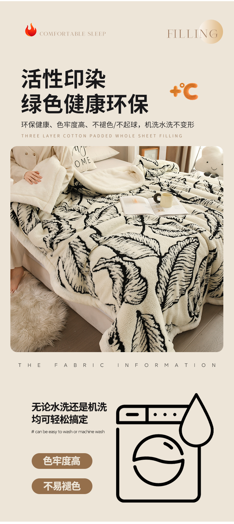 商品名称:恋绒家纺 2025新款阳离子三层舒棉绒毛毯毯子 蕉叶绿