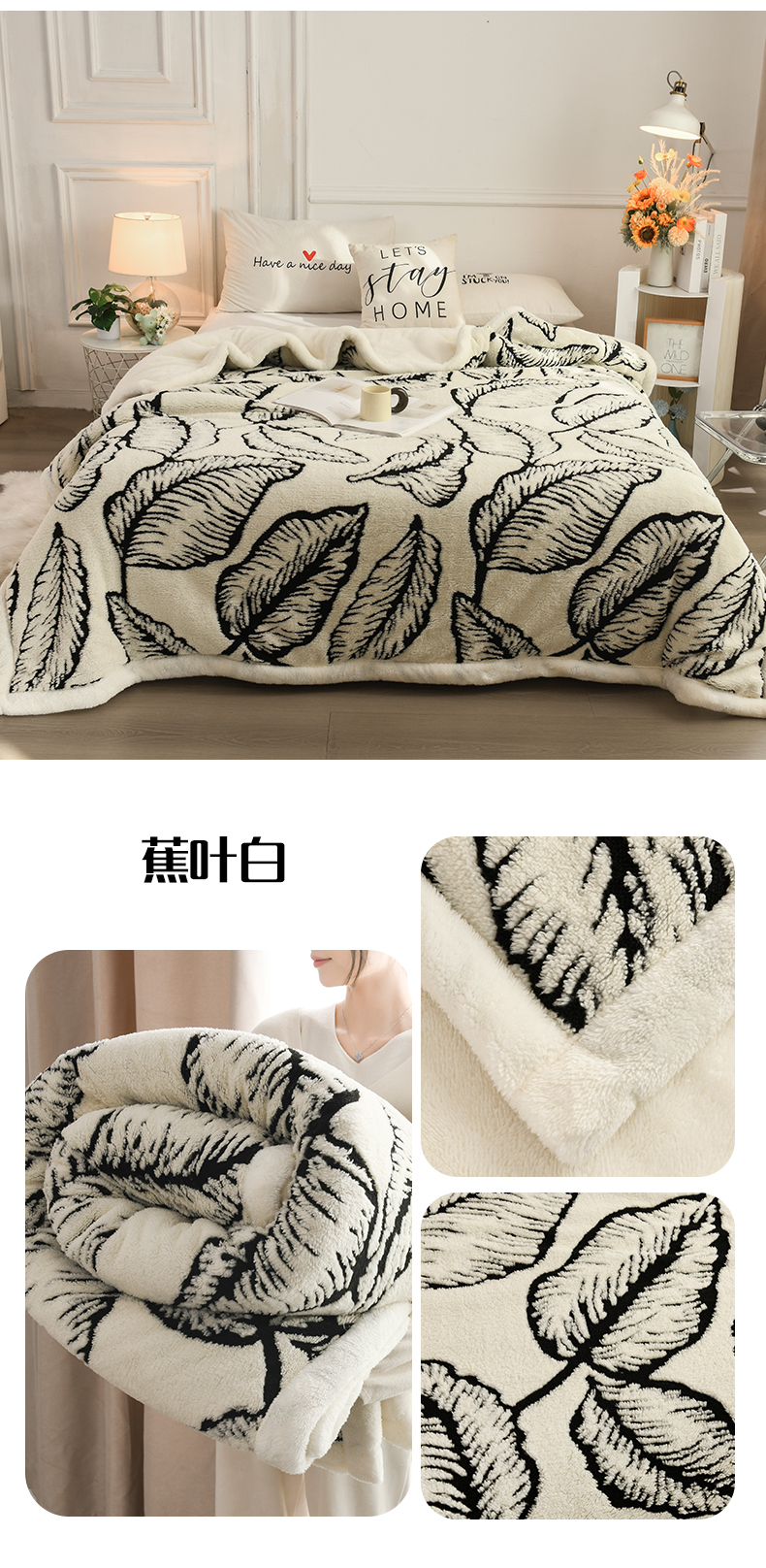 (总)恋绒家纺 2025新款阳离子三层舒棉绒毛毯毯子,爱心结,斑马纹,复古花枝,蕉叶白,蕉叶绿,幕朵,优雅咖,郁金香