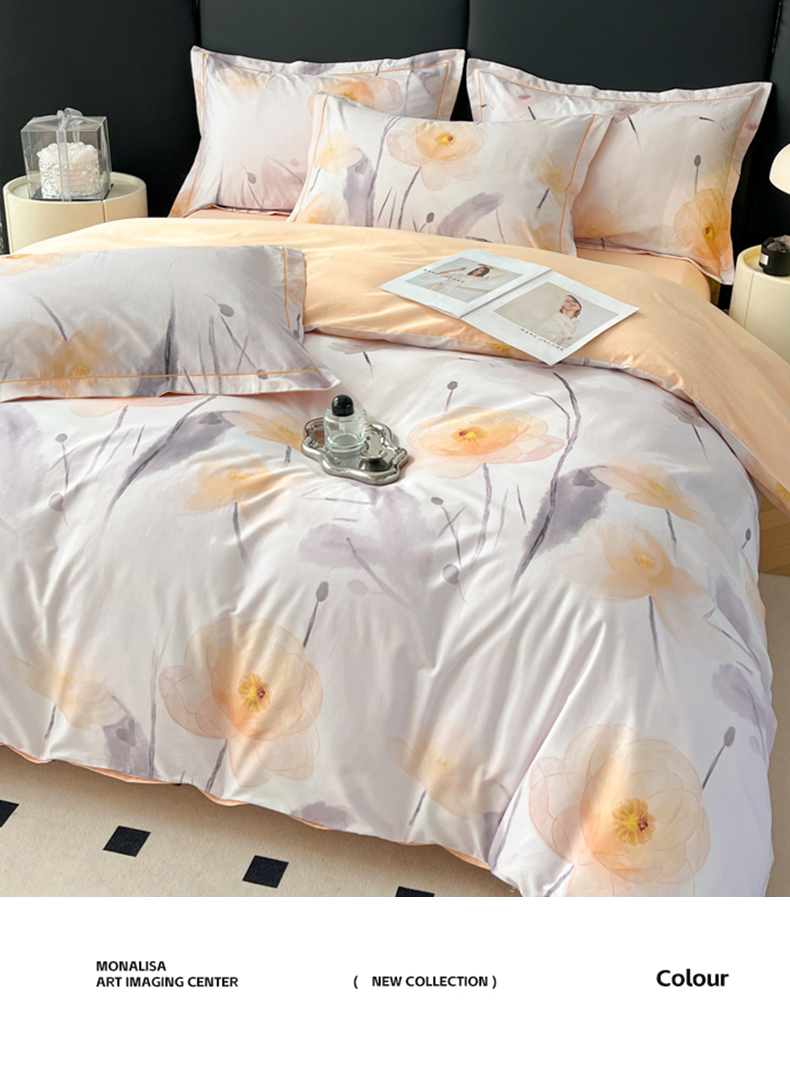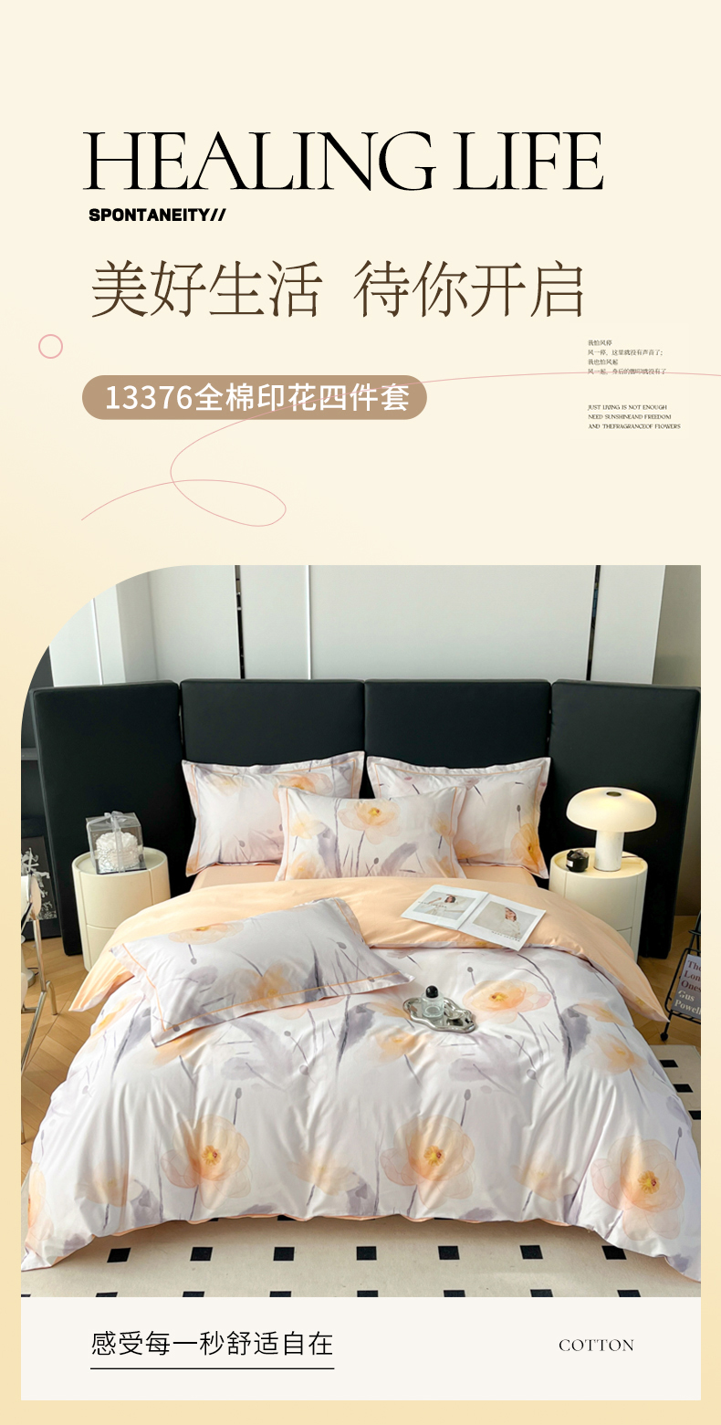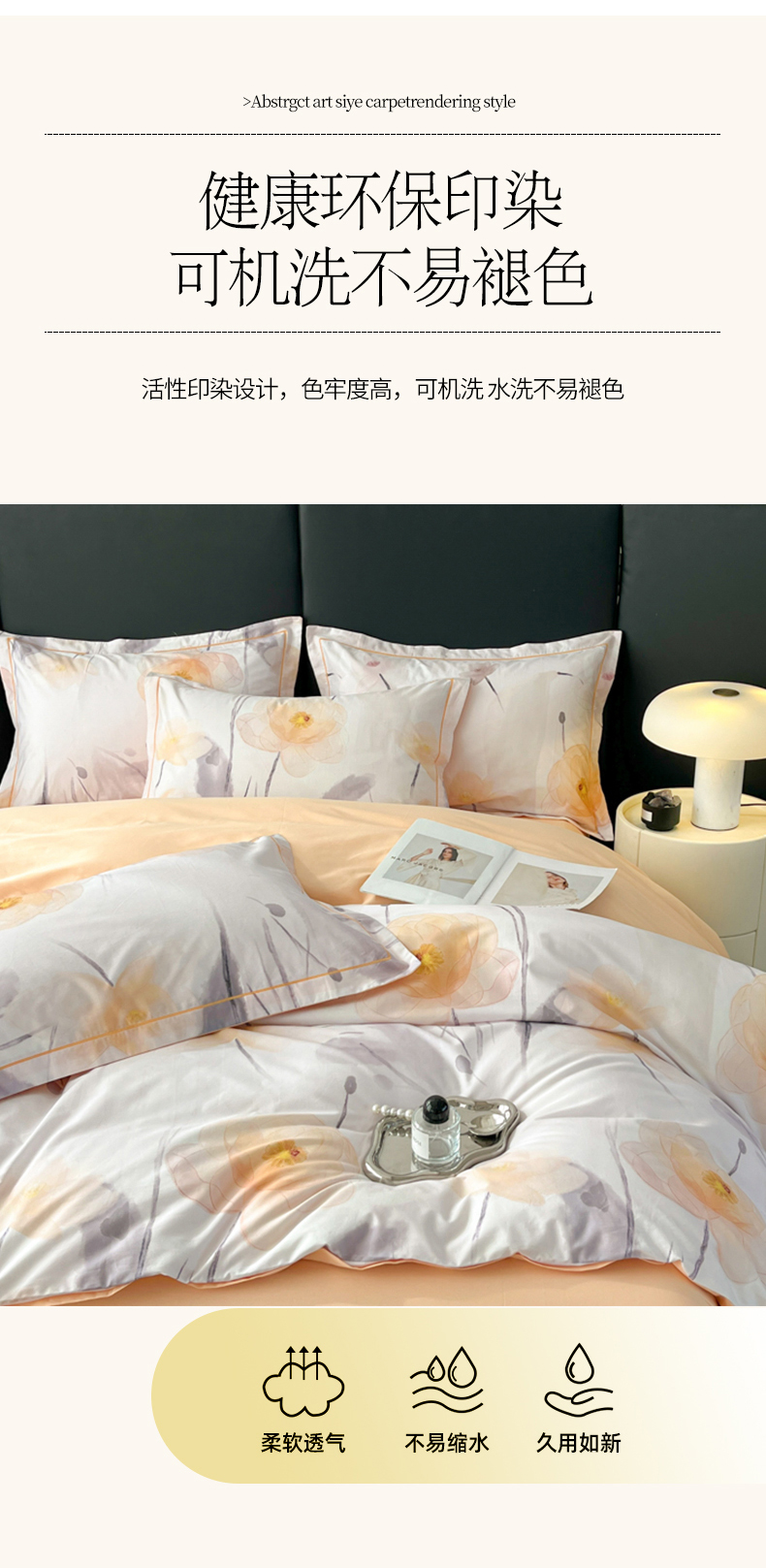 当前位置: 91家纺网 > 商品网购 > 床品套件 > 四件套 > 全棉普通四件套 > 艾迪尚家纺 2026新款133X76宽幅全棉纯棉印花四件套(有单品 可定制) 星荷-桔