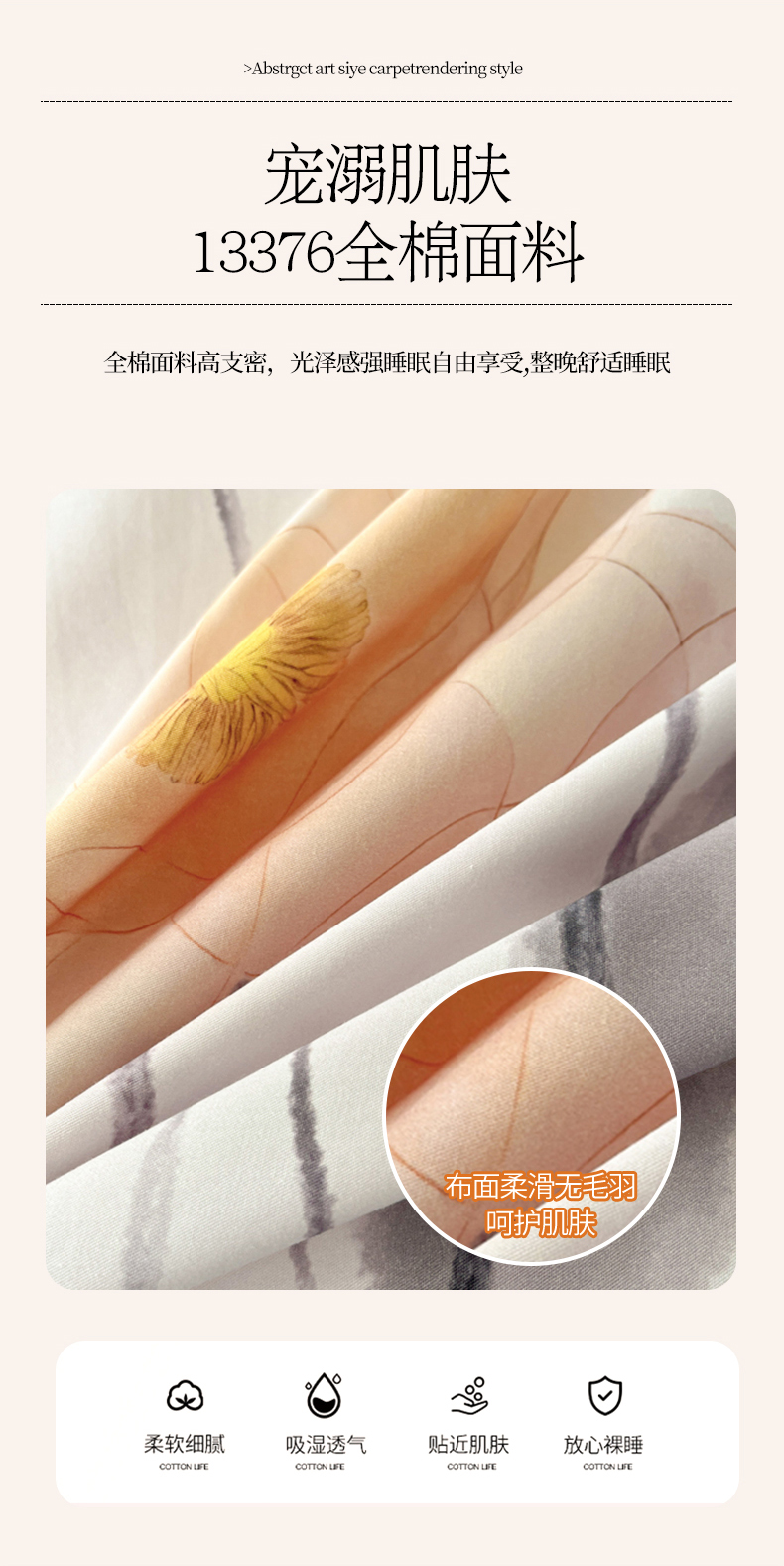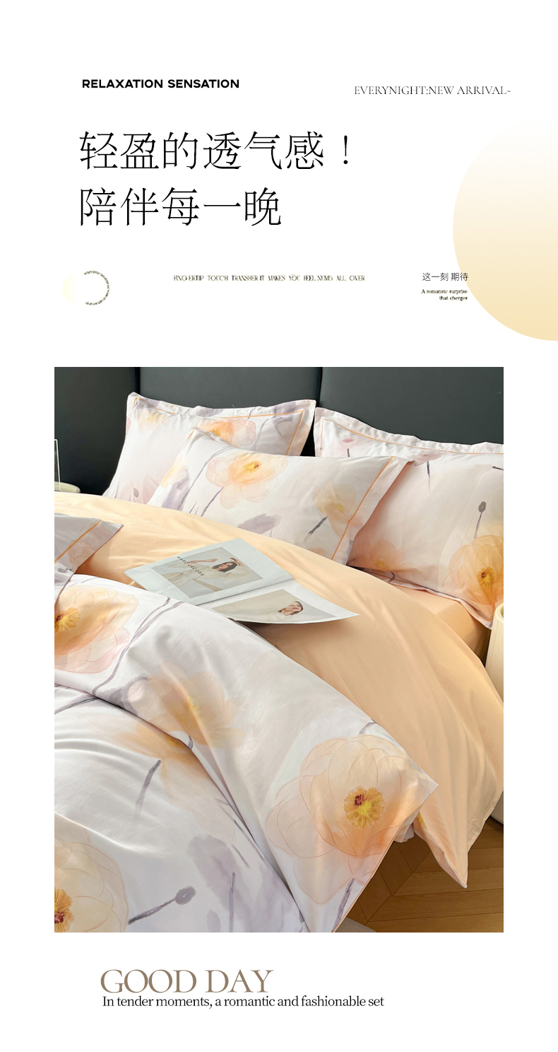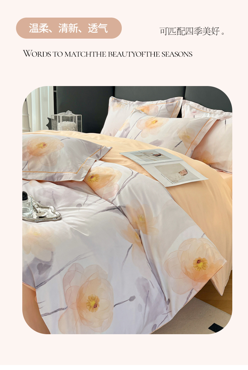 当前位置: 91家纺网 > 商品网购 > 床品套件 > 四件套 > 全棉普通四件套 > 艾迪尚家纺 2026新款133X76宽幅全棉纯棉印花四件套(有单品 可定制) 星荷-桔