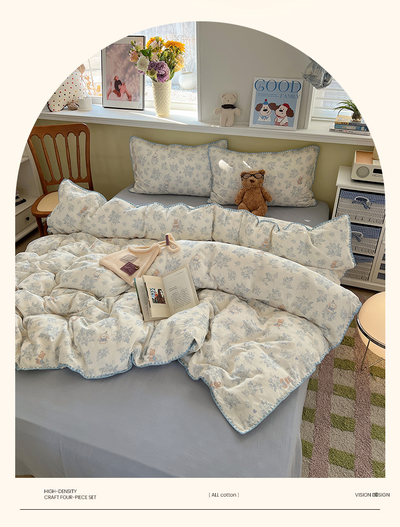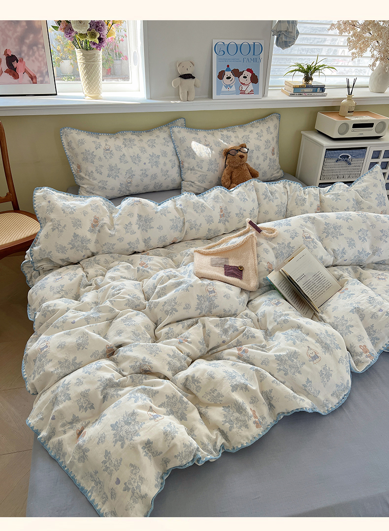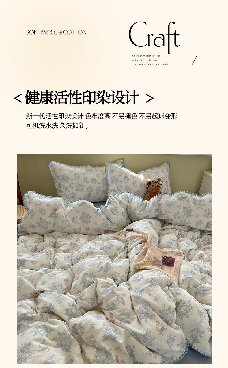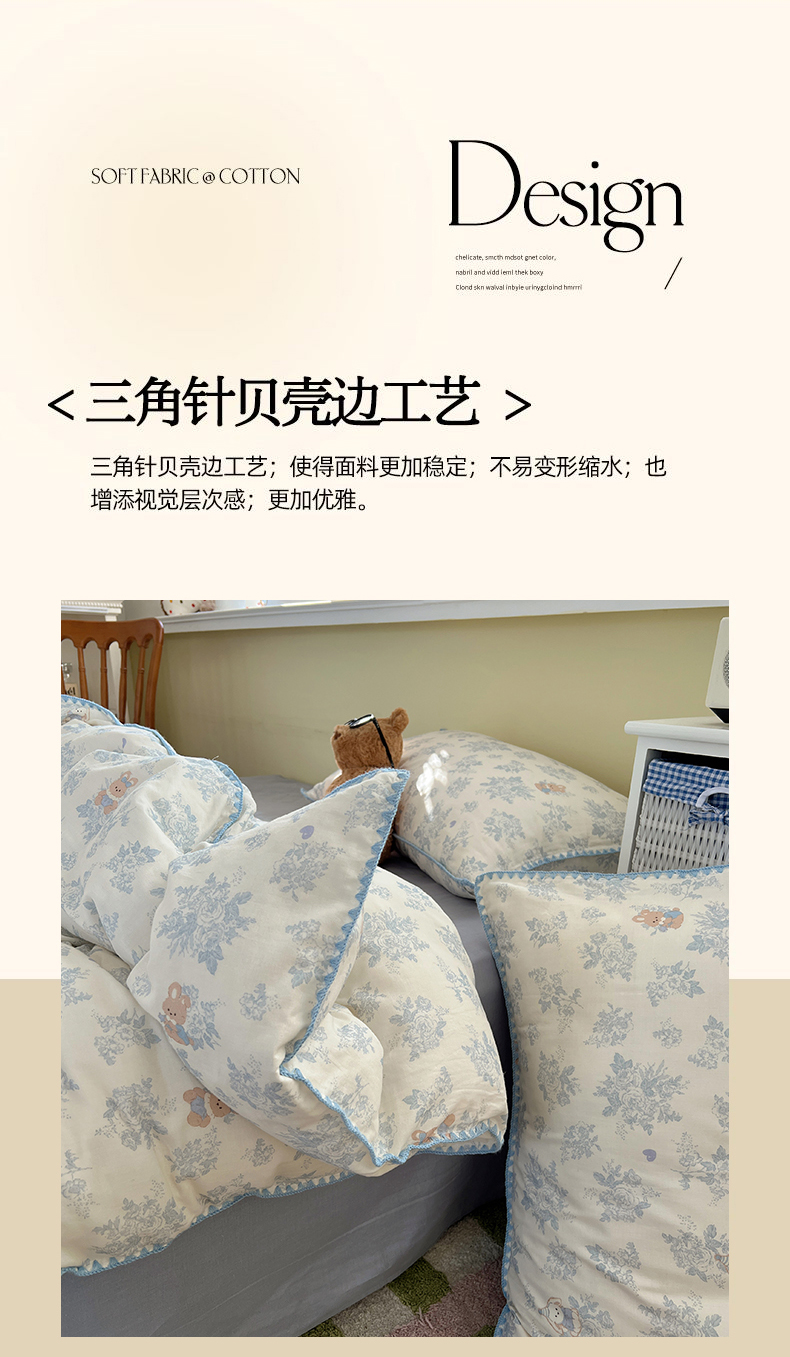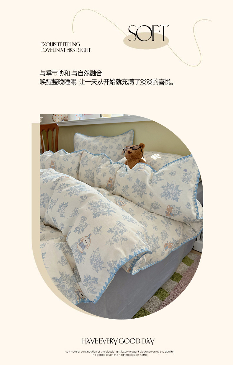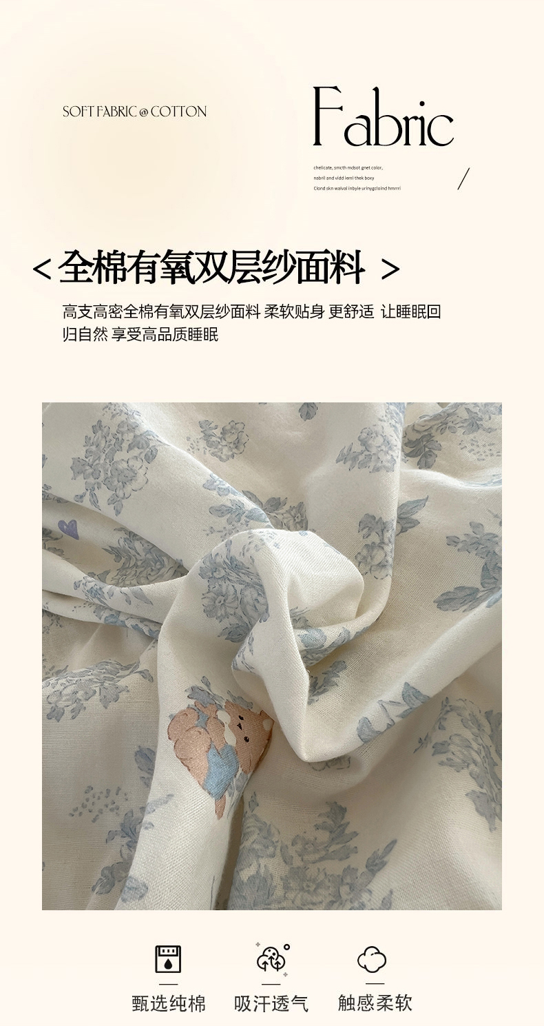 当前位置: 91家纺网 > 商品网购 > 床品套件 > 四件套 > 双层纱四件套 > 曼之夏 2026新款全棉纯棉有氧双层纱贝壳边四件套 贝壳边森林兔