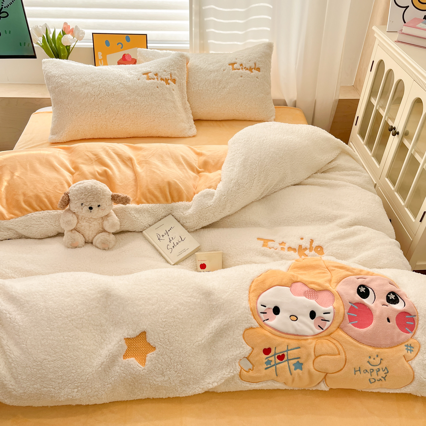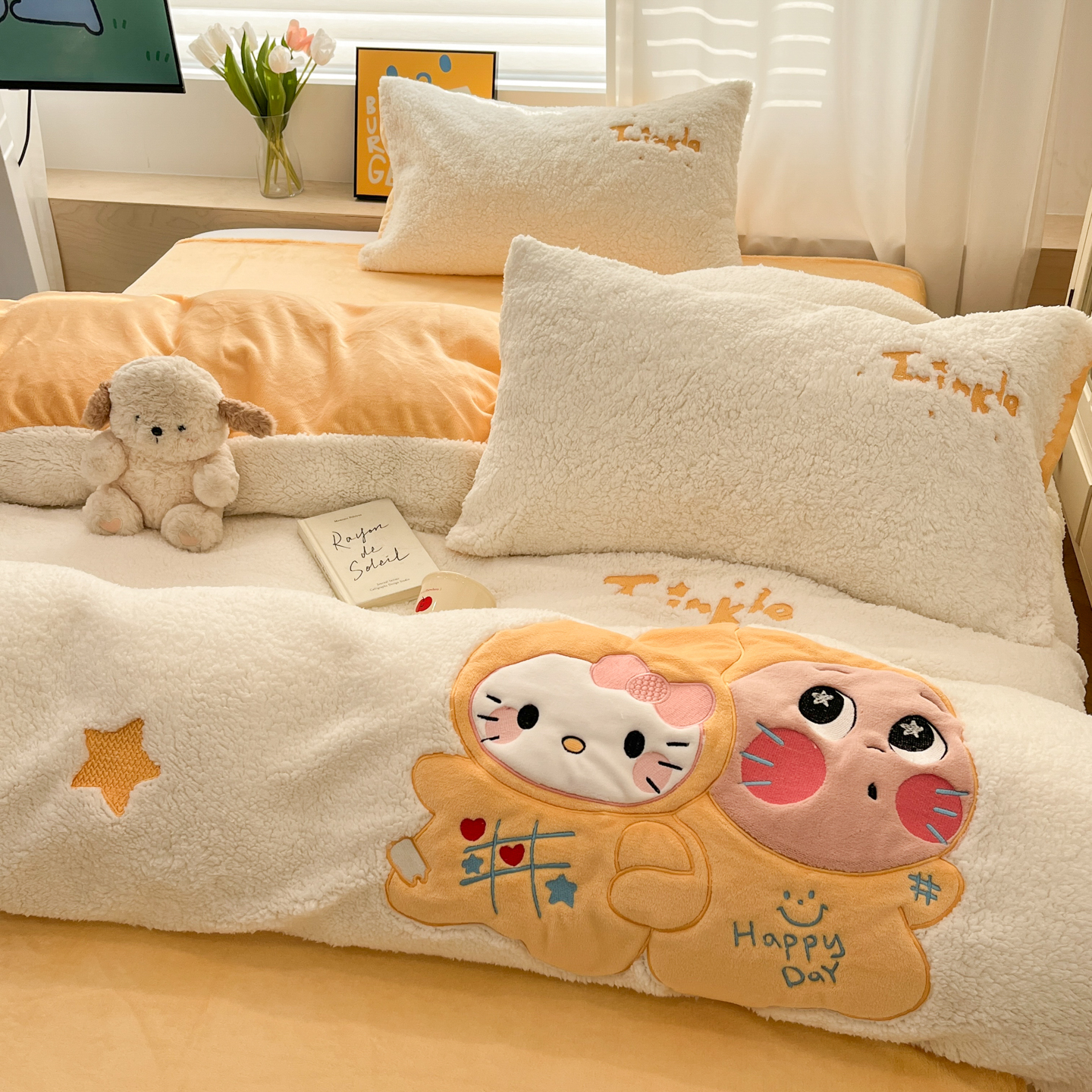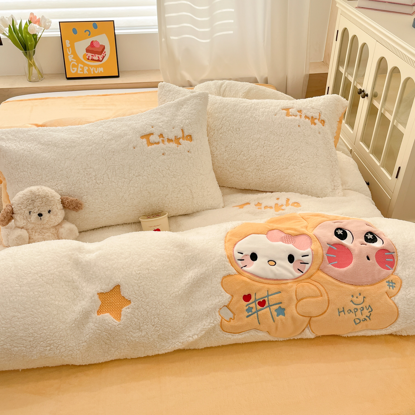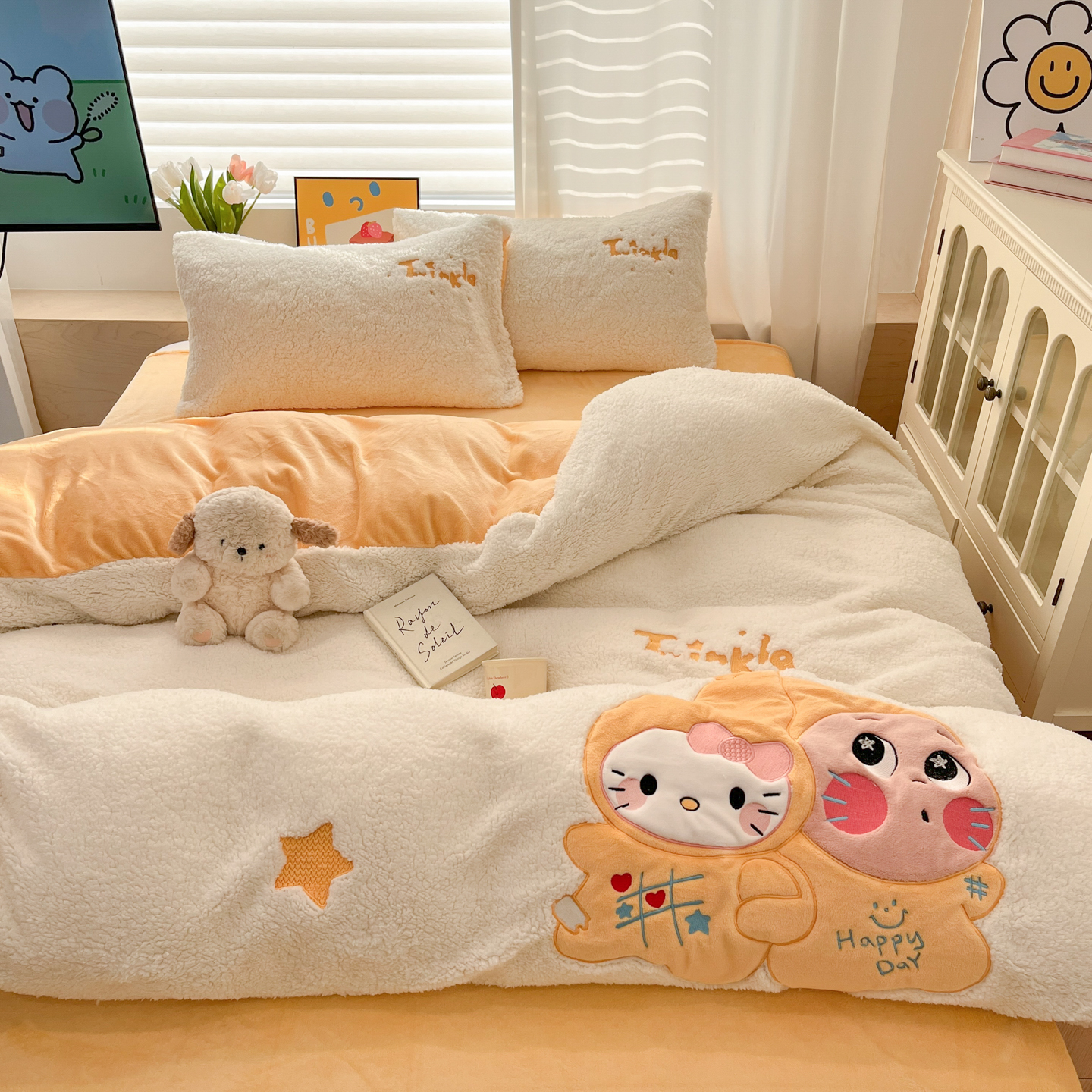 色鬼布艺高端家居主号 2025新款秋冬加厚素色大朵羊驼绒贴布刺绣220g全消光牛奶绒四件套-暖宝 暖宝-黄猫