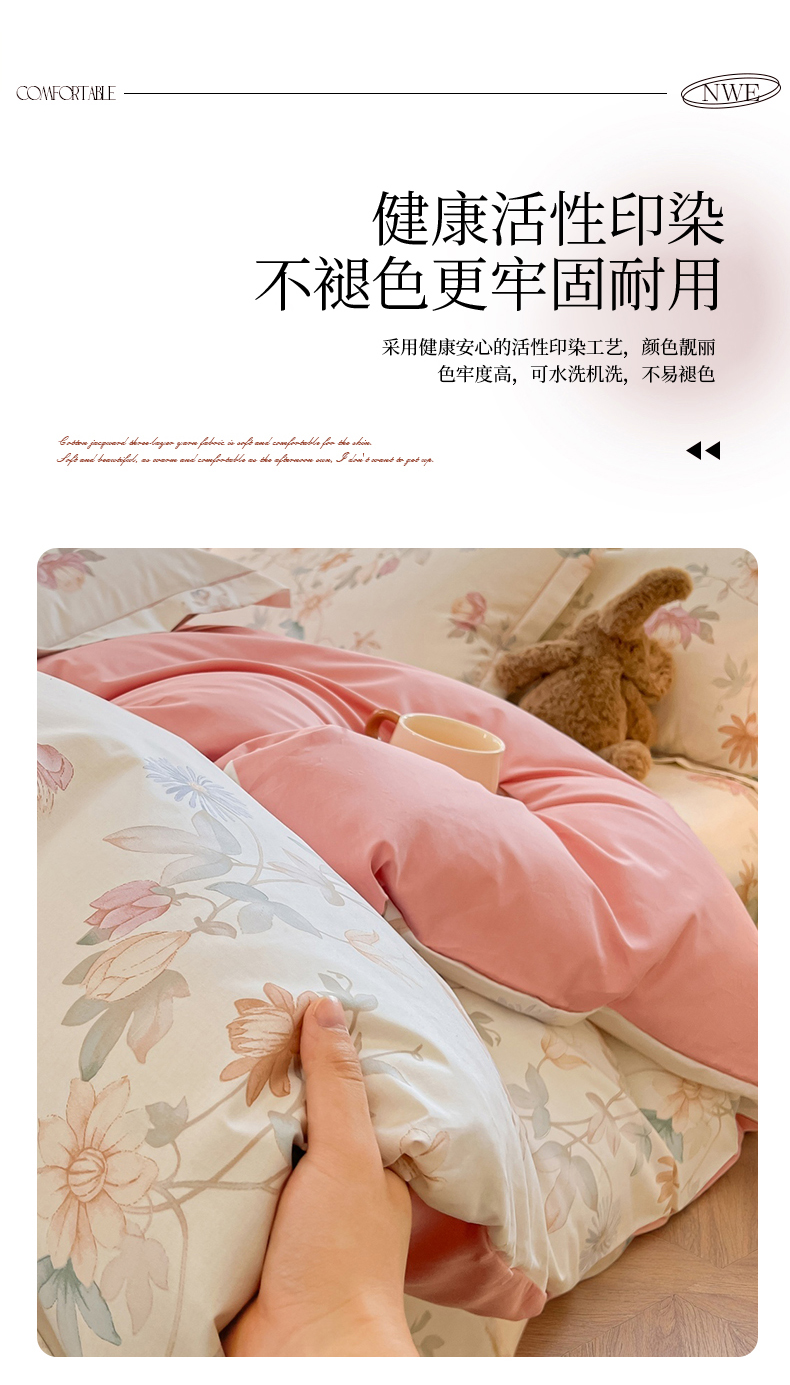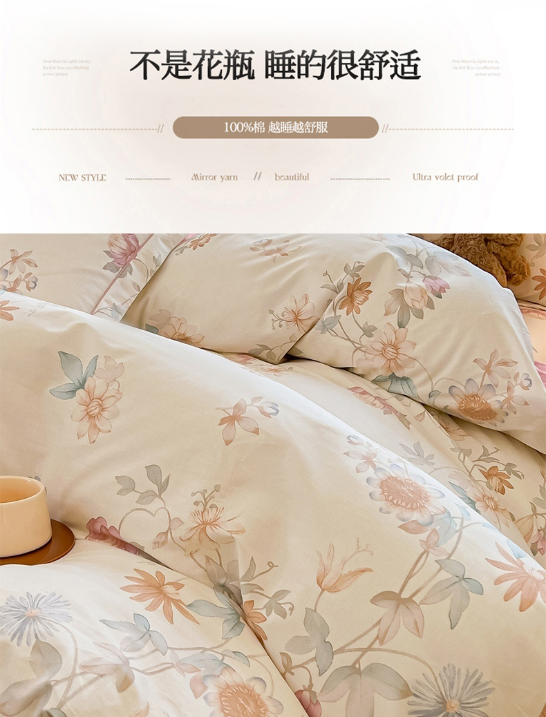 (总)名优家纺 2026新款60S13374高支密全棉印花纯色四件套,宾利兰+浅灰,加仑紫+樱花粉,可可棕+奶黄,莫奈绿+奶黄,奶黄+樱花粉,浅灰,星耀黑+可可棕,樱花粉+浅灰,初简,初见,春日序-紫,洛颜-蓝,念枝,暖冬-桔,软麻-咖,森野花簇-绿,熊派对-米,绣花仙-蓝,絮棠-灰,絮棠-米,与美集,予甜-绿,云璟-紫