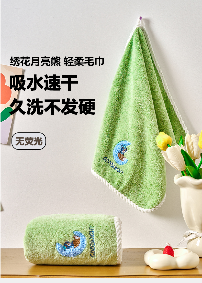 当前位置: 91家纺网 > 商品网购 > 居家日用 > 毛巾/浴巾/浴袍 > 毛巾 > 棠薇家纺 2025新款强吸水毛巾超细纤维速干毛巾运动巾擦手巾-月亮熊 月亮熊绿 75x35cm/条