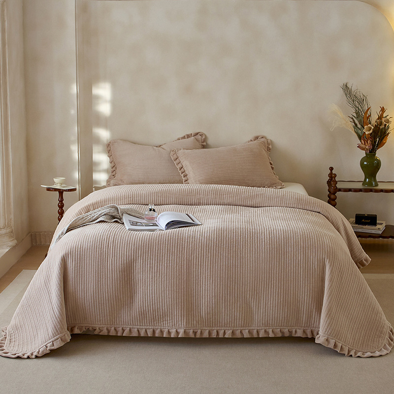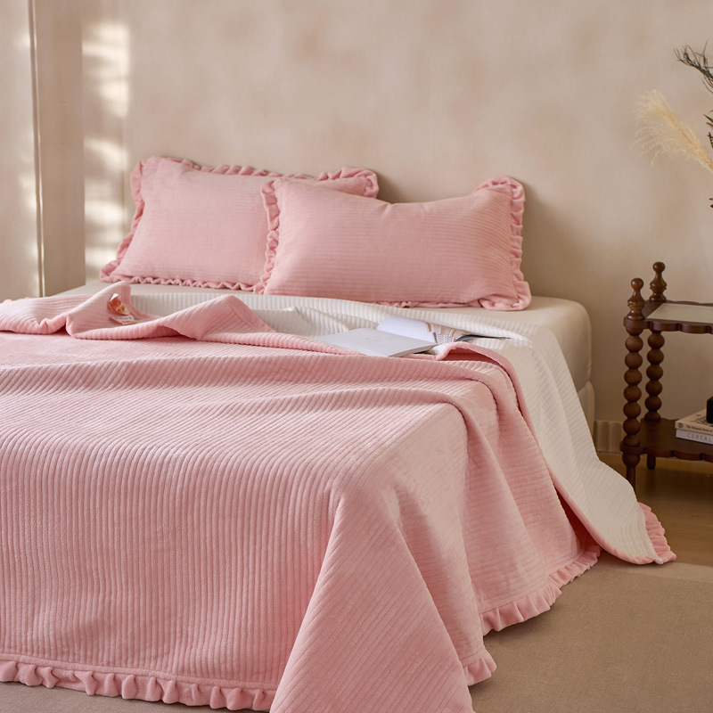 当前位置: 91家纺网 > 商品网购 > 床上用品 > 床盖 > 良品汇馆 2026新款秋冬保暖纯色绒布牛奶绒床盖三件套 桃粉