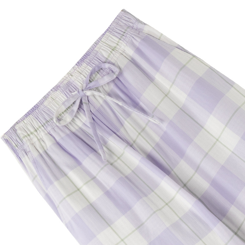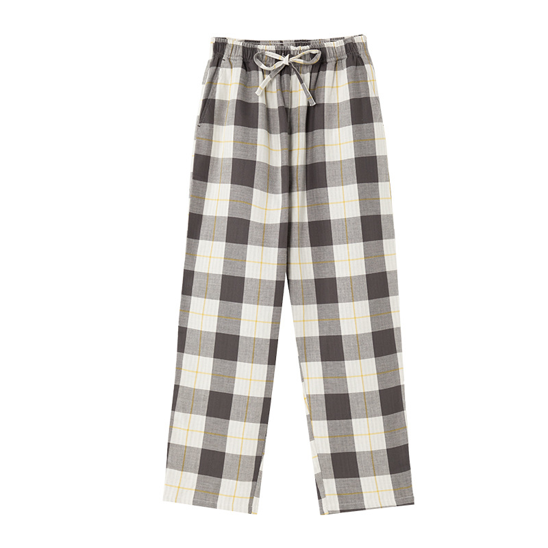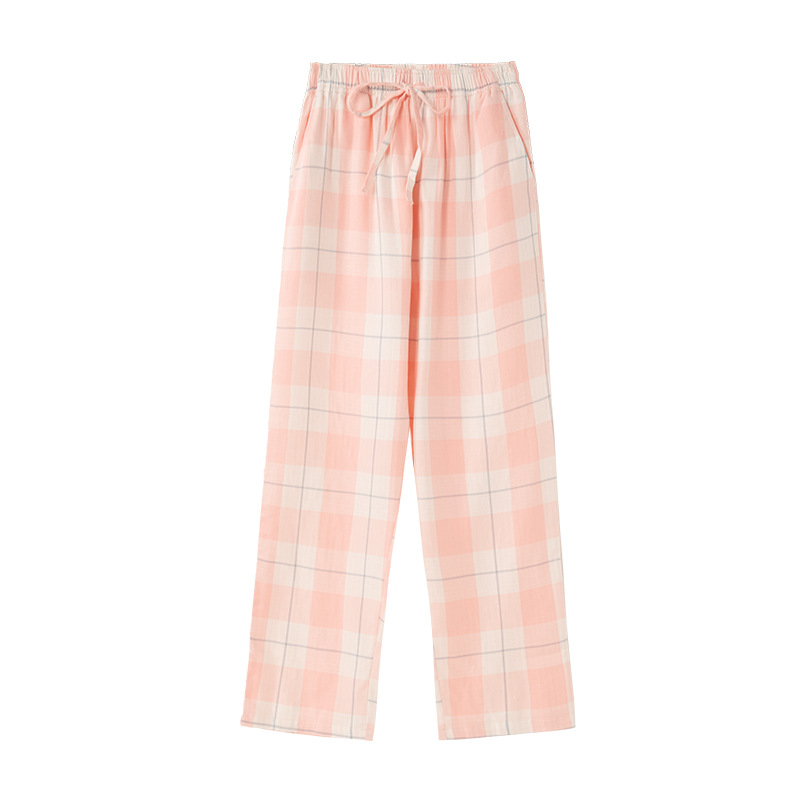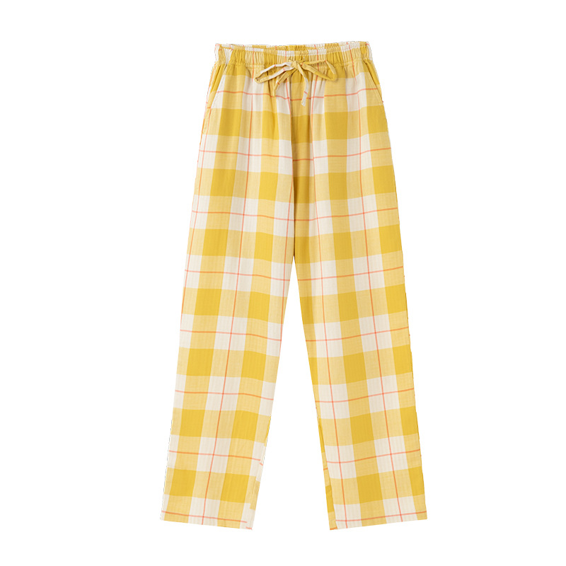 【女士双层纱睡裤】双层纱睡裤良品全棉家居服睡衣裤纯色格纹休闲单长裤,红色格子,黄色格子,紫色格子,绿色格子,紫色纯色,红色纯色,黄色纯色,绿色纯色