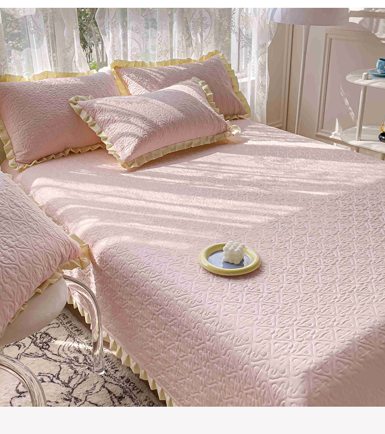 • 91家纺网 家纺一手货源 找家纺 (总)妮可 2026新款全棉纯棉绗缝多功能四季款荷叶边单床盖床盖单件单品床盖,春日粉,奶黄色,浅水蓝,青草绿,轻奢灰,组合图仅供展示不可下单