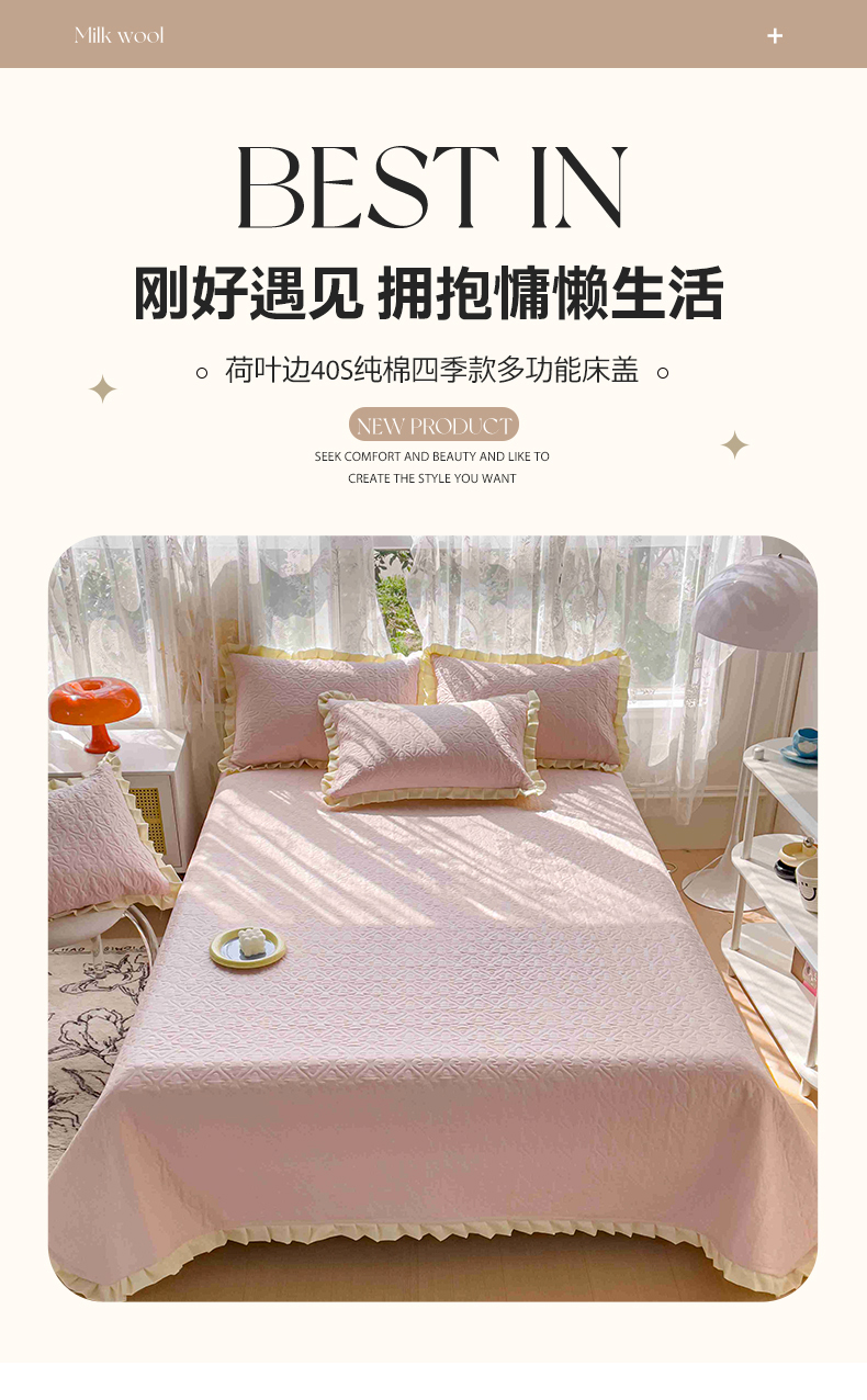 • 91家纺网 家纺一手货源 找家纺 妮可 2026新款全棉纯棉绗缝多功能四季款荷叶边单床盖床盖单件单品床盖 组合图仅供展示不可下单