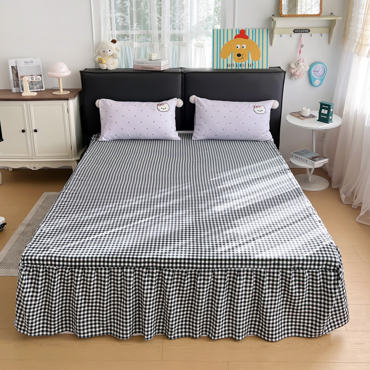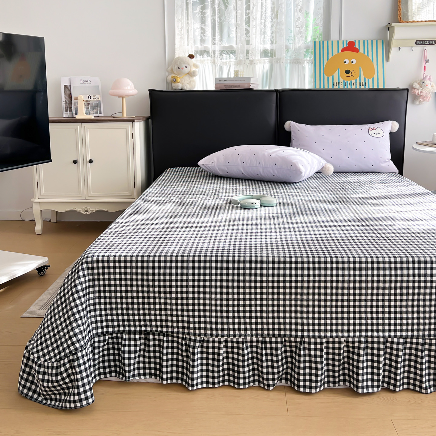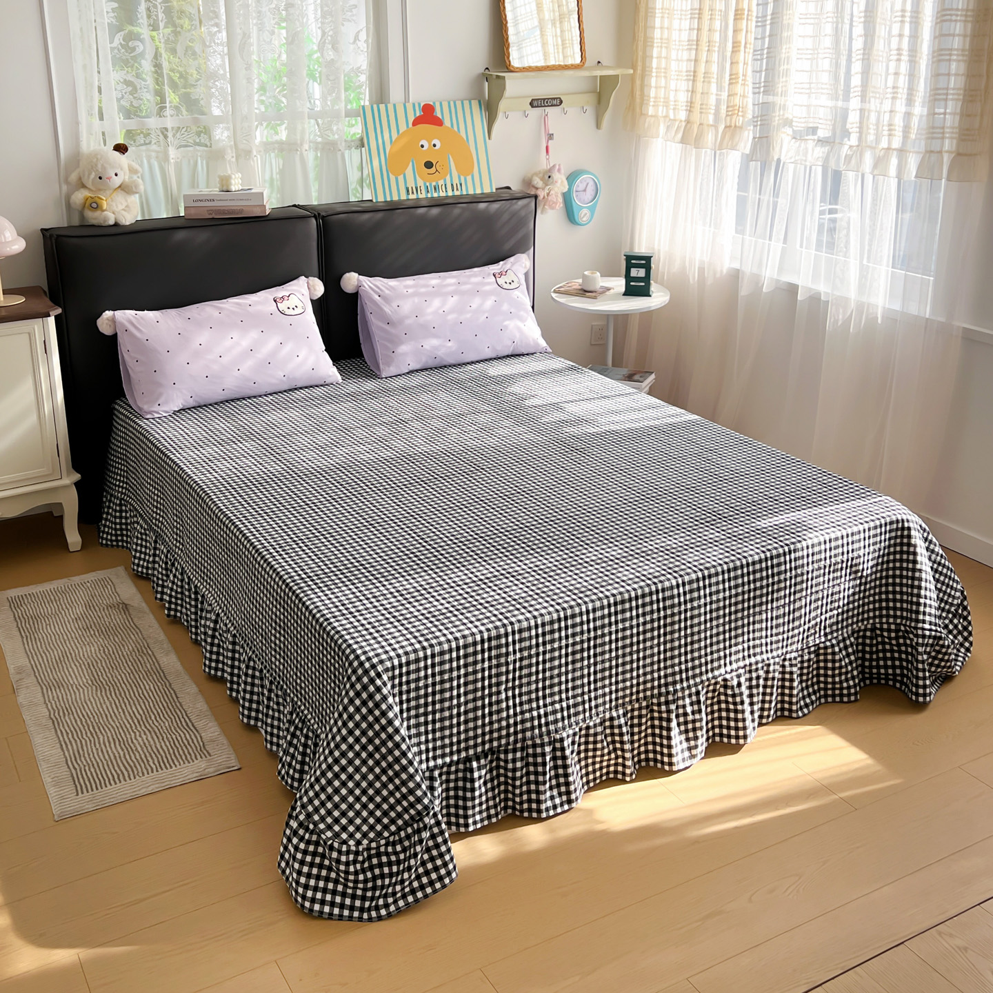 当前位置: 91家纺网 > 商品网购 > 床品套件 > 三件套 > 富米莱单品馆 2026新款水洗棉波点毛巾绣黑格球球款单品 幸福猫咪-紫