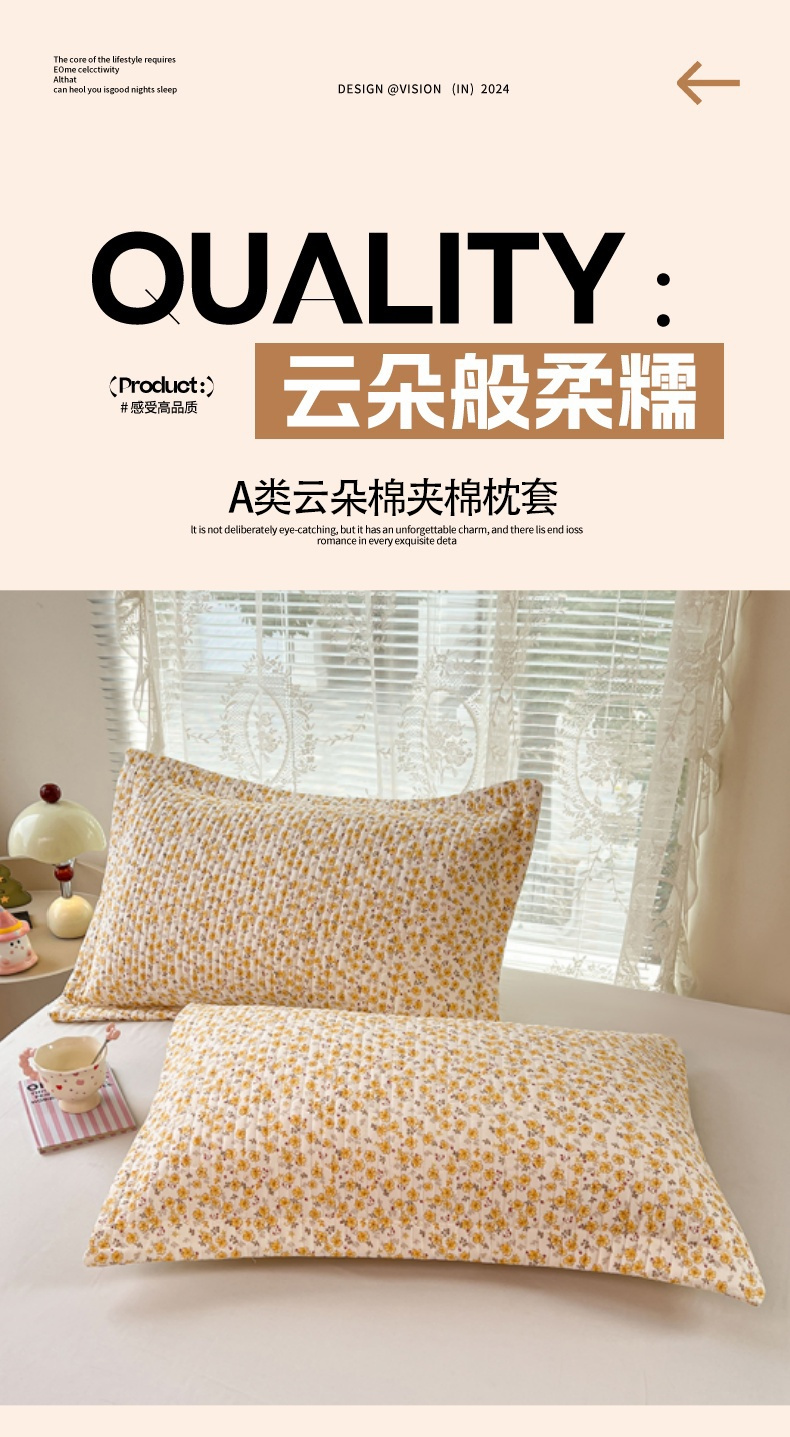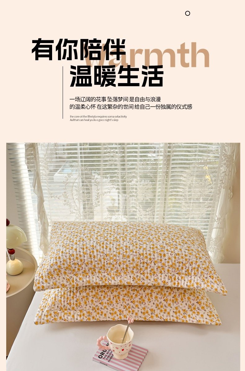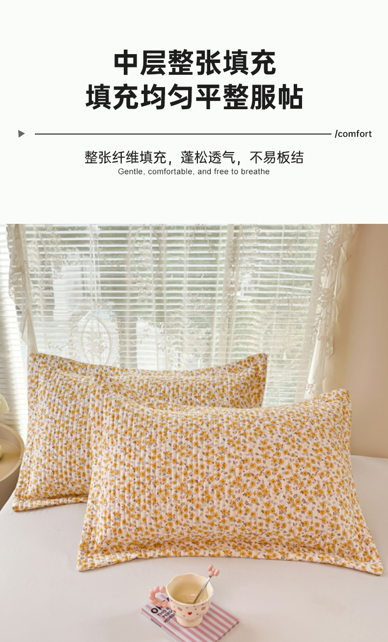 • 91家纺网 家纺一手货源 找家纺 梦舒羽 2025新款A类云朵棉夹棉枕套宿舍单人一只装枕芯内胆套-单人枕套 春日暖阳(压线夹棉)