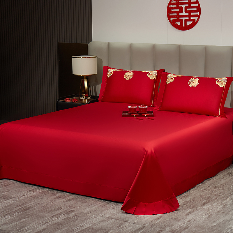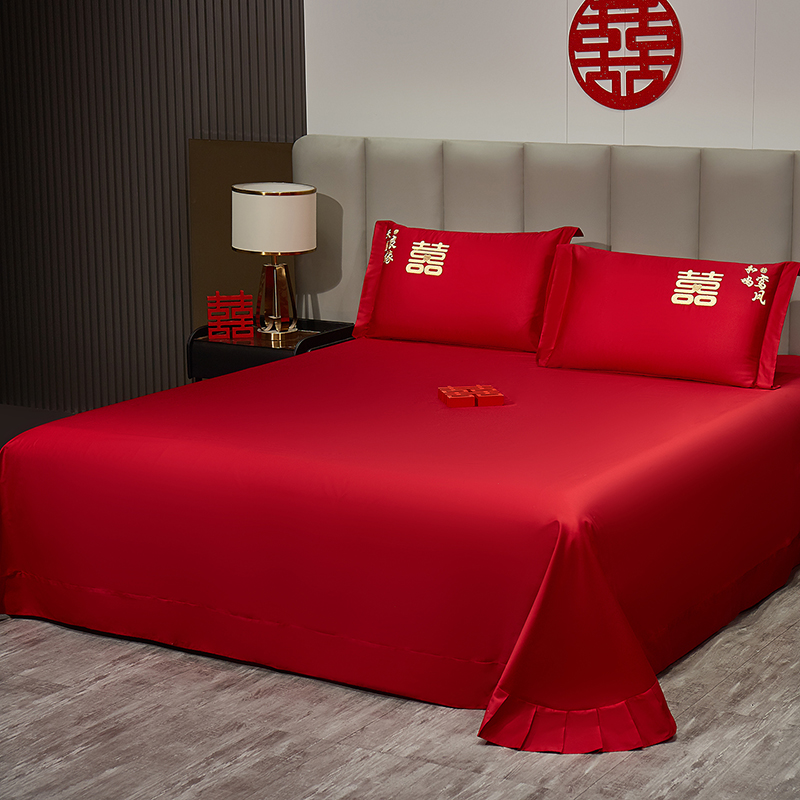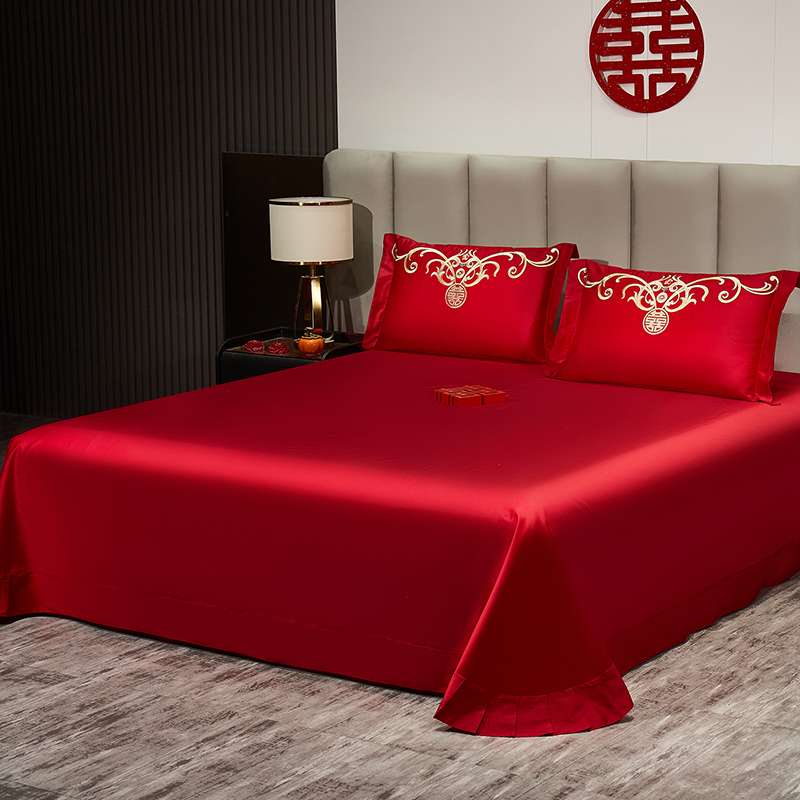 床上用品 > 床单 > 浩情国际婚庆供货中心 2026新款长绒棉100%纯棉全棉结婚刺绣婚庆床单单件绣花纯色三件套单品婚庆枕套长期供货 提供买家秀 方垫