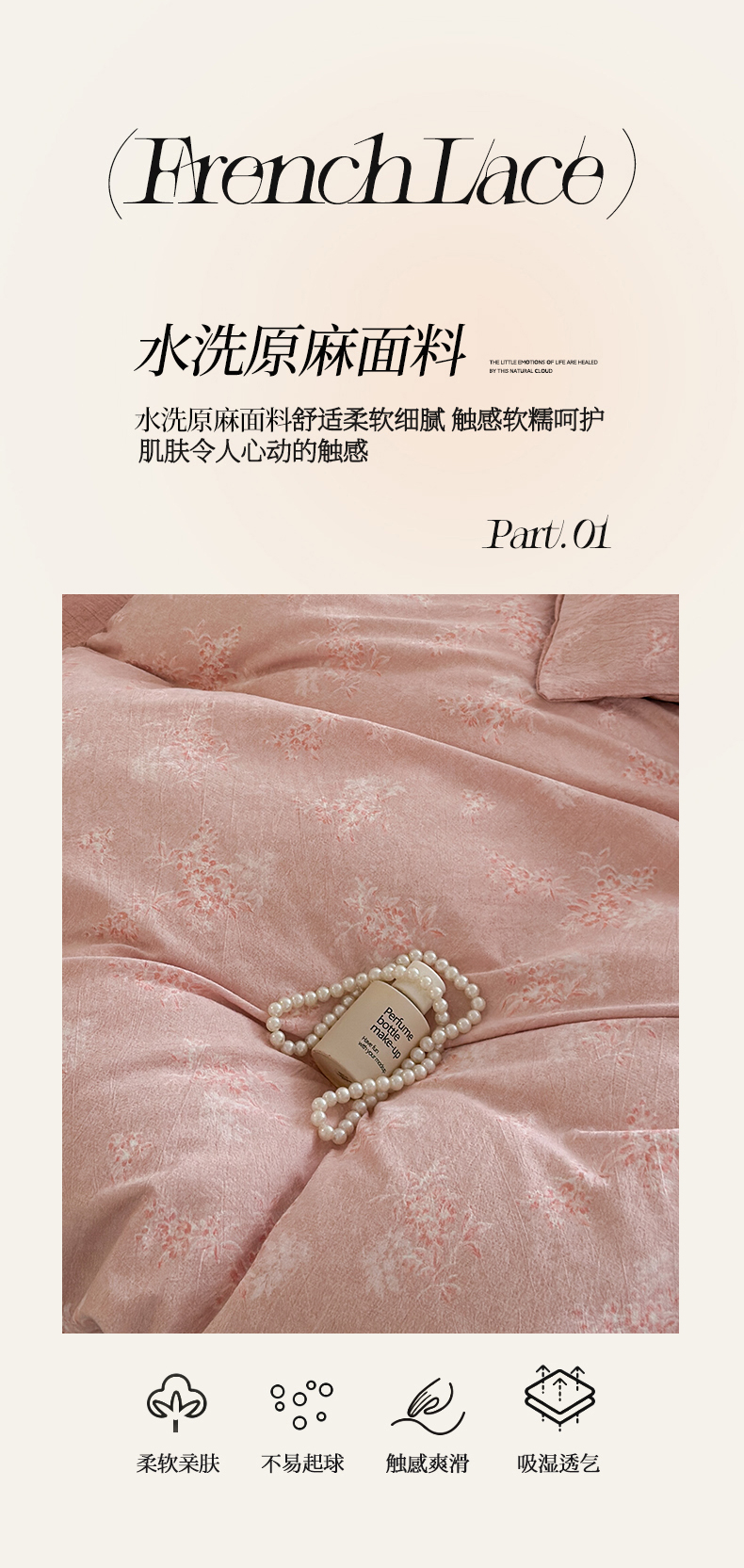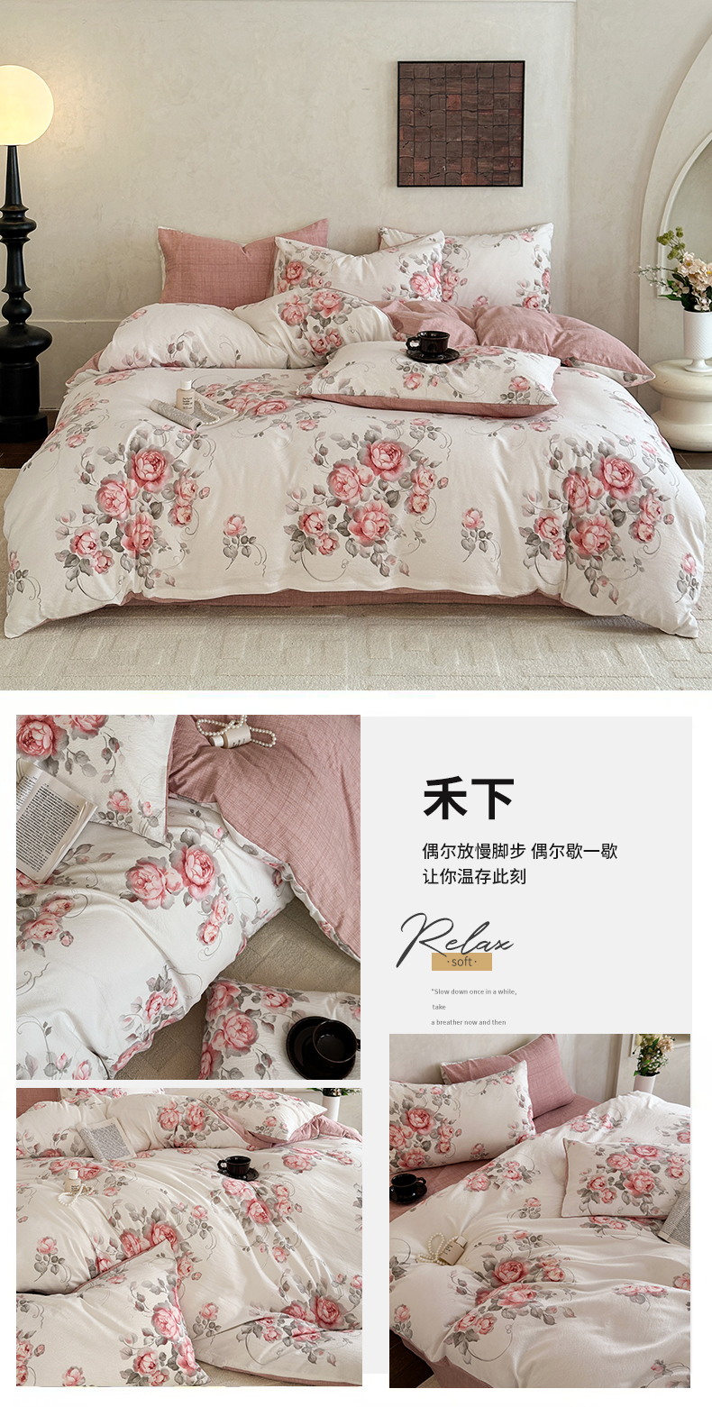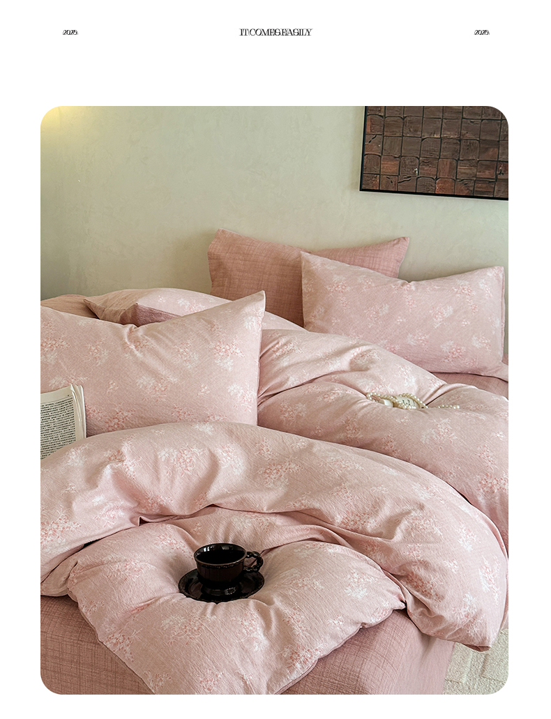 当前位置: 91家纺网 > 商品网购 > 床品套件 > 四件套 > 水洗棉四件套 > 桔禾家纺 2026新款提花高克重原麻复古水洗亚麻皱皱纱印花四件套 汐月