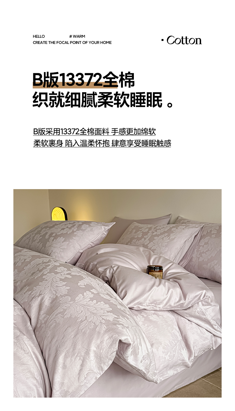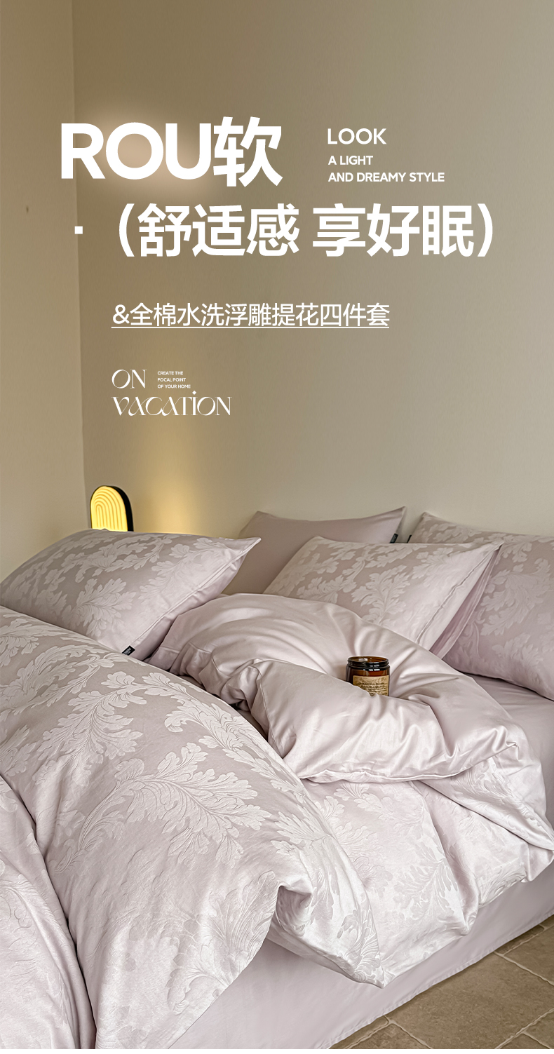 商品名称:如一 2026新款60S全棉水洗提花立体厚织浮雕四件套 香草-淡雅紫
