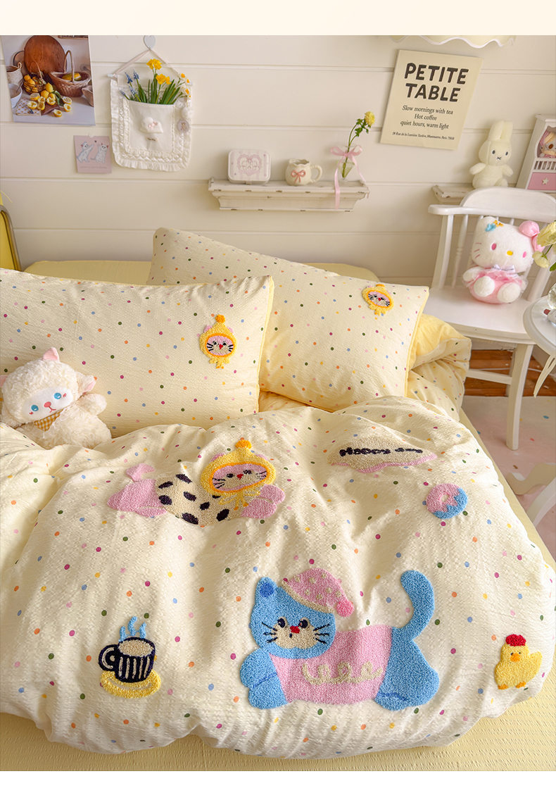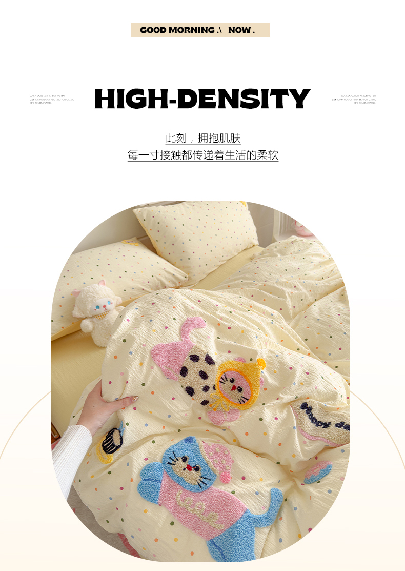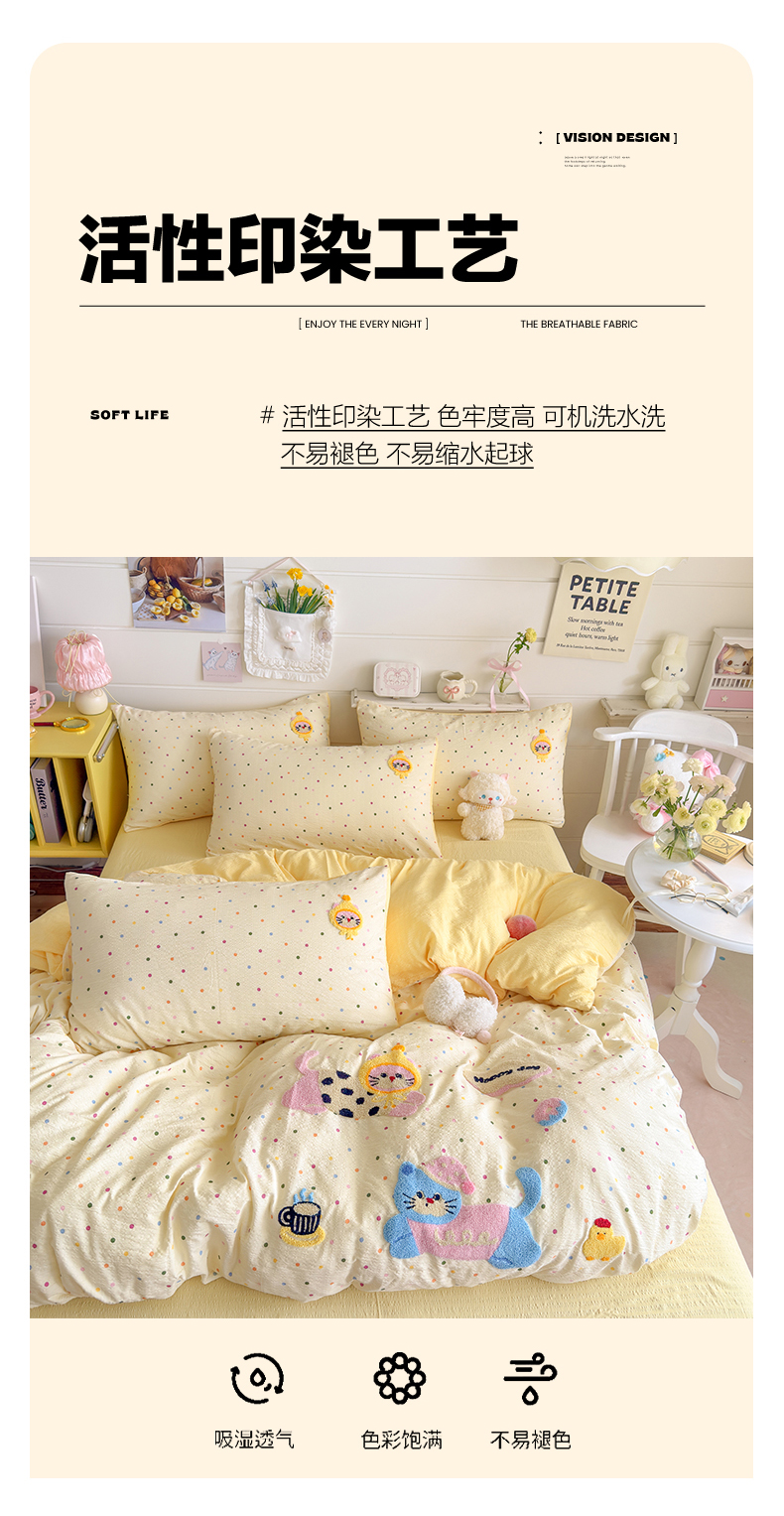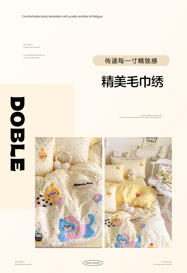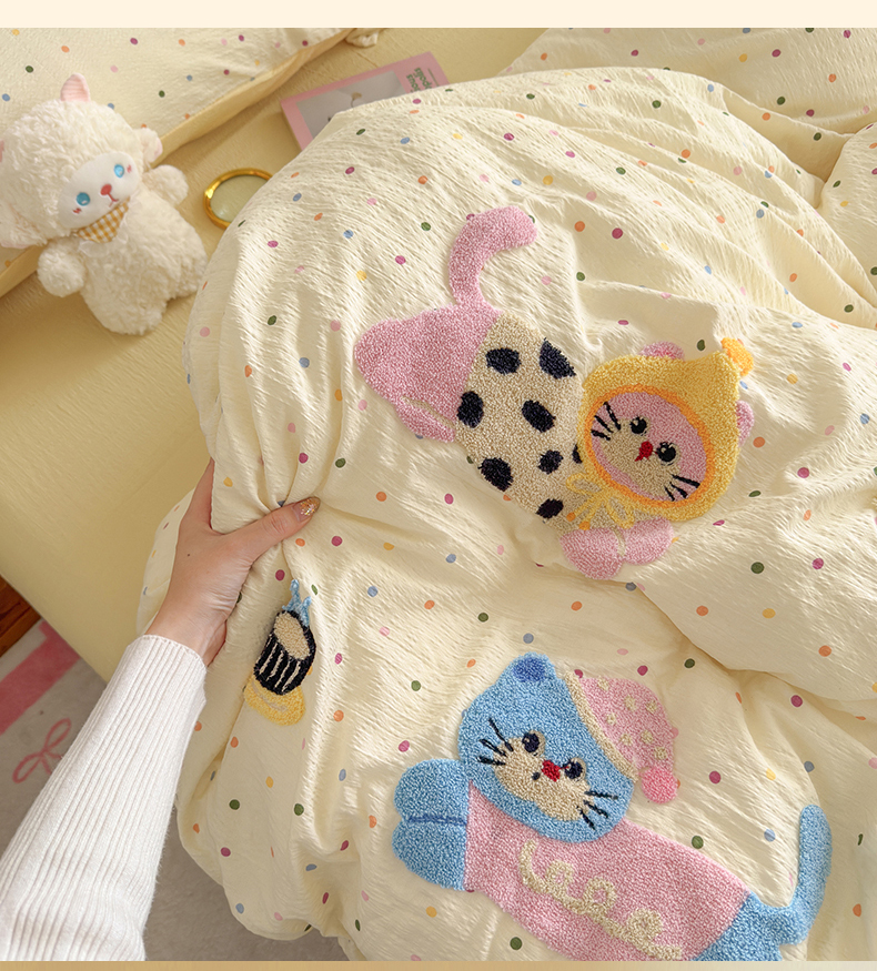 当前位置: 91家纺网 > 商品网购 > 床品套件 > 四件套 > 其它四件套 > 卡斯诺家纺馆 2026新款皱皱棉双层纱毛巾绣四件套(下载文件包含买家秀) 快乐猫咪