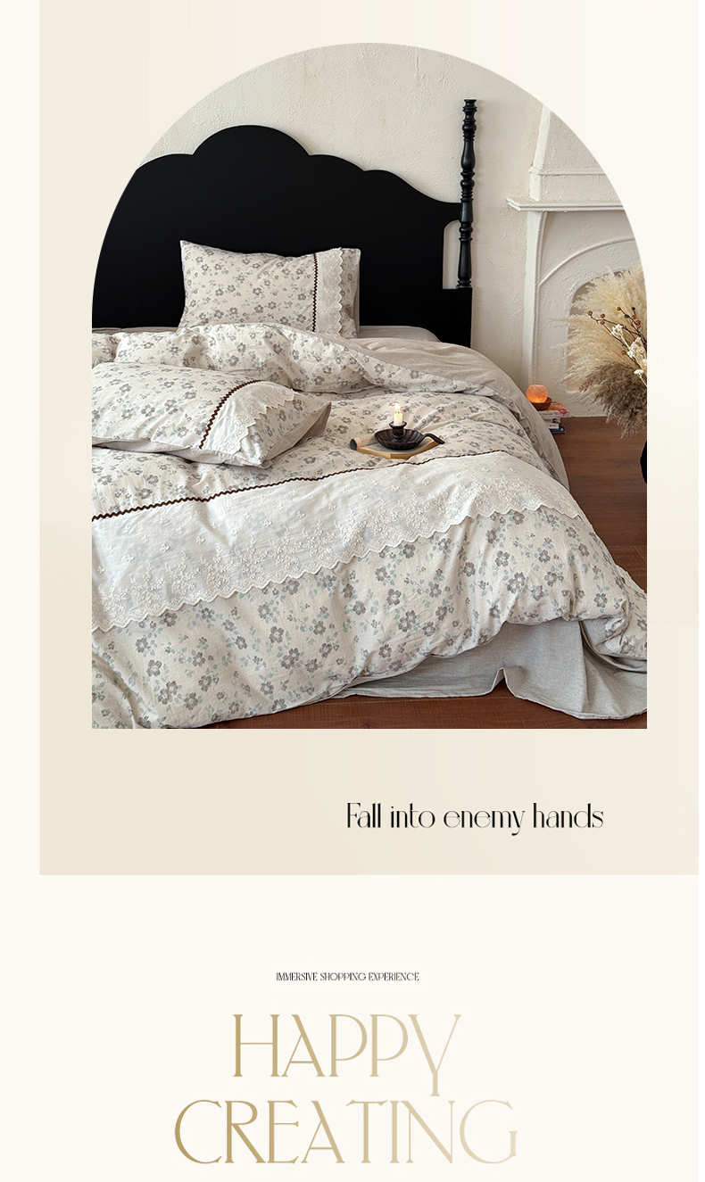 (总)淑女公社家纺 2026新款法式立体蝴蝶花边棉麻四件套,花香满园 绿,秋棠 红,时雨 咖,晚枝 红
