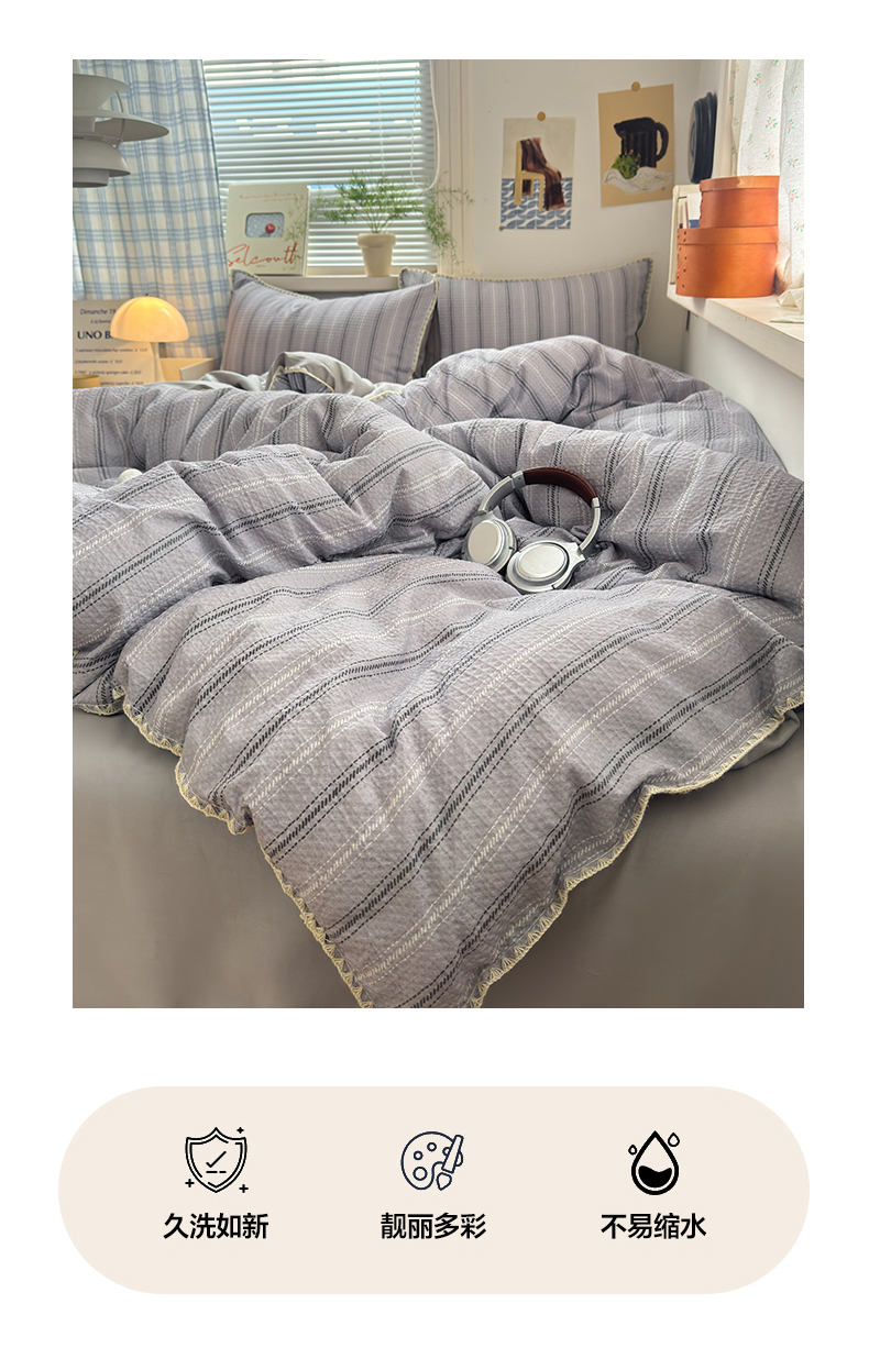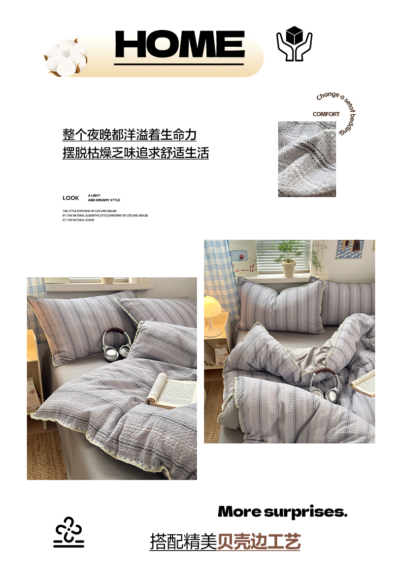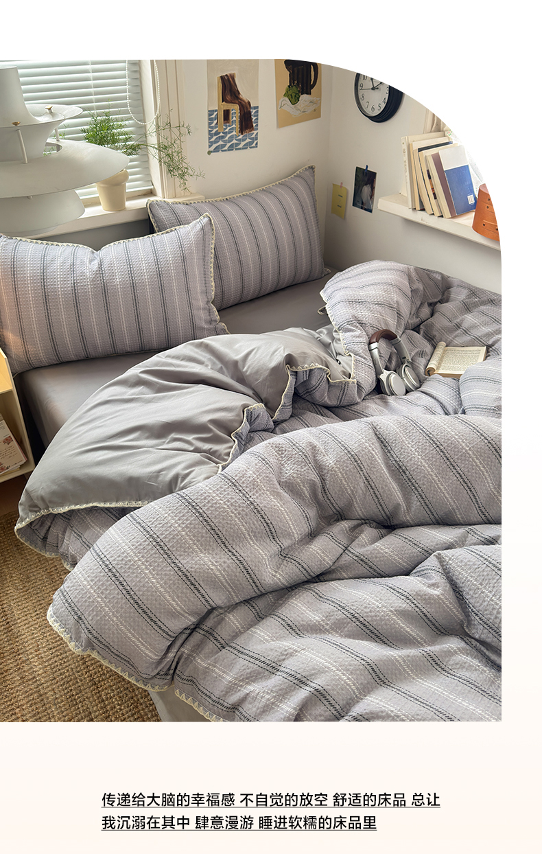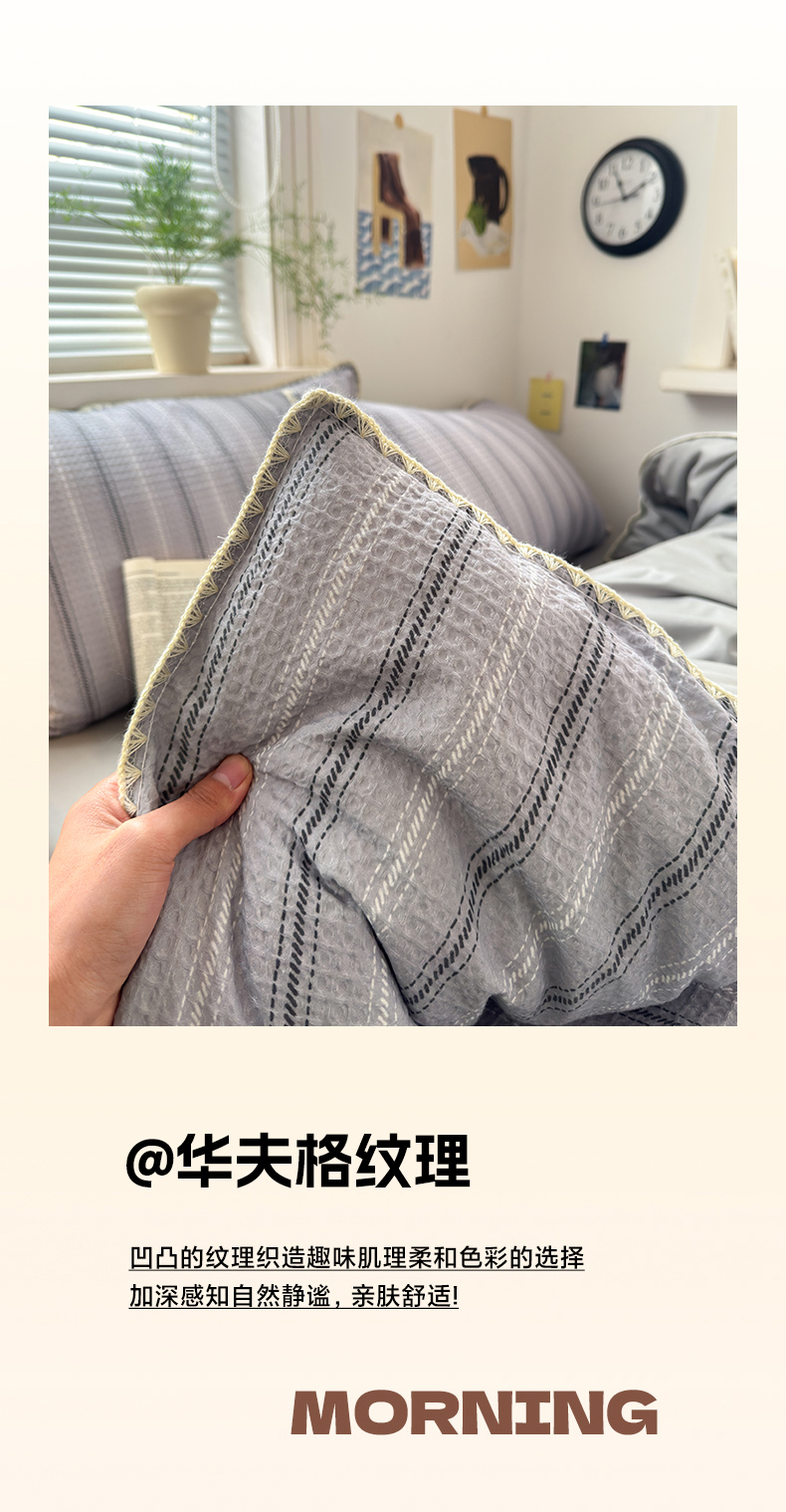 商品名称:曼之夏 2026新款A类全棉华夫格提花贝壳边四件套 派克-灰