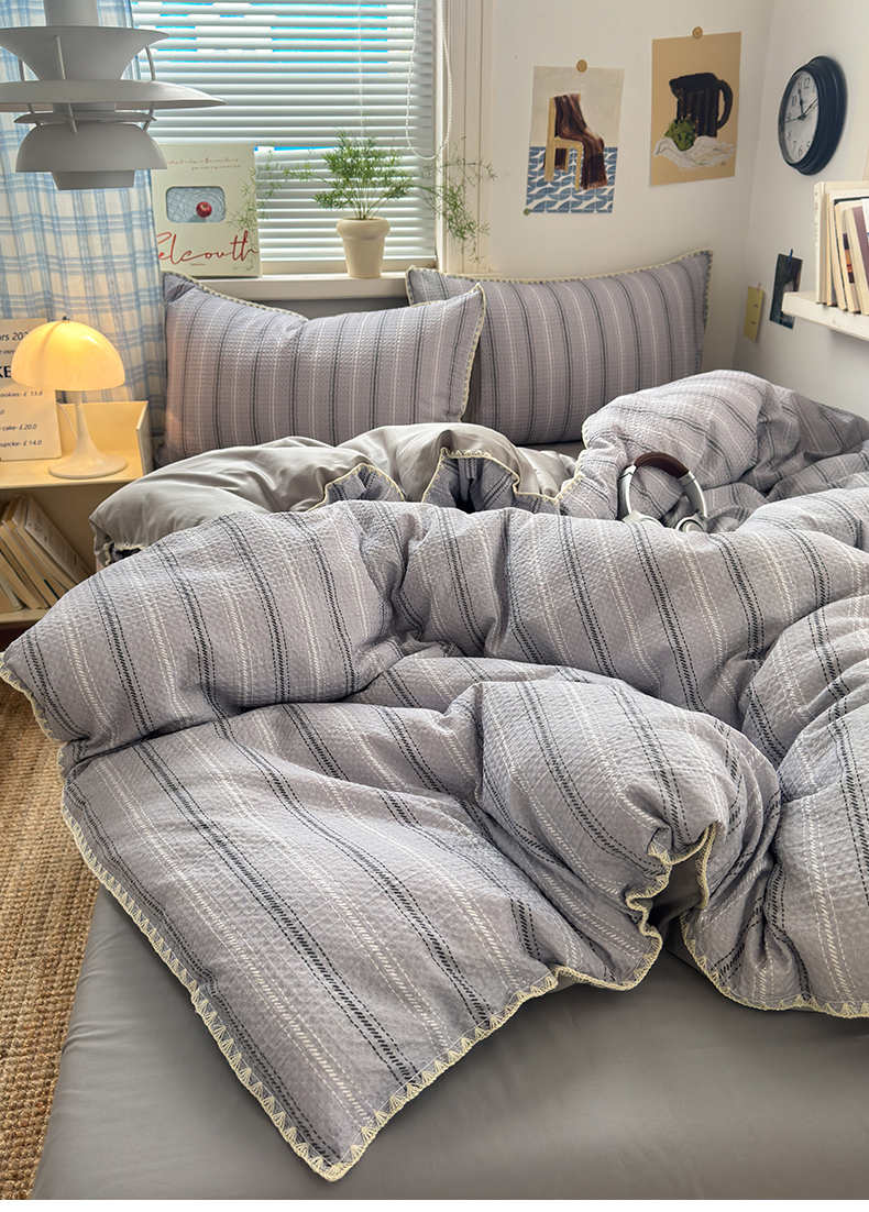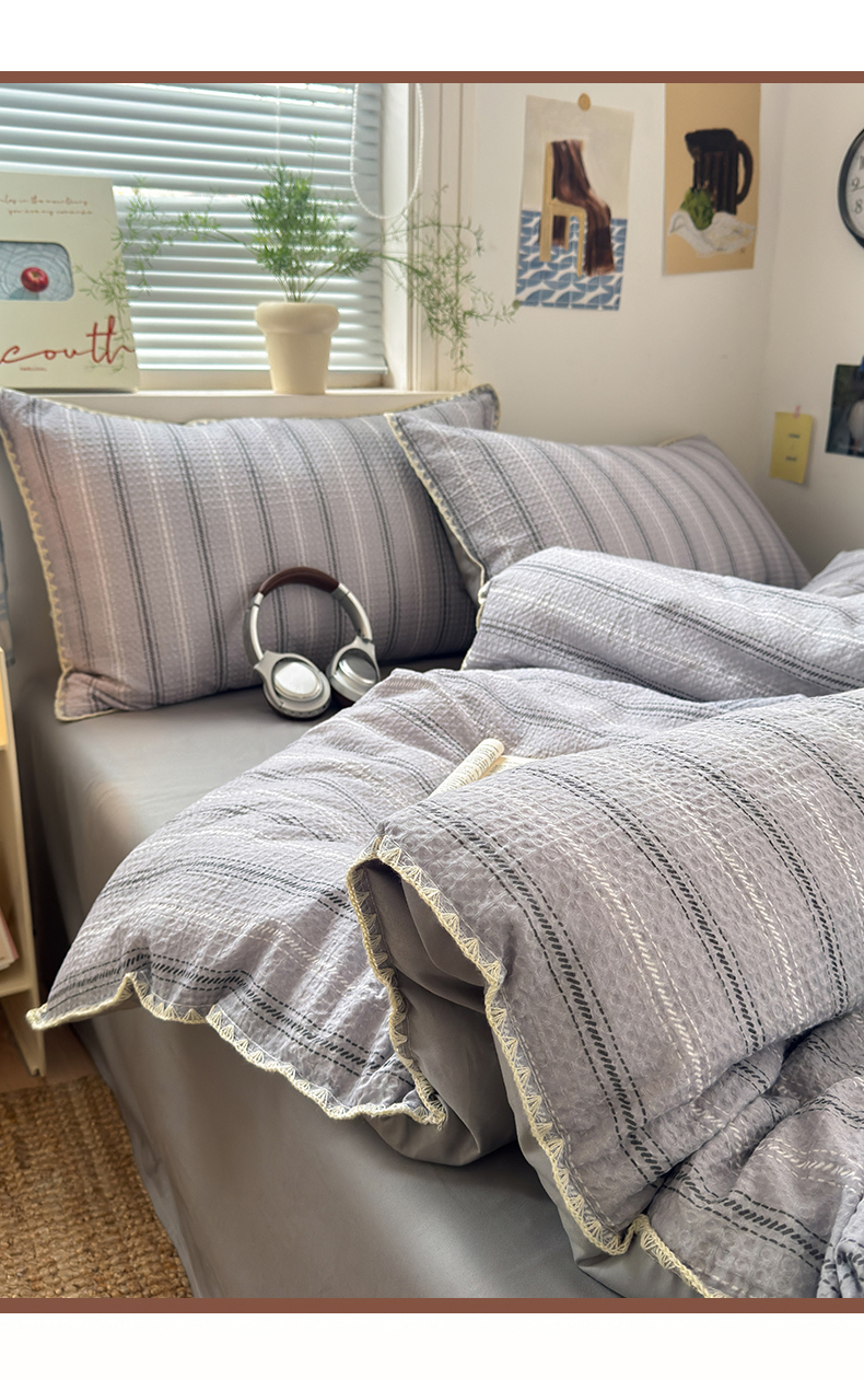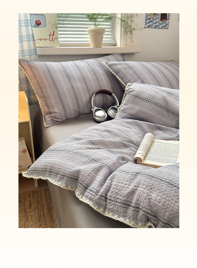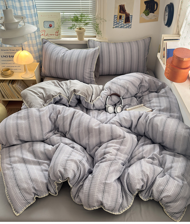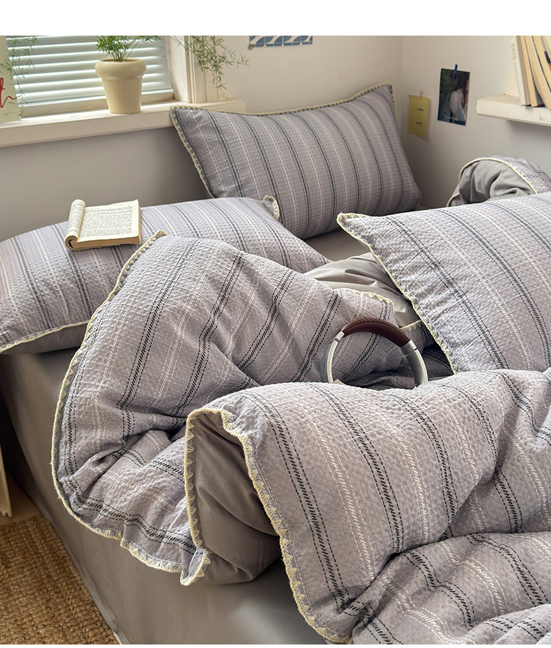 商品名称:曼之夏 2026新款A类全棉华夫格提花贝壳边四件套 派克-灰