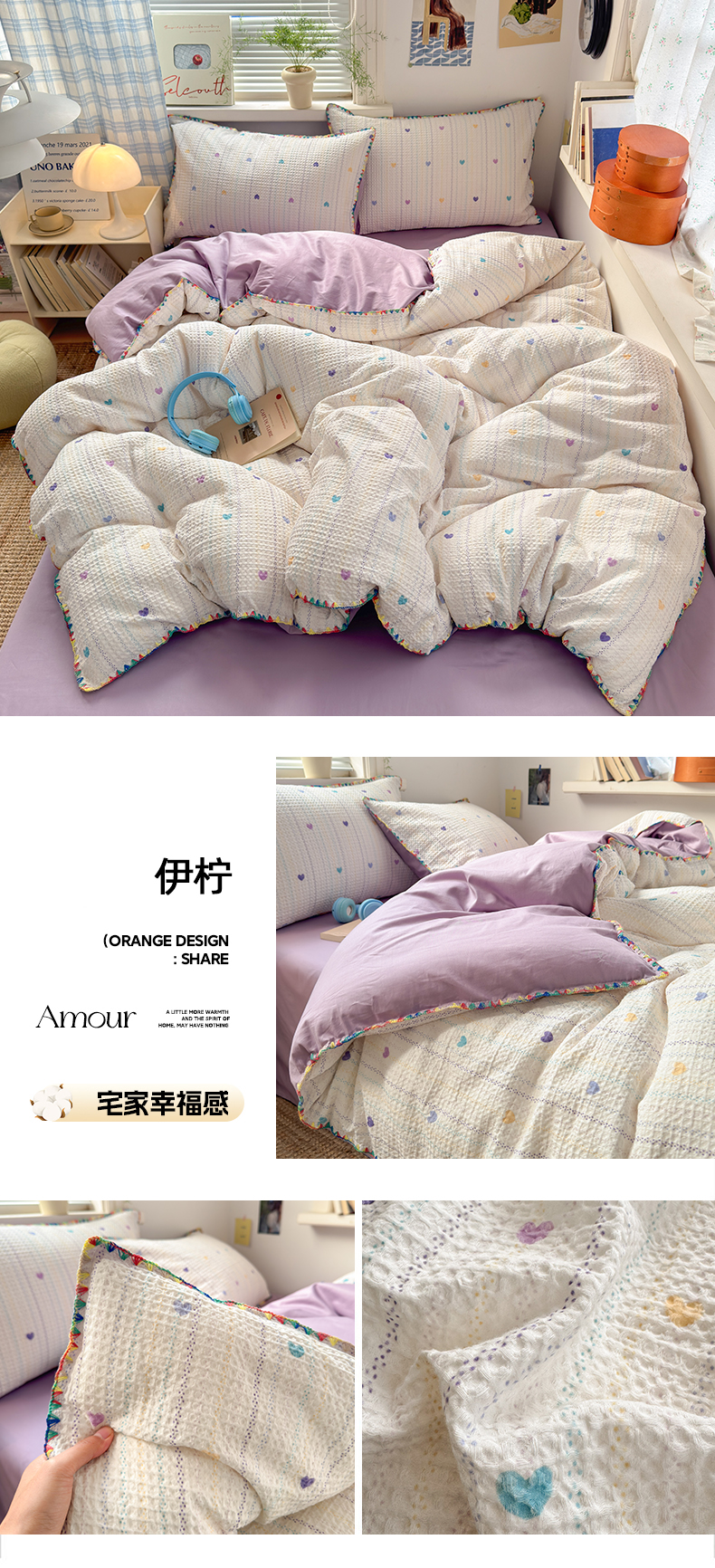 (总)曼之夏 2026新款A类全棉华夫格提花贝壳边四件套,风月-兰,光遇,简森-兰,卡布-白,萌动时光-咖,派克-灰,伊柠,云梦星河-兰