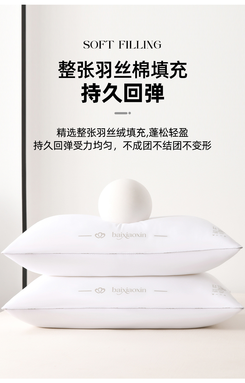 商品名称:(总)织布人 2026新款枕芯亲肤磨毛整张羽丝棉白小芯酒店软枕学生成人家用枕头