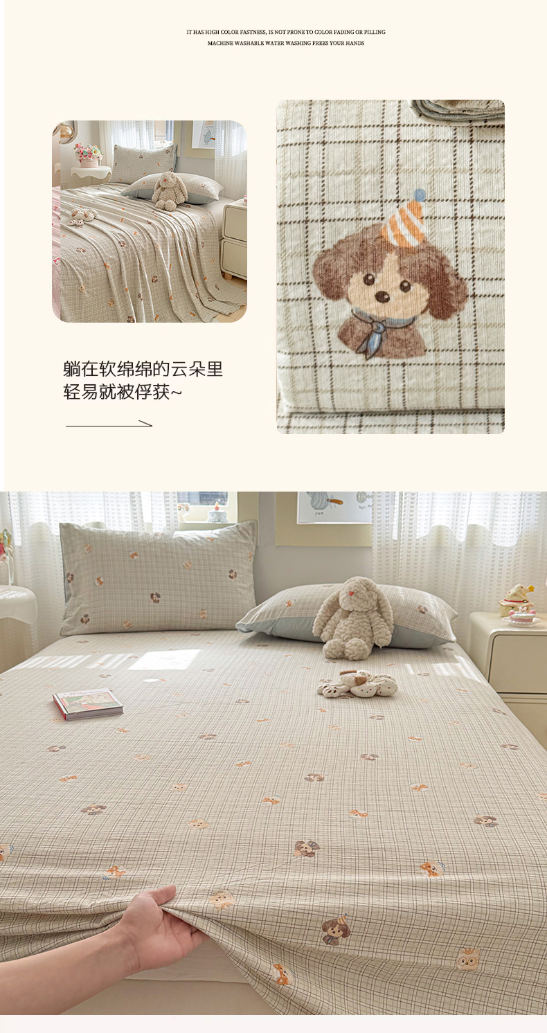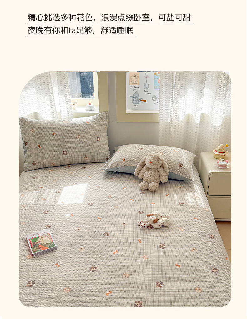 (总)丽美人家纺 2026新款双层皱皱纱大豆夹棉床笠单床笠床笠单件,JM花开漫漫,JM贝拉,JM布兰卡,JM粉格猫咪,JM格仔萌宠,JM可爱小狗,JM腊肠狗,JM乐园,JM玛丽,JM时光,JM月境骑踪,JM紫雾叶兔
