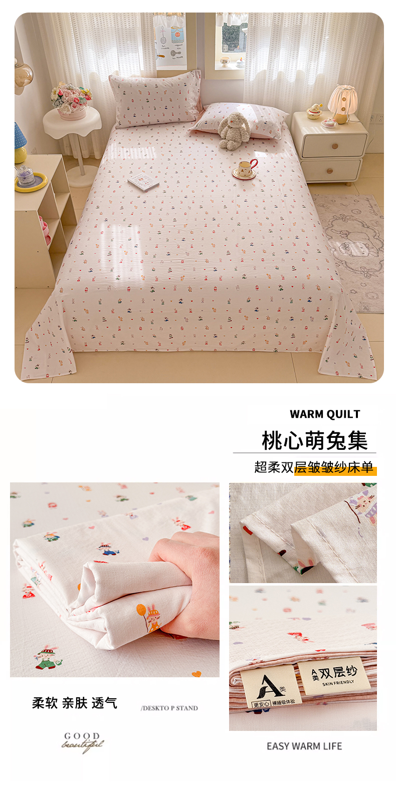 当前位置: 91家纺网 > 商品网购 > 床上用品 > 床单 > 丽美人家纺 2026新款A类皱皱双层纱印花单床单床单单件 格仔萌宠