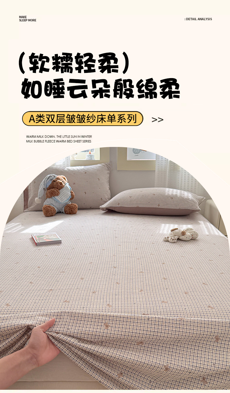 (总)丽美人家纺 2026新款双层皱皱纱大豆夹棉床笠单床笠床笠单件,JM花开漫漫,JM贝拉,JM布兰卡,JM粉格猫咪,JM格仔萌宠,JM可爱小狗,JM腊肠狗,JM乐园,JM玛丽,JM时光,JM月境骑踪,JM紫雾叶兔