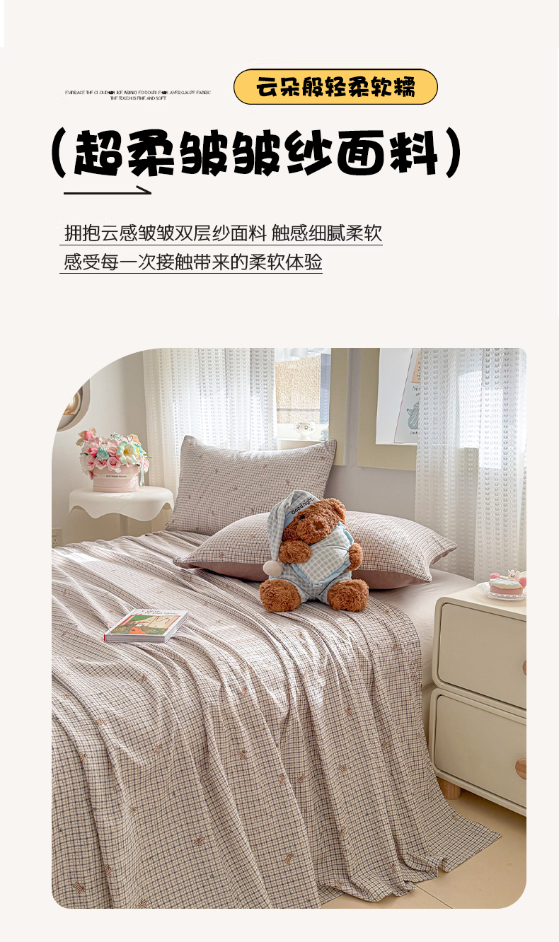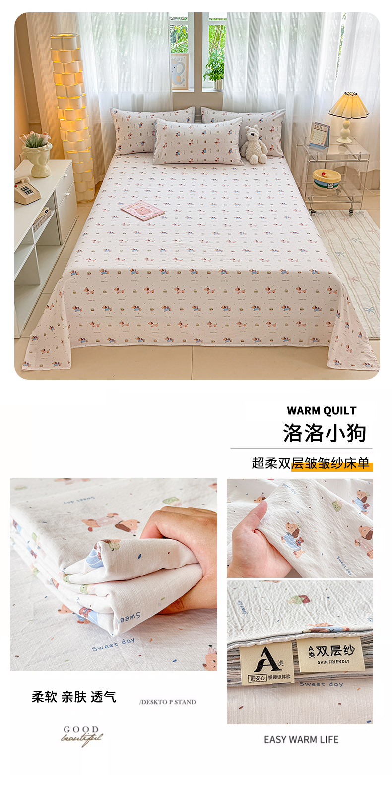 丽美人家纺 2026新款A类皱皱双层纱印花单床单床单单件 柔格小狗
