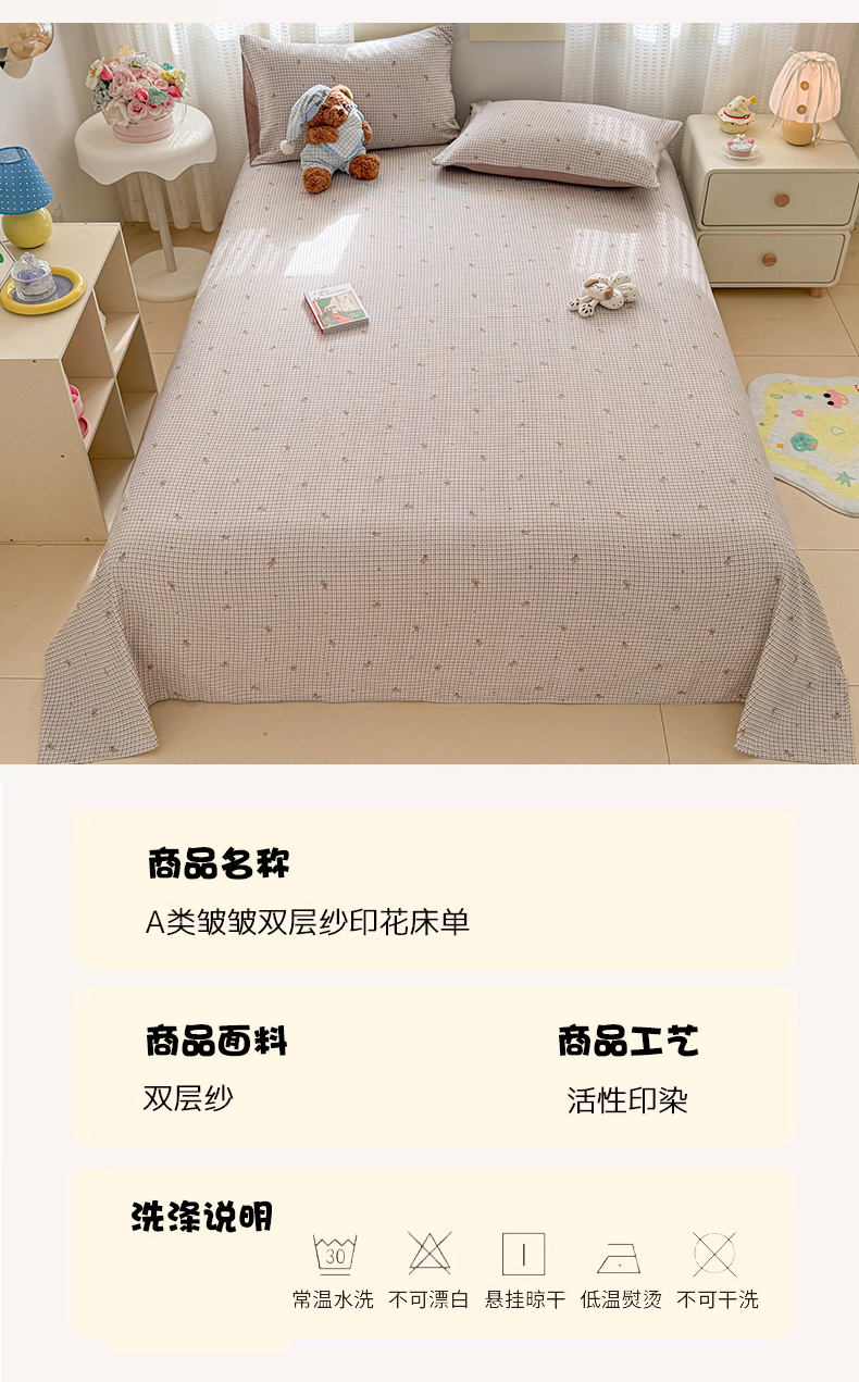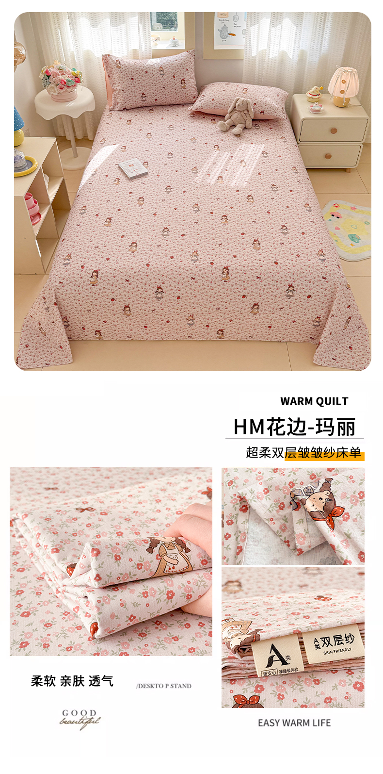 • 91家纺网 家纺一手货源 找家纺 丽美人家纺 2026新款A类皱皱双层纱印花单床单床单单件 柔格小狗