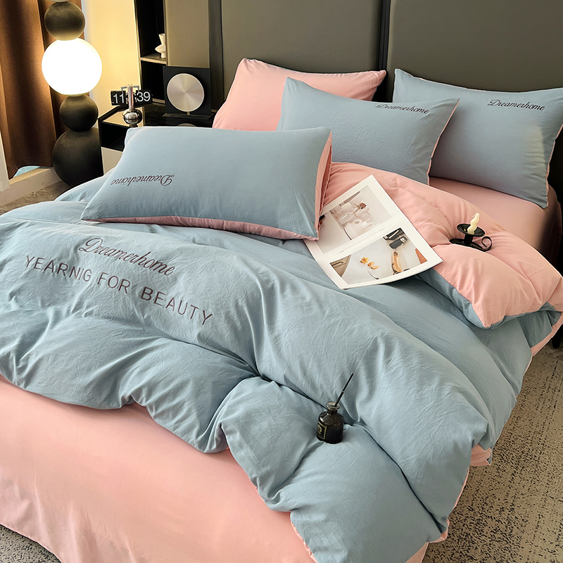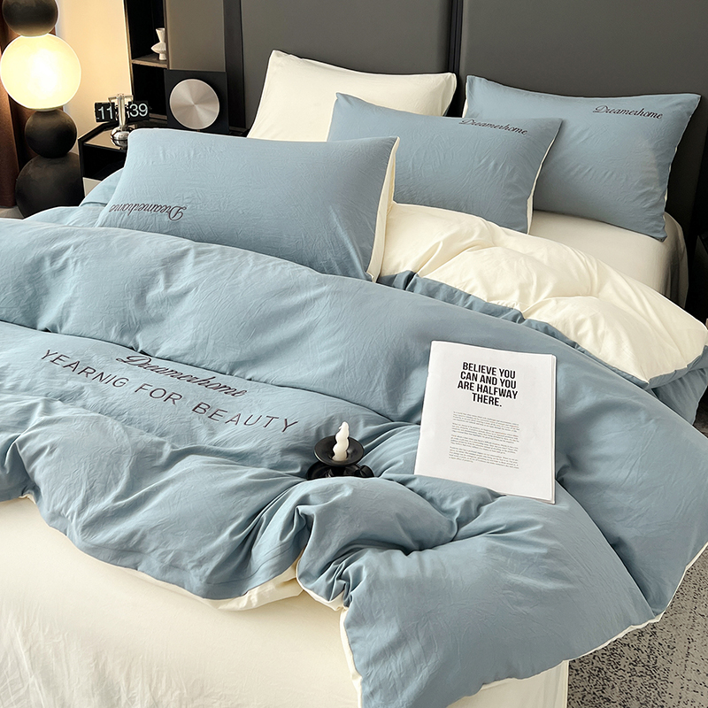 (总)鑫利来家纺 2026新款古法仿棉水洗棉刺绣四件套纯色双拼水洗云朵棉磨毛简约字母刺绣四件套,慕斯-宾利兰+山灰,慕斯-繁星蓝+天青,慕斯-海清+奶白,慕斯-海清+香叶粉,慕斯-豆沙+山灰,慕斯-粉+紫,慕斯-奶白+果绿,慕斯-奶白+中灰,慕斯-山灰+中灰