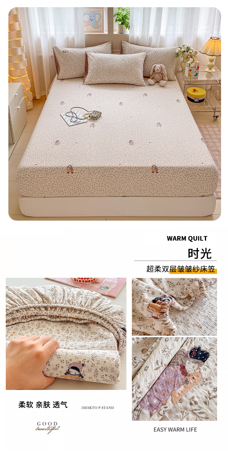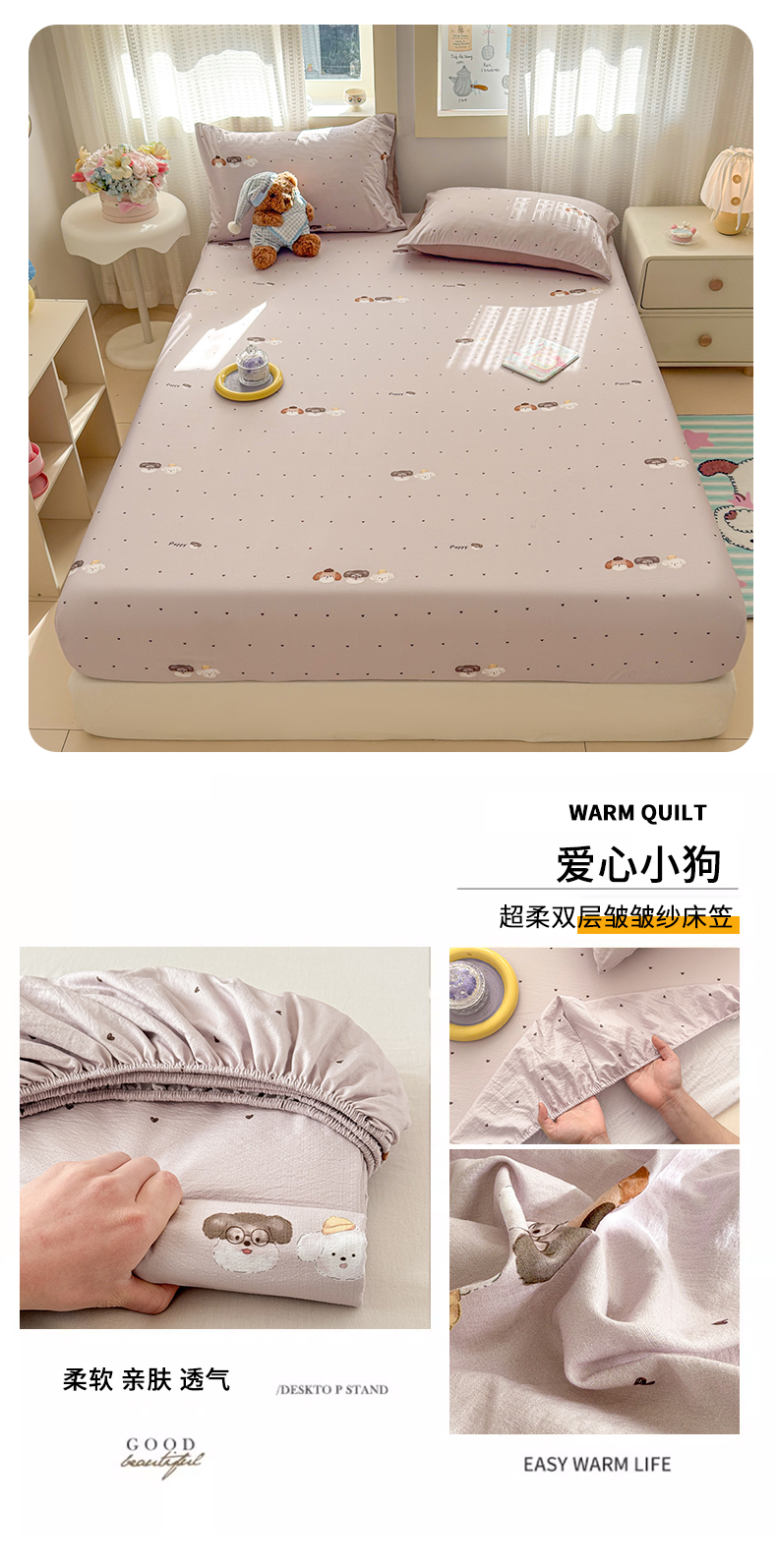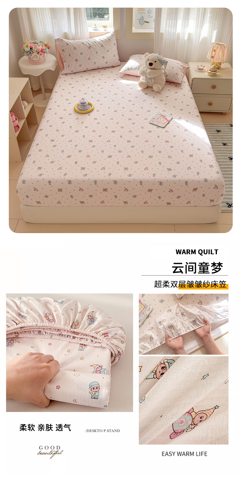 (总)丽美人家纺 2026新款双层皱皱纱大豆夹棉床笠单床笠床笠单件,JM花开漫漫,JM贝拉,JM布兰卡,JM粉格猫咪,JM格仔萌宠,JM可爱小狗,JM腊肠狗,JM乐园,JM玛丽,JM时光,JM月境骑踪,JM紫雾叶兔