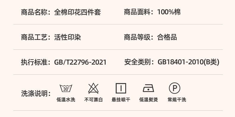 1.8m床笠四件套被套200x230 | ¥125.00 |