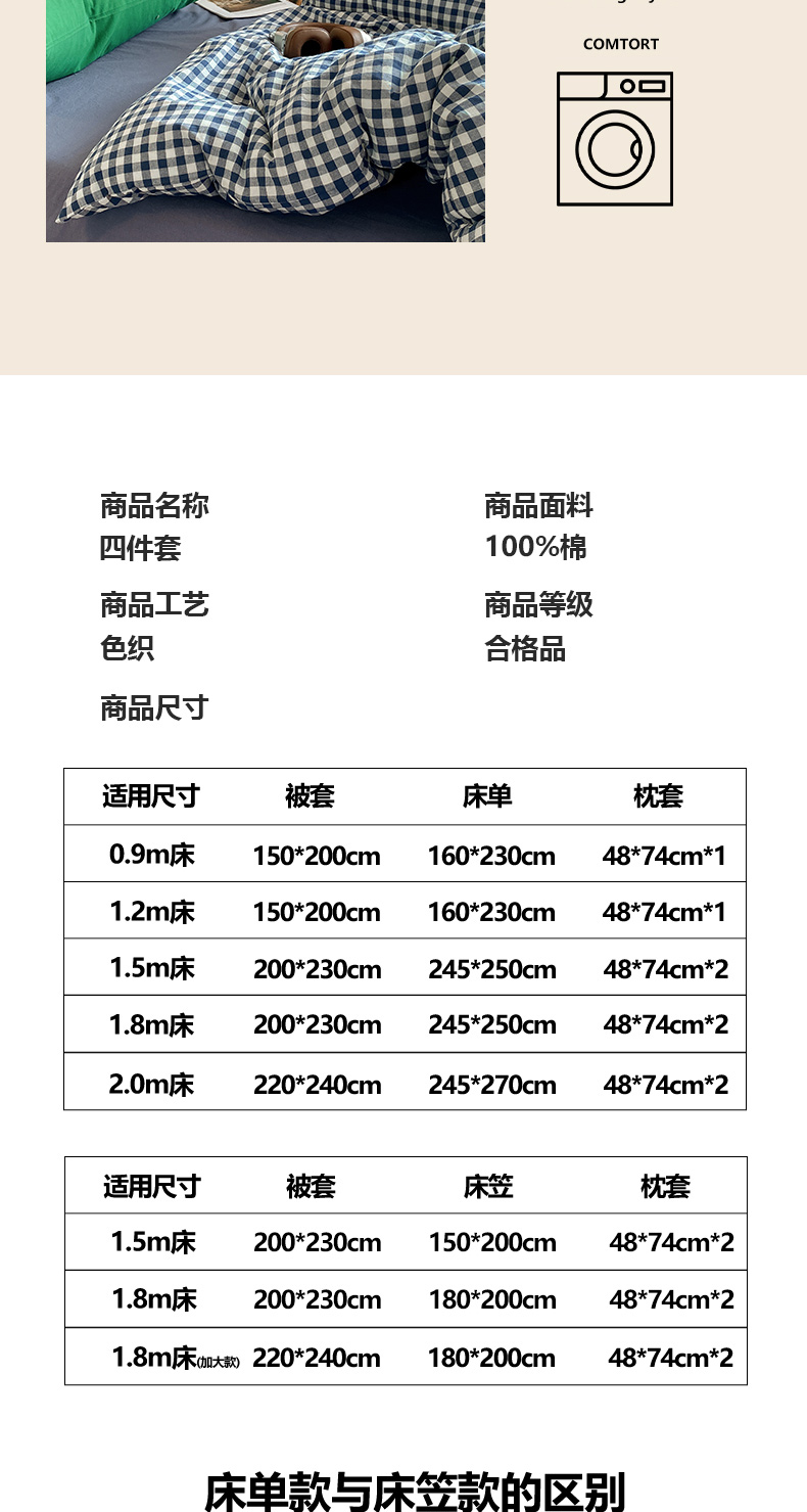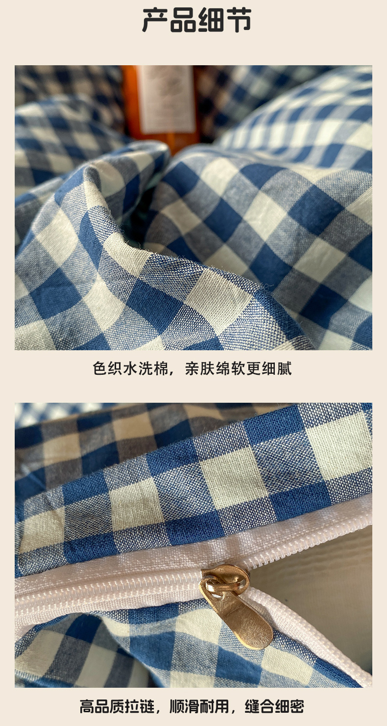(总)对白 2026新款ins风全棉色织水洗棉纯棉简约极简格子系列四件套-草莓奶昔【提供买家秀】,草莓奶昔(枕套格子+小花),草莓奶昔(枕套小花),草莓奶昔(枕套格子)