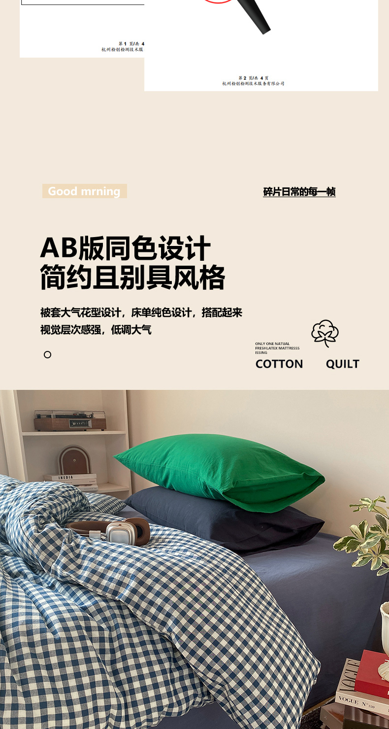 (总)对白 2026新款ins风全棉色织水洗棉纯棉简约极简格子系列单被套-草莓奶昔,草莓奶昔